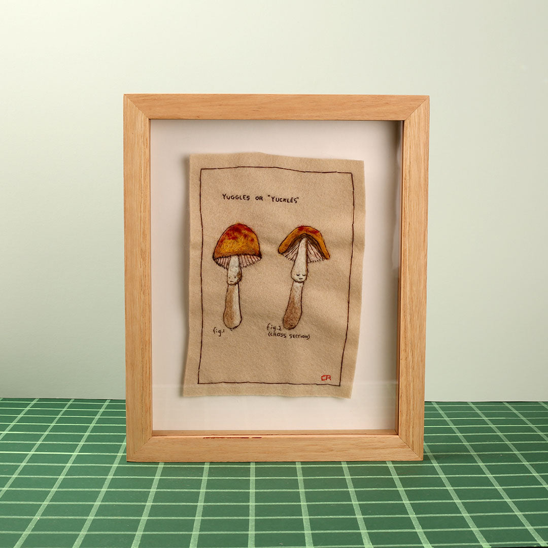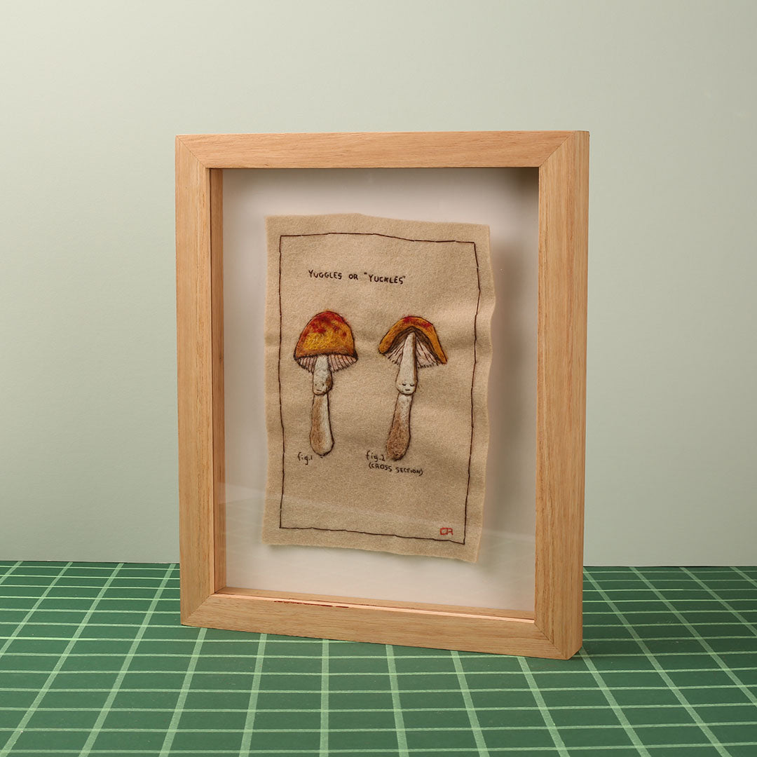 'A (Mostly) Fabricated Mycology' is a compendium of Cat's own fabricated mycology. Some pieces are based on her favourite fictional mushrooms from storybooks and TV, while others are entirely her own creation.