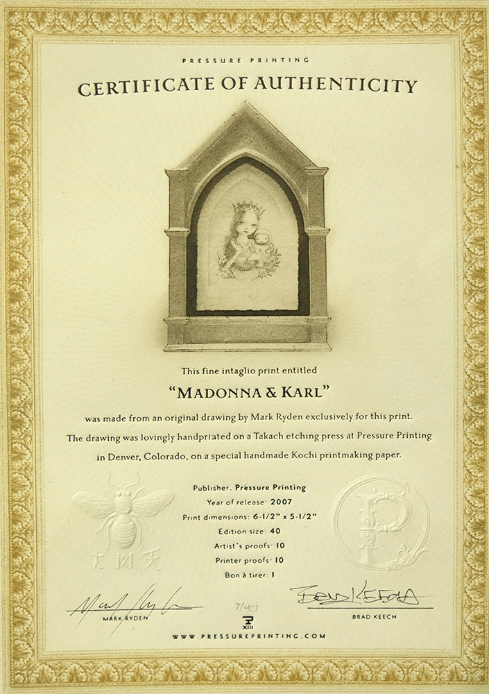 Print type: signed and numbered intaglio print - museum quality mounted in a hand made and gilded, wooden frame