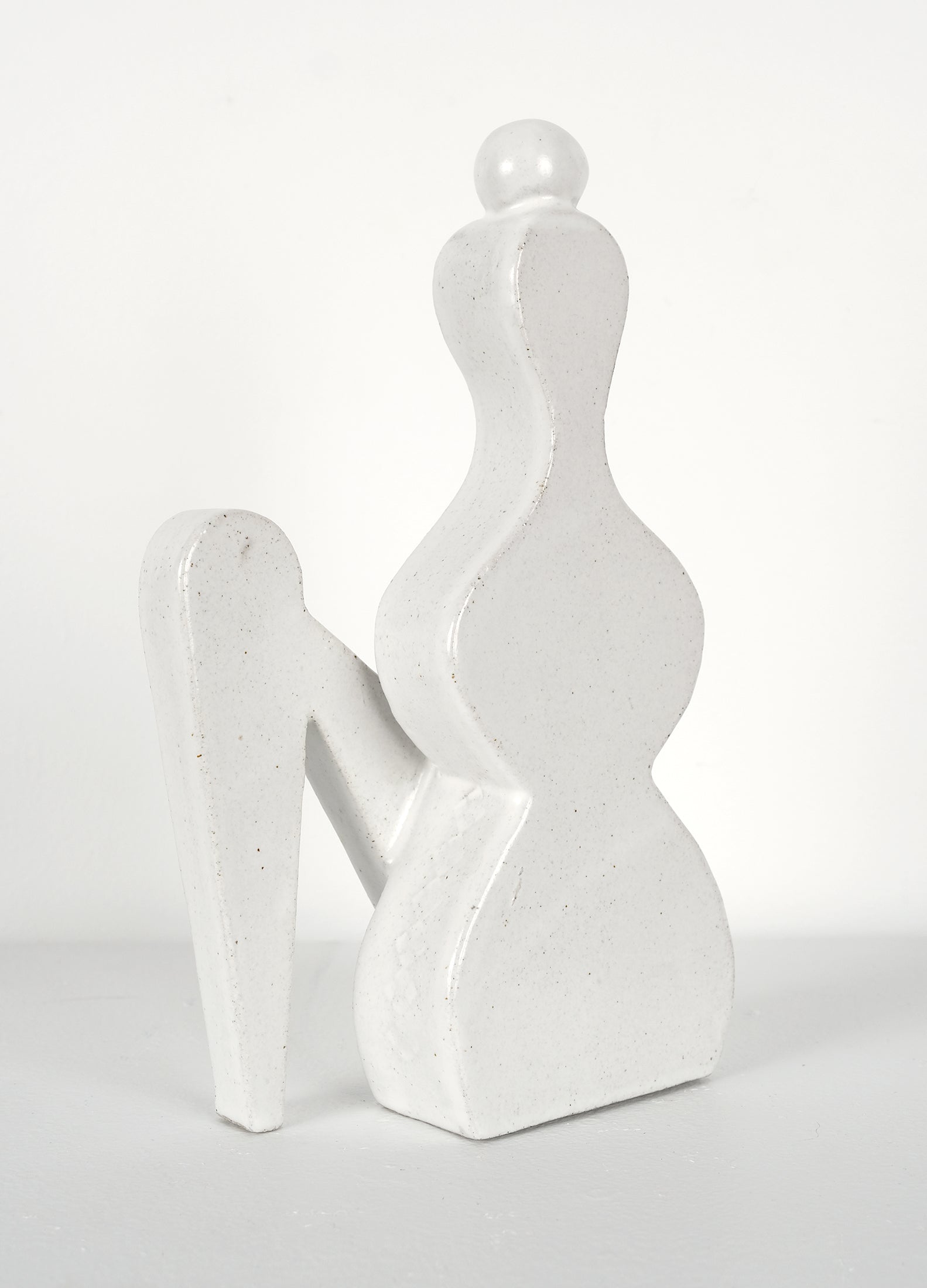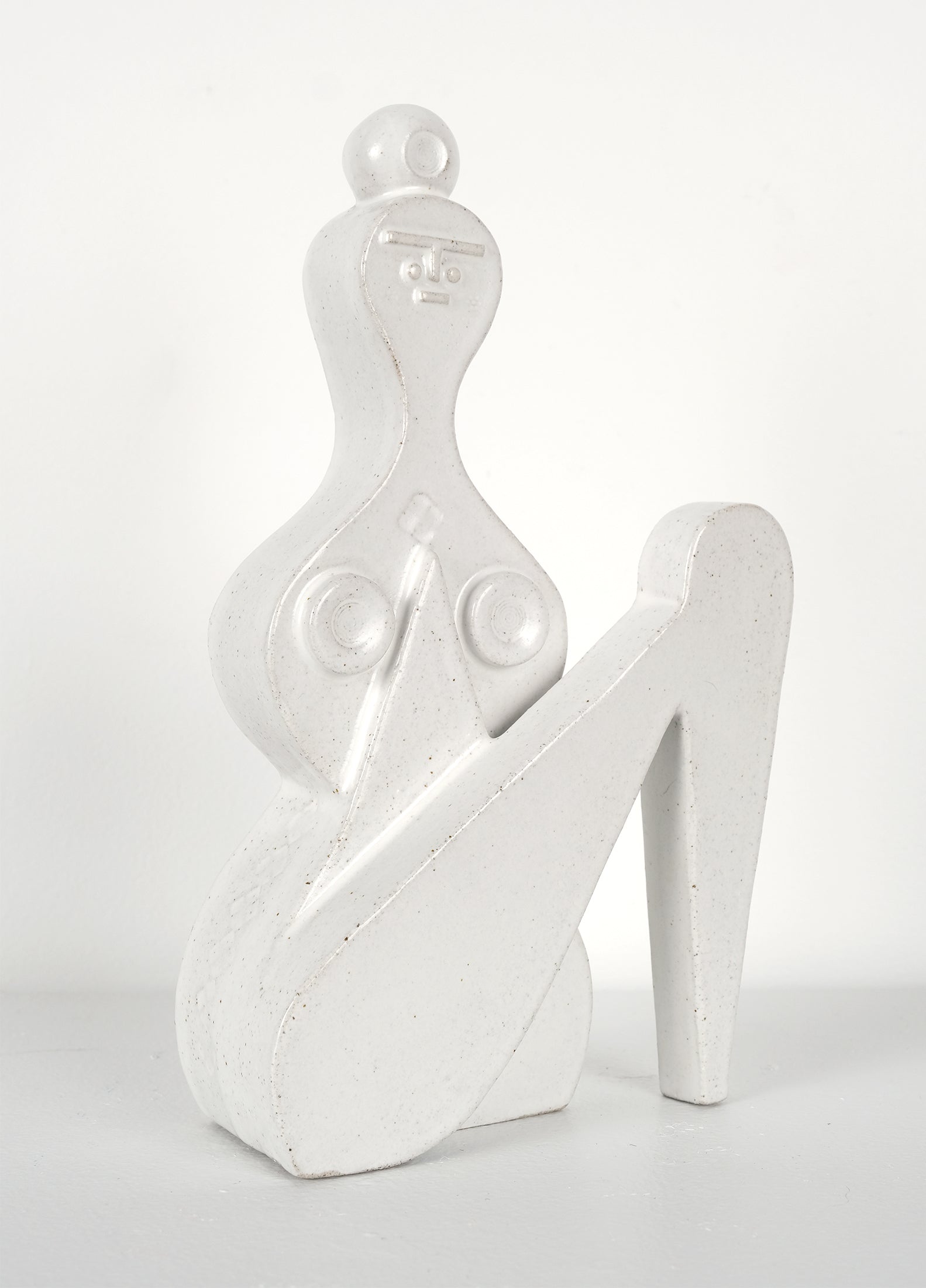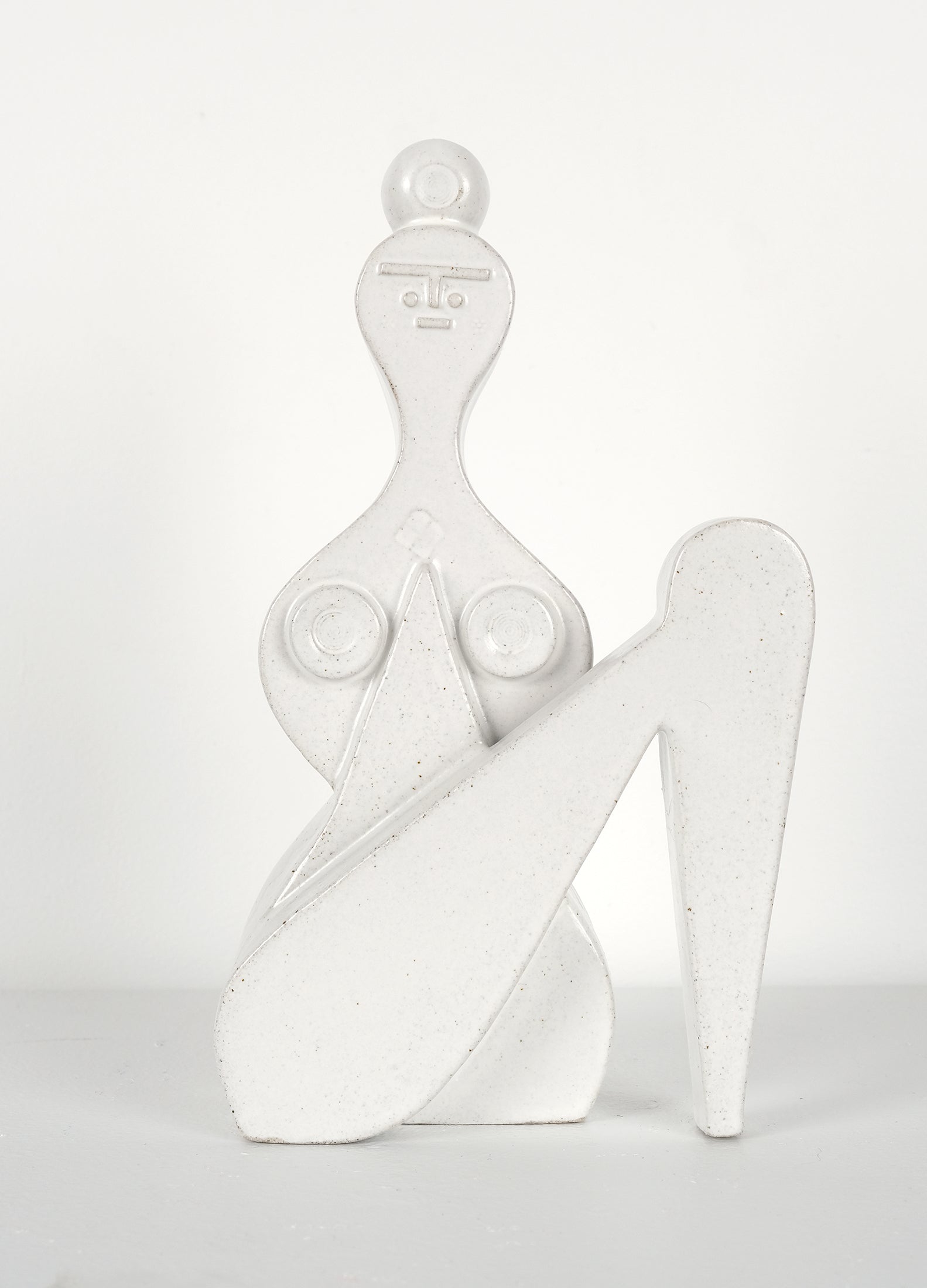 Medium: Mid-fire speckled ceramic with satin pearl white glaze, signed on base
