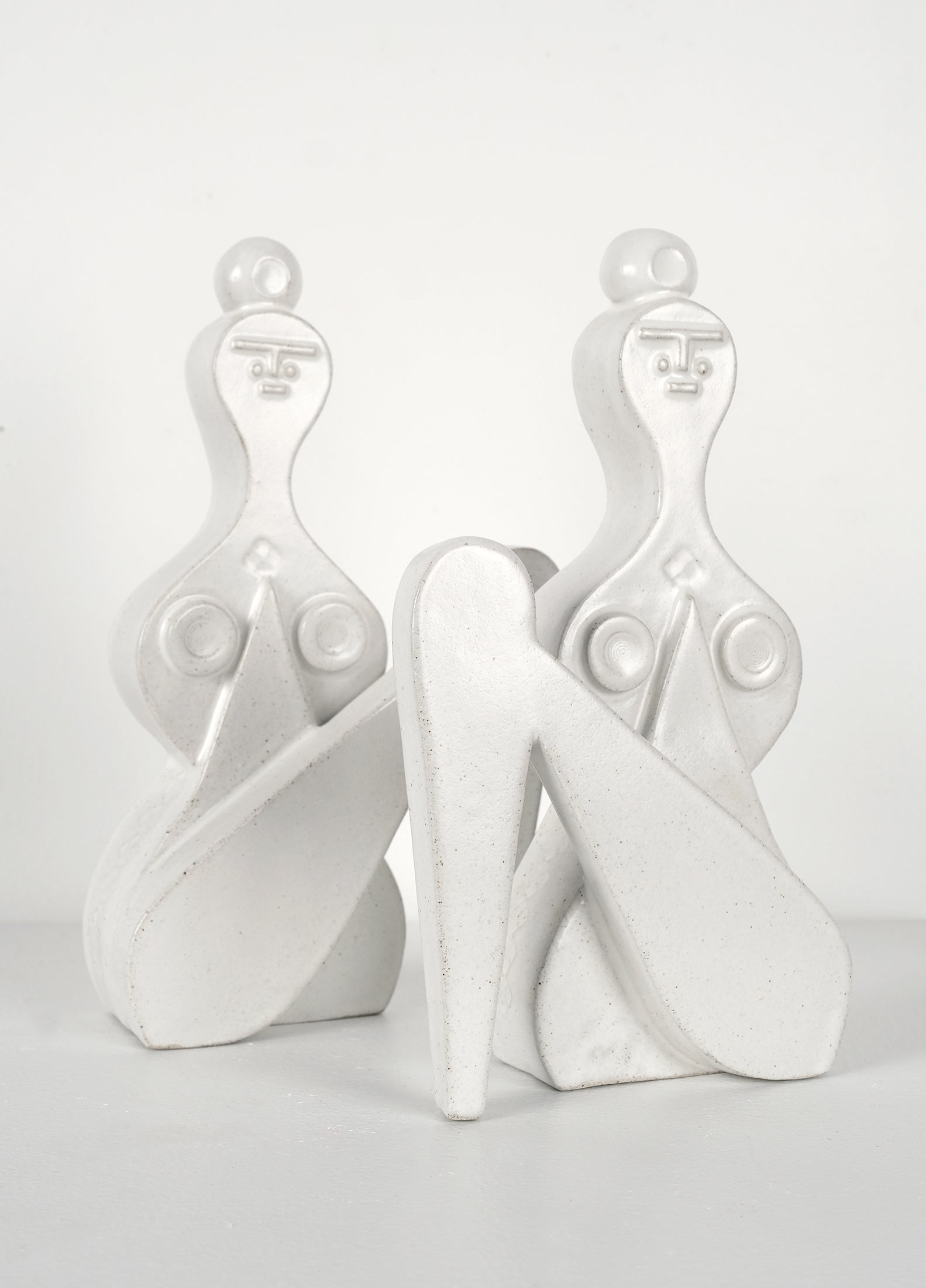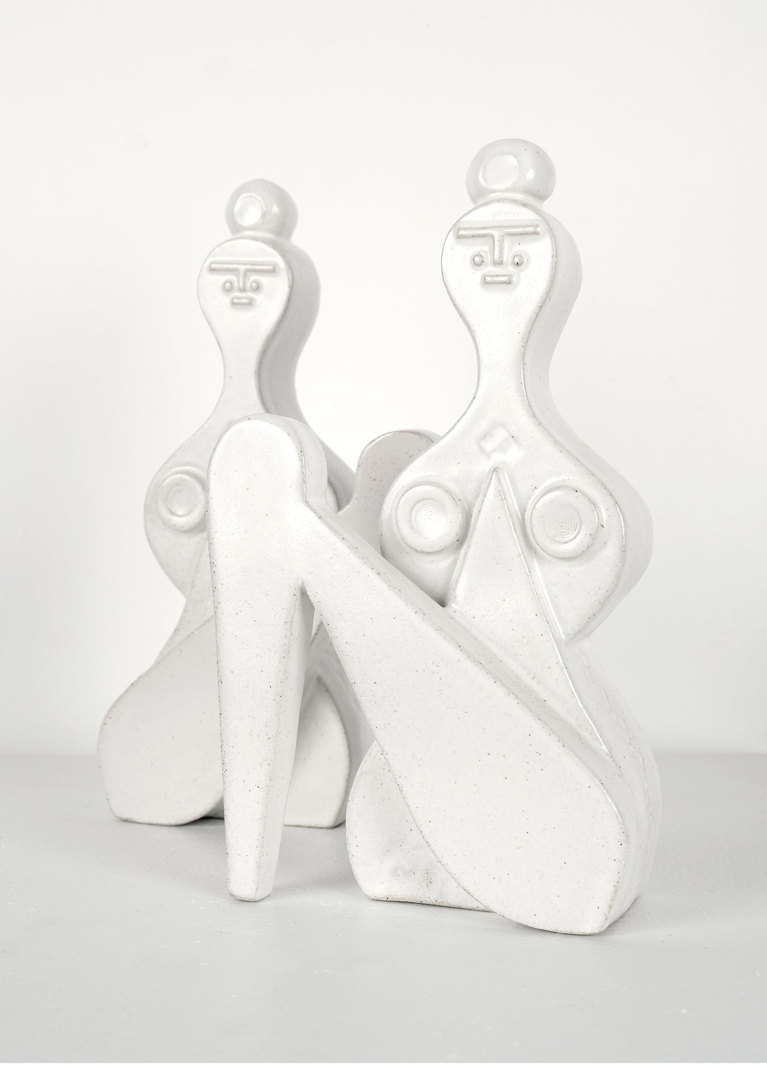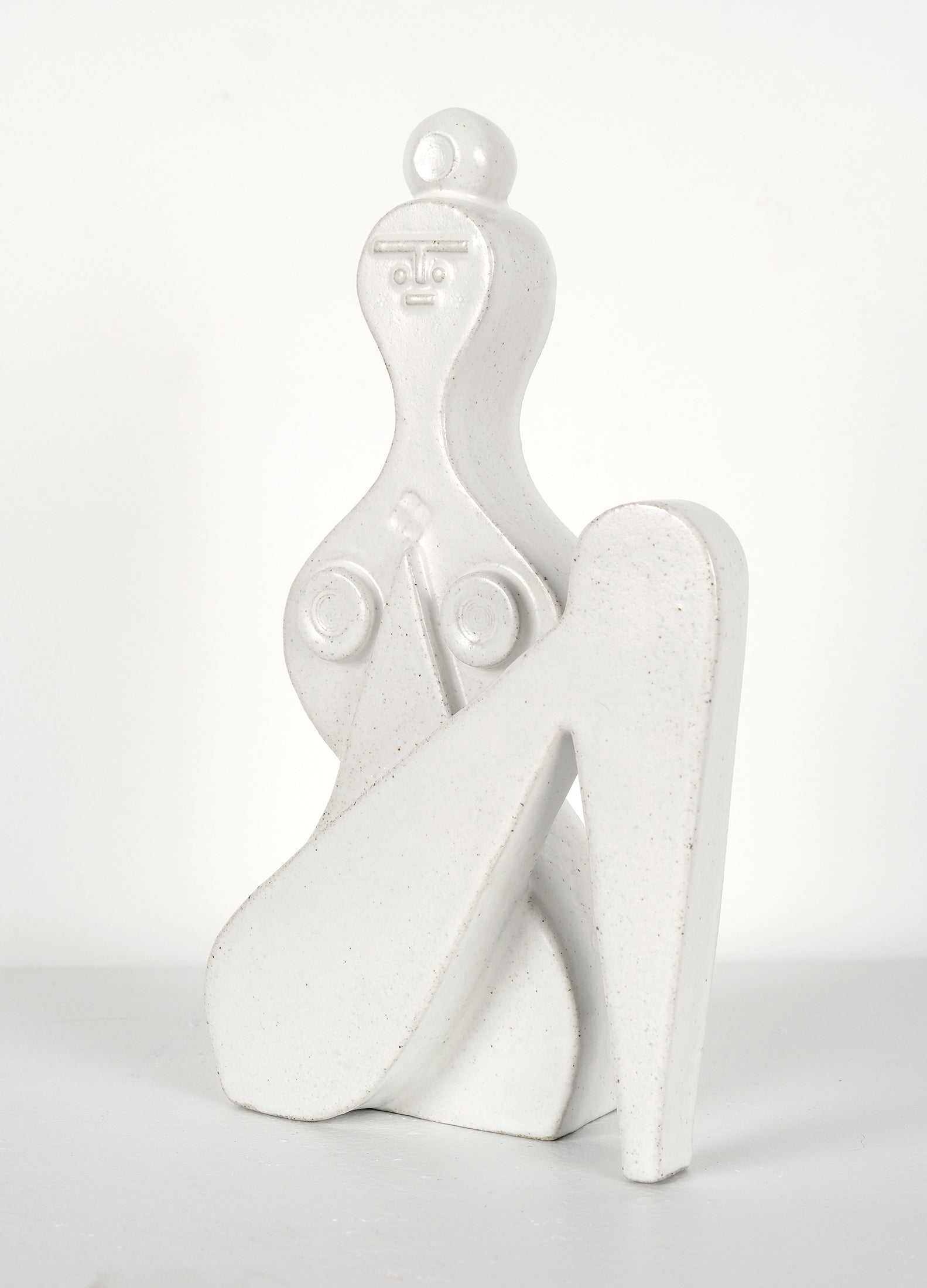 Medium: Mid-fire speckled ceramic with satin pearl white glaze, signed on base