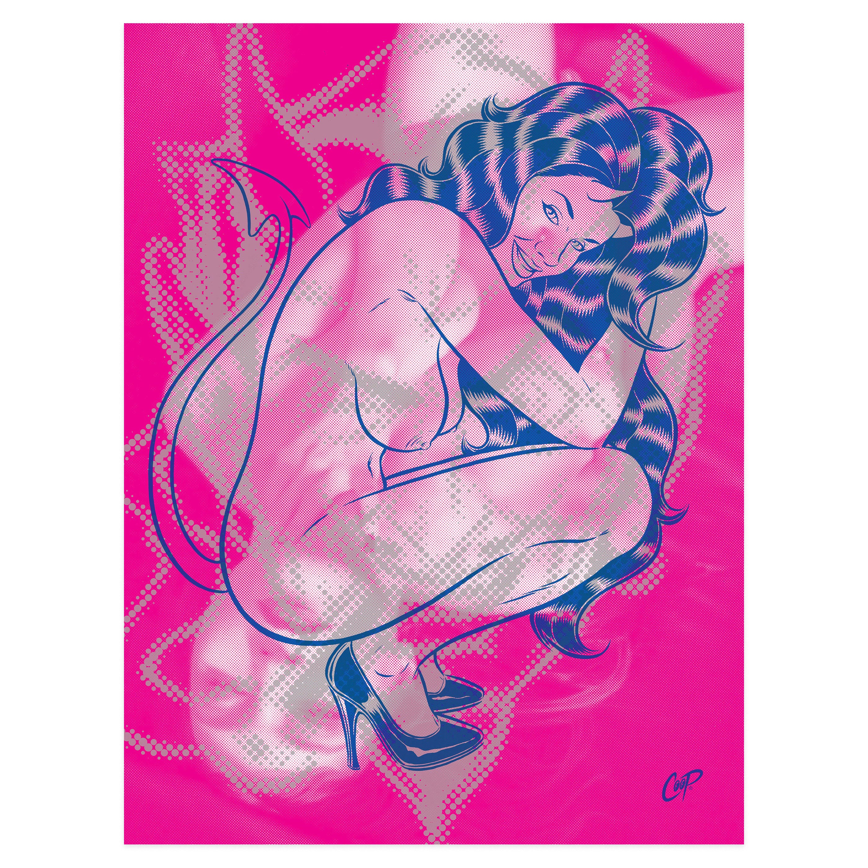 Print type: signed and numbered limited edition three-colour full bleed silkscreen print on heavy white paper stock