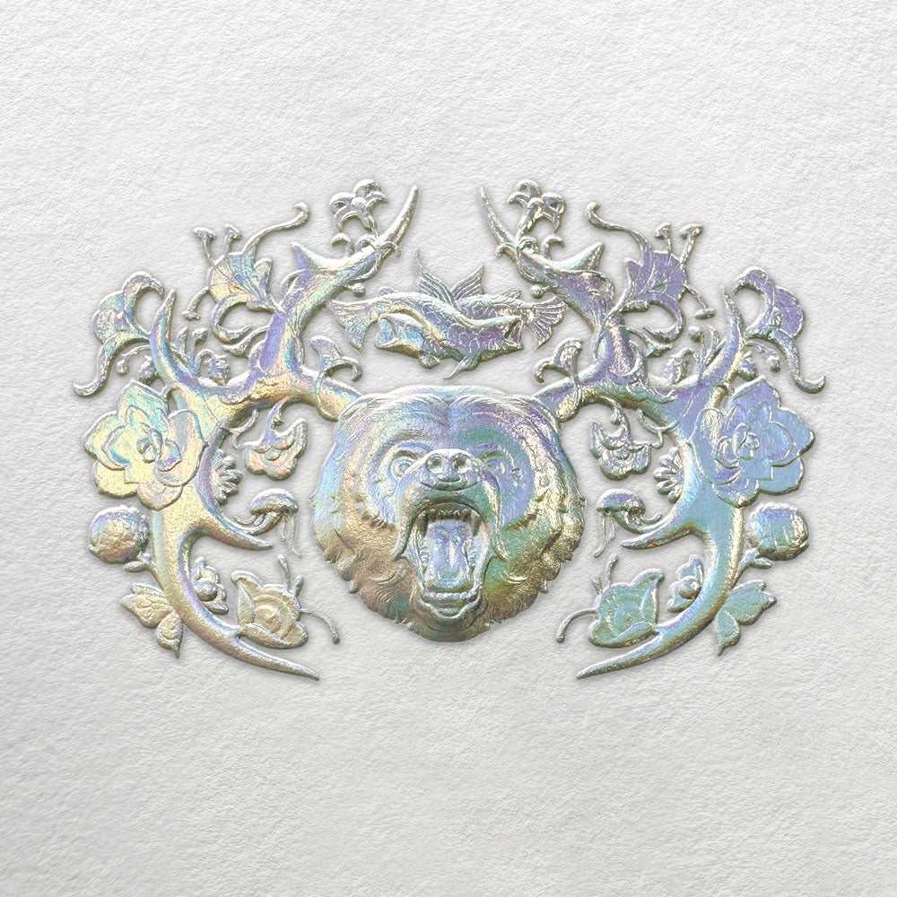 'The celestial bear returns to the earth to feast upon the abundance below. As the bear indulges, the sky is stained red, and the rabbit sages rush to reason with the bear and urge restraint. “The hunters will soon return,” they plead. “You must ascend to the sky and conceal yourself below the horizon. Their arrows and spears will otherwise find you.” Belly full, the bear turns its gaze skyward. As the last rays of sunlight disappear, the bear rests among the stars.'