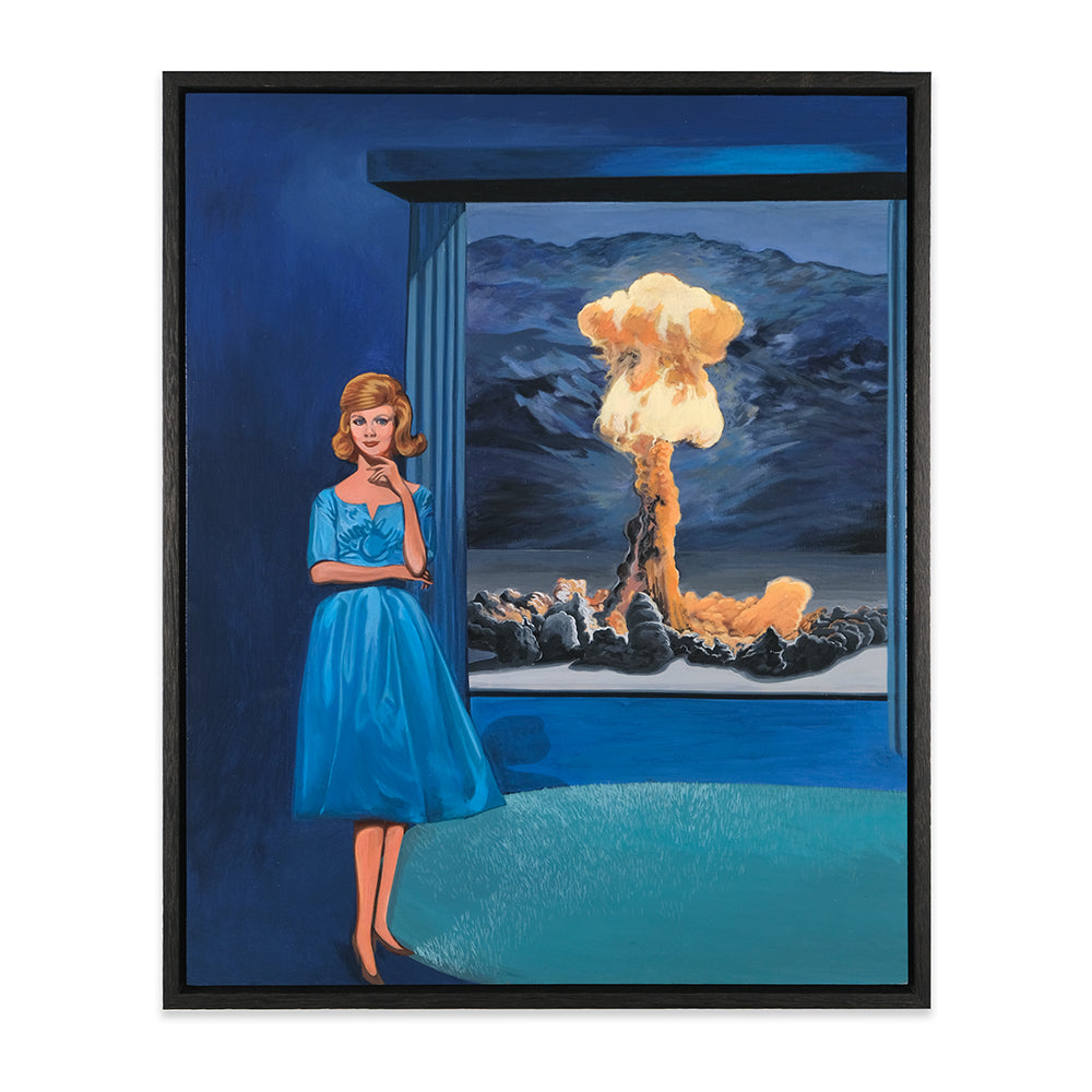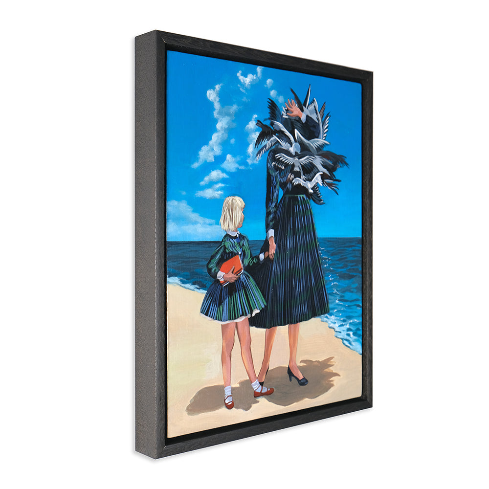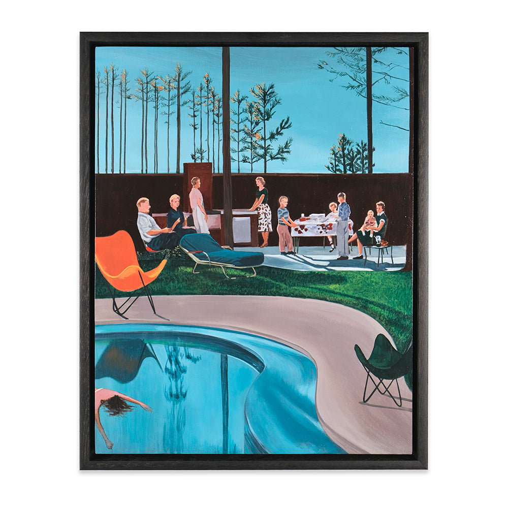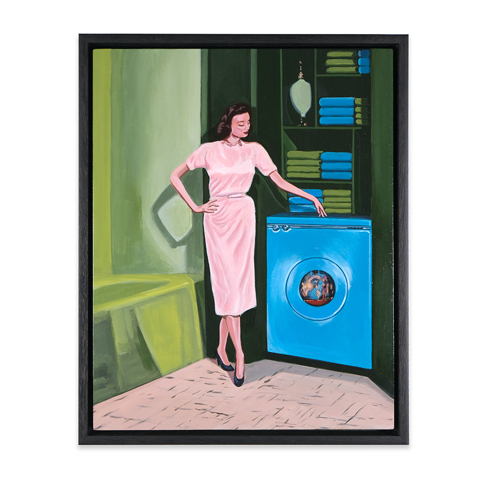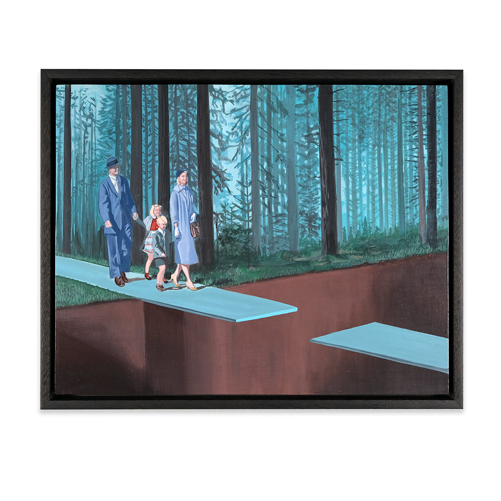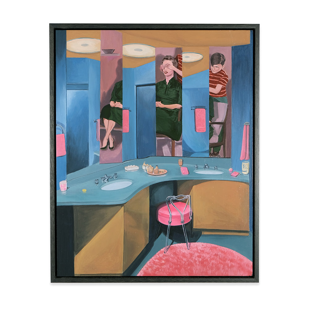 Anna Di Mezza is a painter who currently resides in the Blue Mountains, west of Sydney. Her works are surrealistic in nature, playing with perspective and combining subject matter with unexpected backgrounds resulting in bizarre visual narratives. Inspired by vintage photos, Anna likes to depict what appear to be stills from a surrealist film – challenging viewers to make up their own interpretation of the plot. Her paintings seem to straddle a fine line between humour and horror.