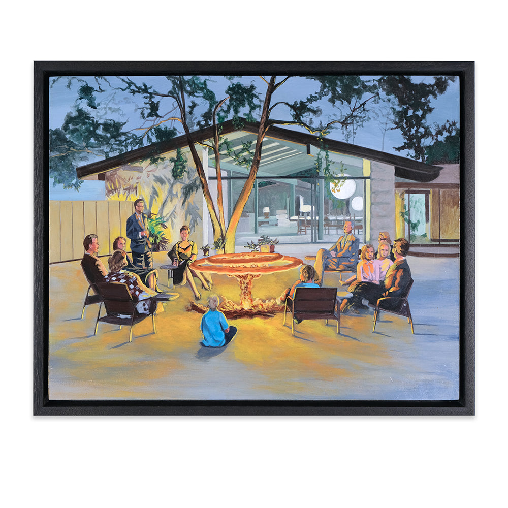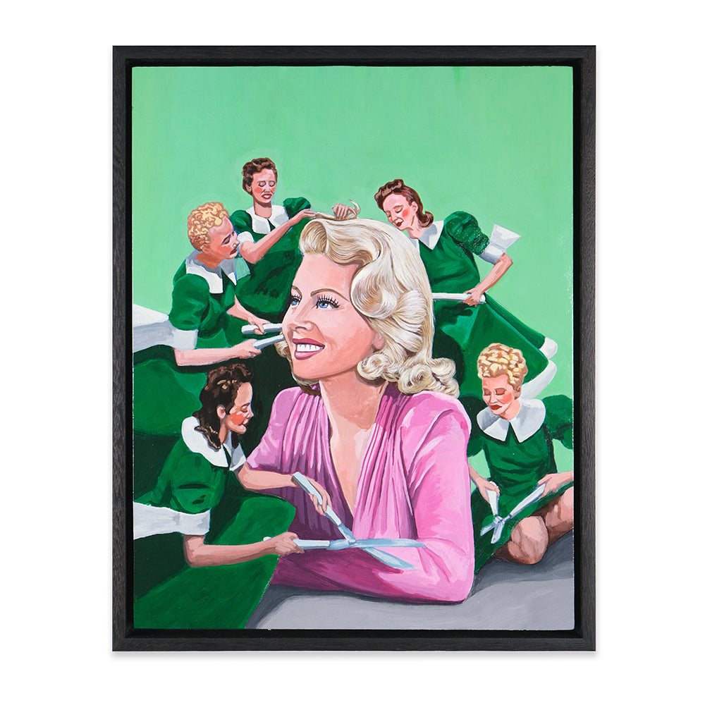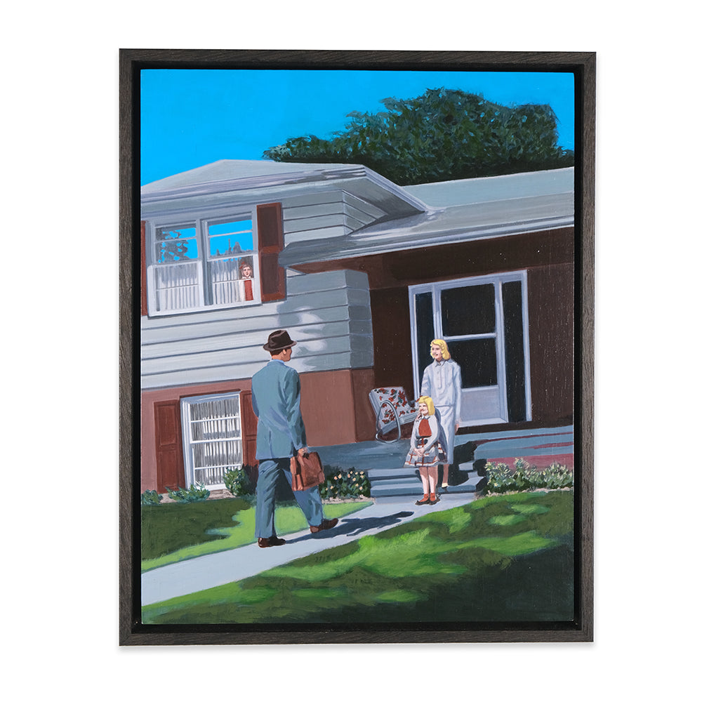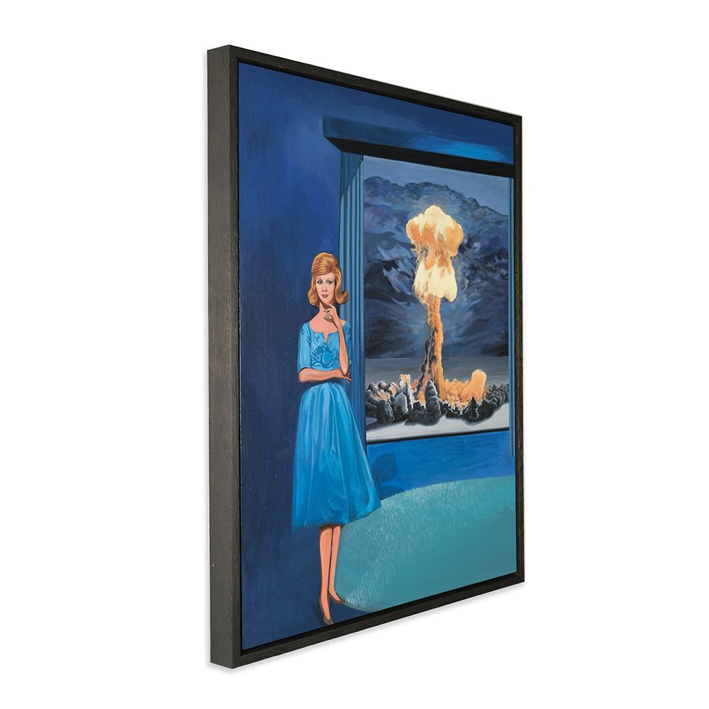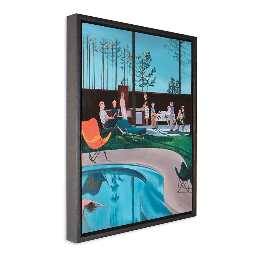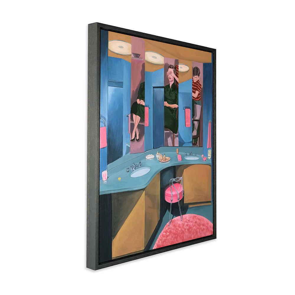 Anna Di Mezza is a painter who currently resides in the Blue Mountains, west of Sydney. Her works are surrealistic in nature, playing with perspective and combining subject matter with unexpected backgrounds resulting in bizarre visual narratives. Inspired by vintage photos, Anna likes to depict what appear to be stills from a surrealist film – challenging viewers to make up their own interpretation of the plot. Her paintings seem to straddle a fine line between humour and horror.