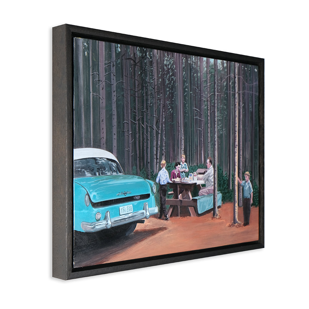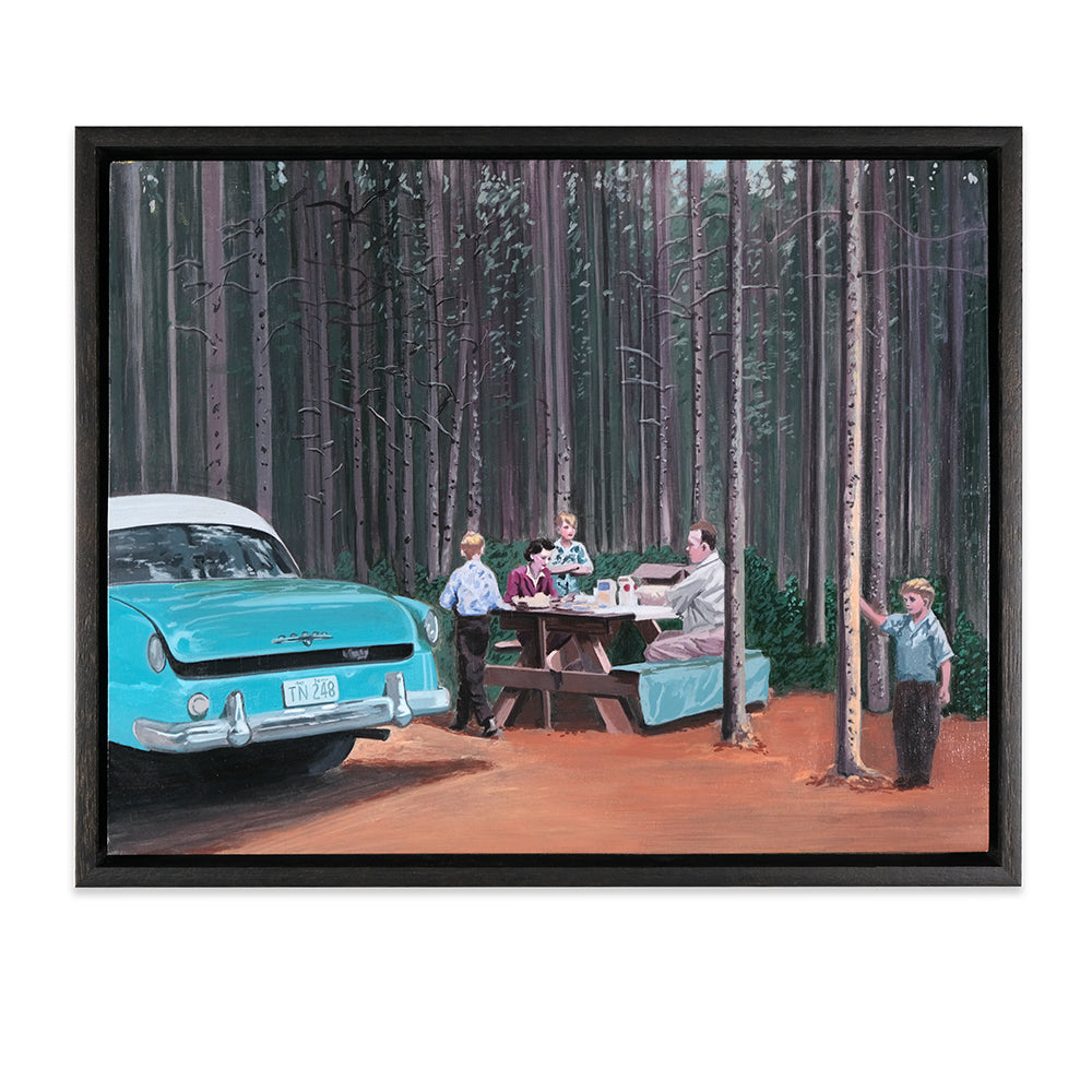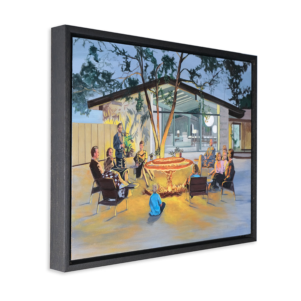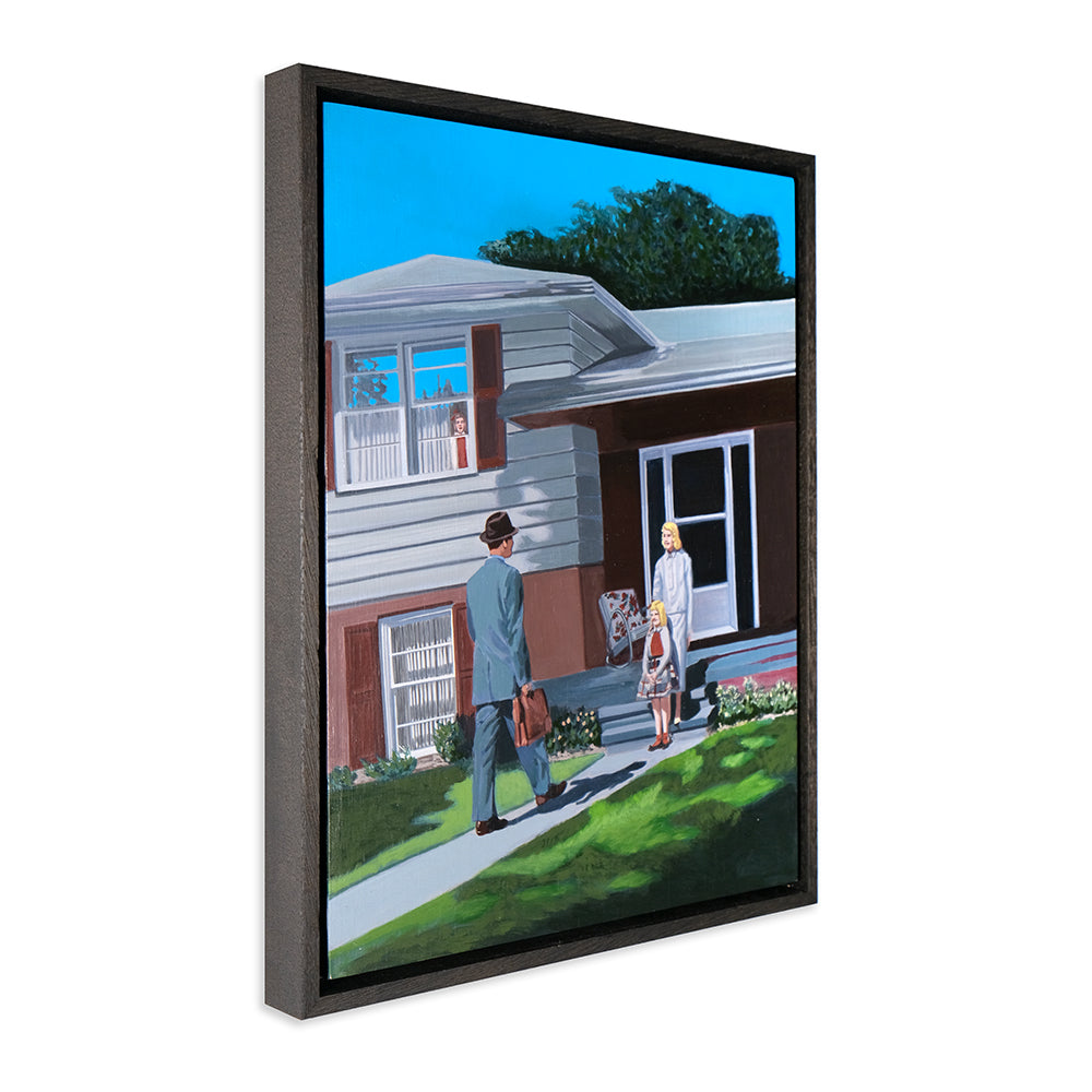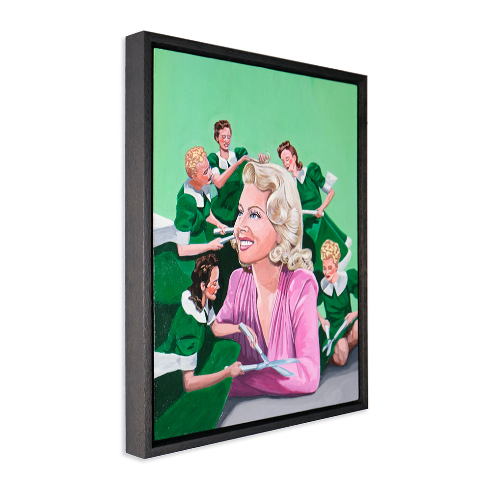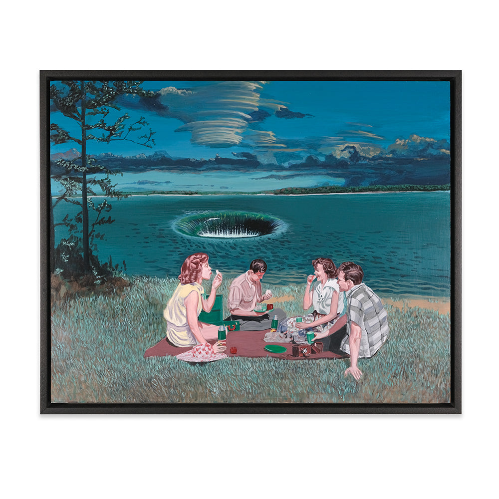 Anna Di Mezza is a painter who currently resides in the Blue Mountains, west of Sydney. Her works are surrealistic in nature, playing with perspective and combining subject matter with unexpected backgrounds resulting in bizarre visual narratives. Inspired by vintage photos, Anna likes to depict what appear to be stills from a surrealist film – challenging viewers to make up their own interpretation of the plot. Her paintings seem to straddle a fine line between humour and horror.