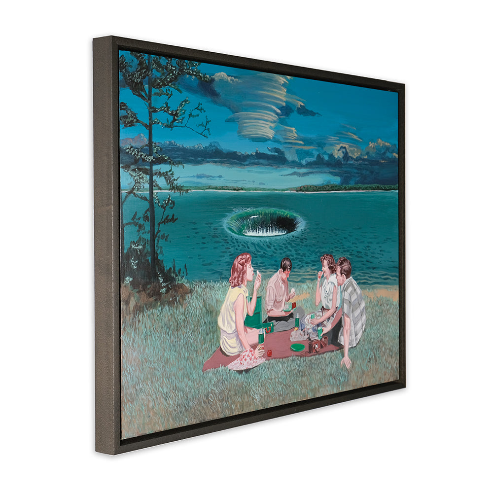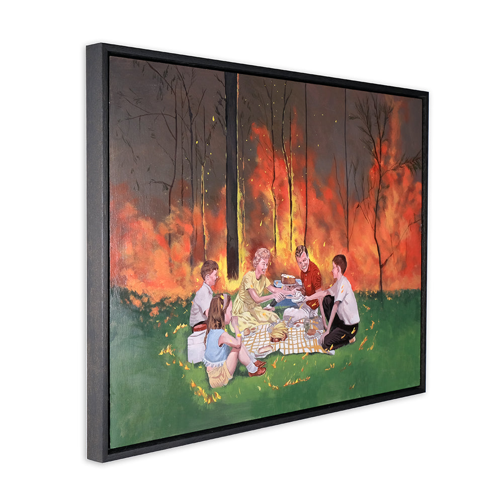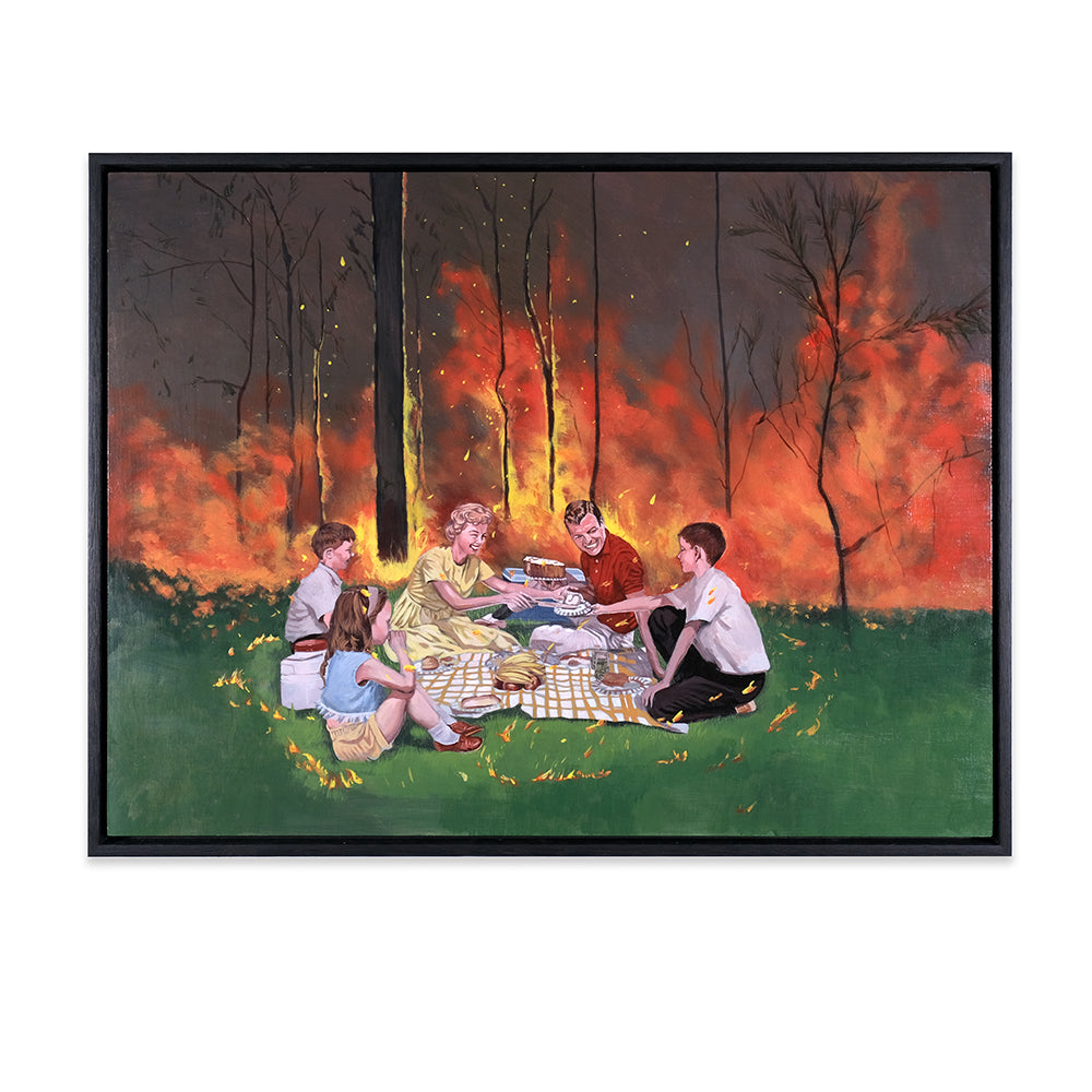 Heaven's Gate conjures up feelings of morbidity, the feeling that the images are a snapshot of a scene before a major disaster is about to happen. Anna touches upon the subject of climate change and the human impact on the environment. The subjects in some of the paintings are carrying on in their daily lives without even being aware of the potential disaster that is about to unfold.