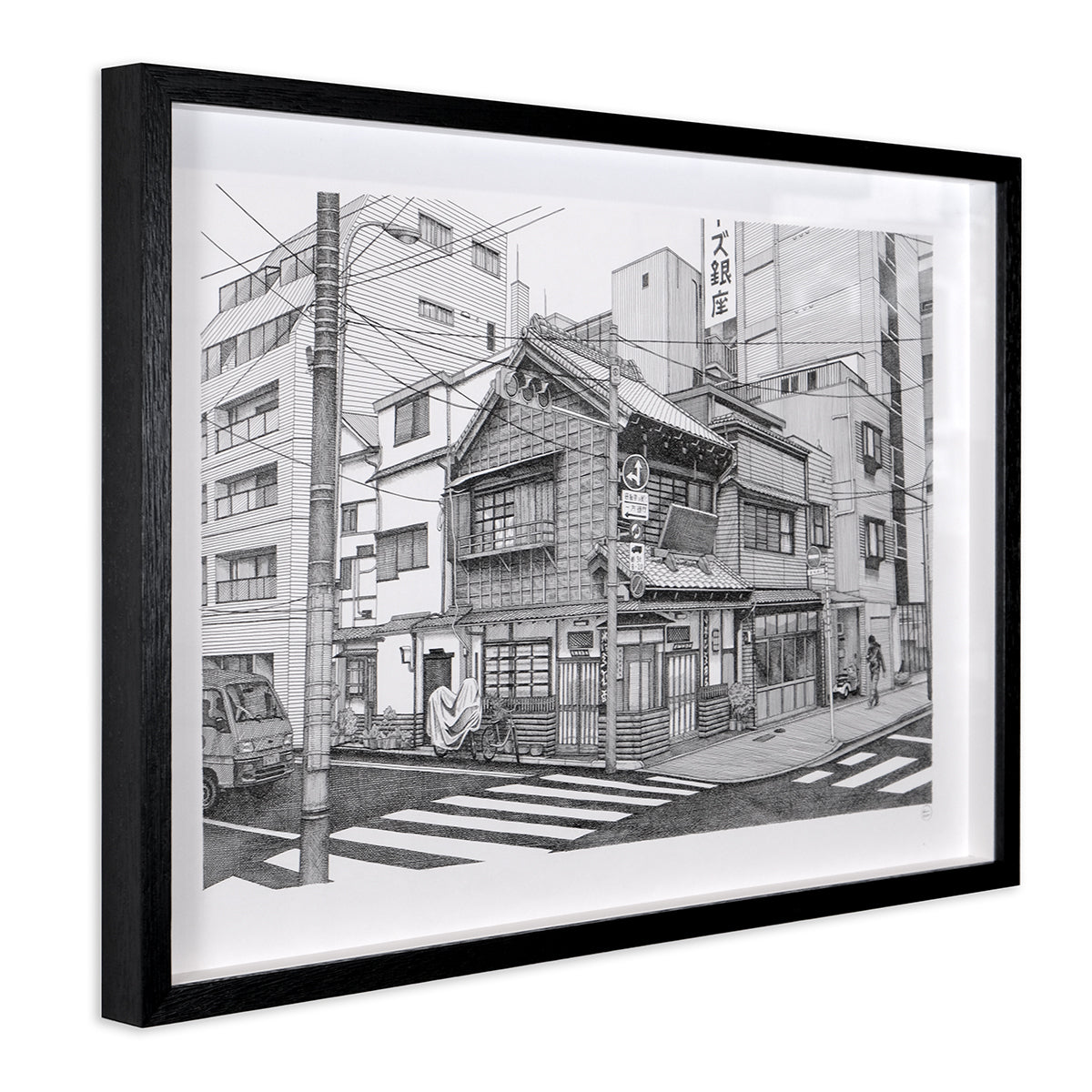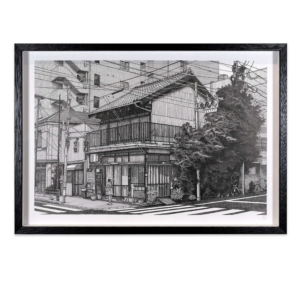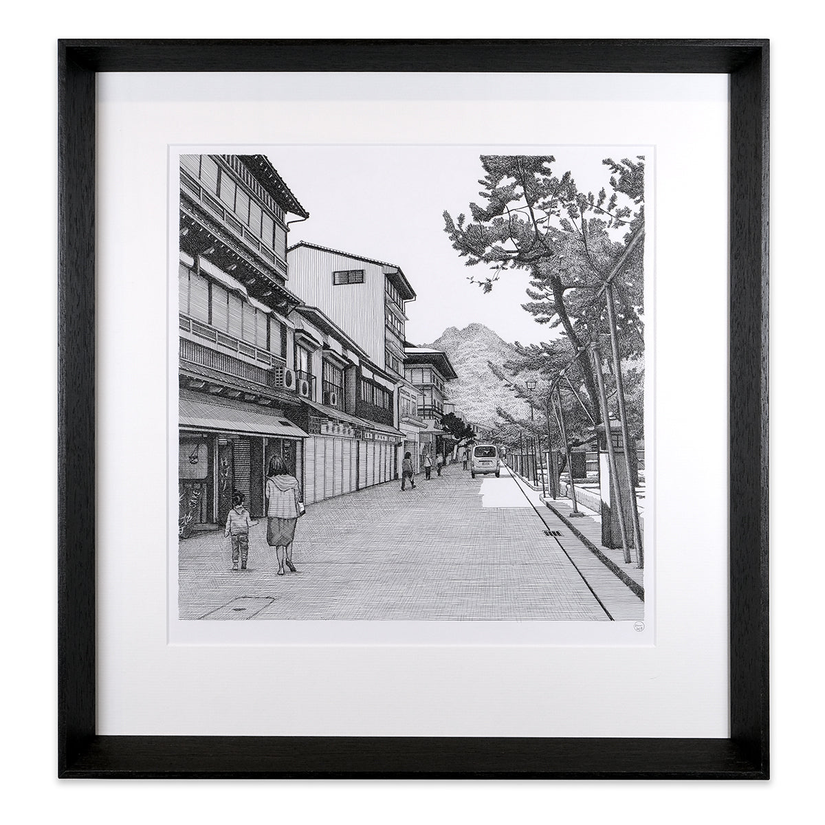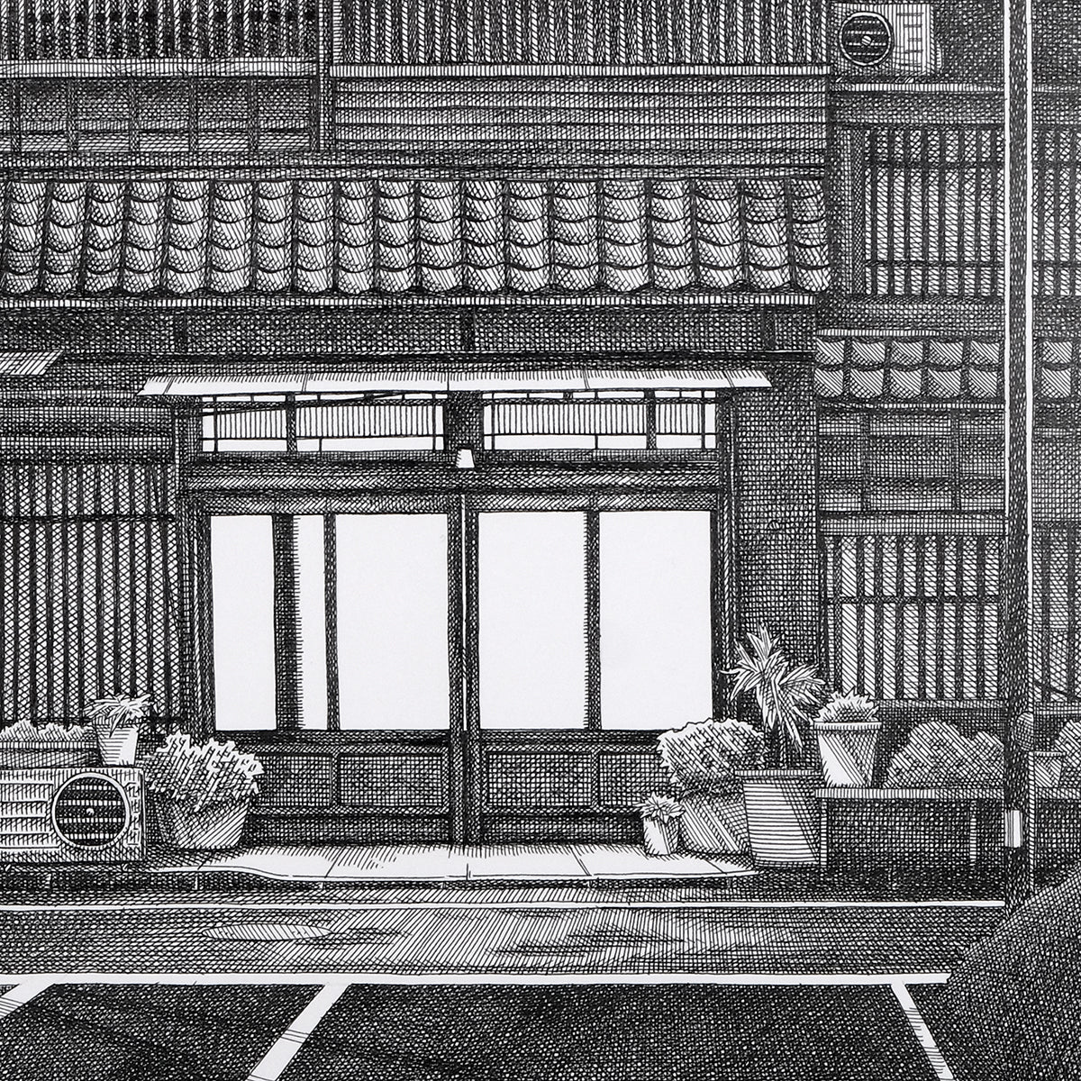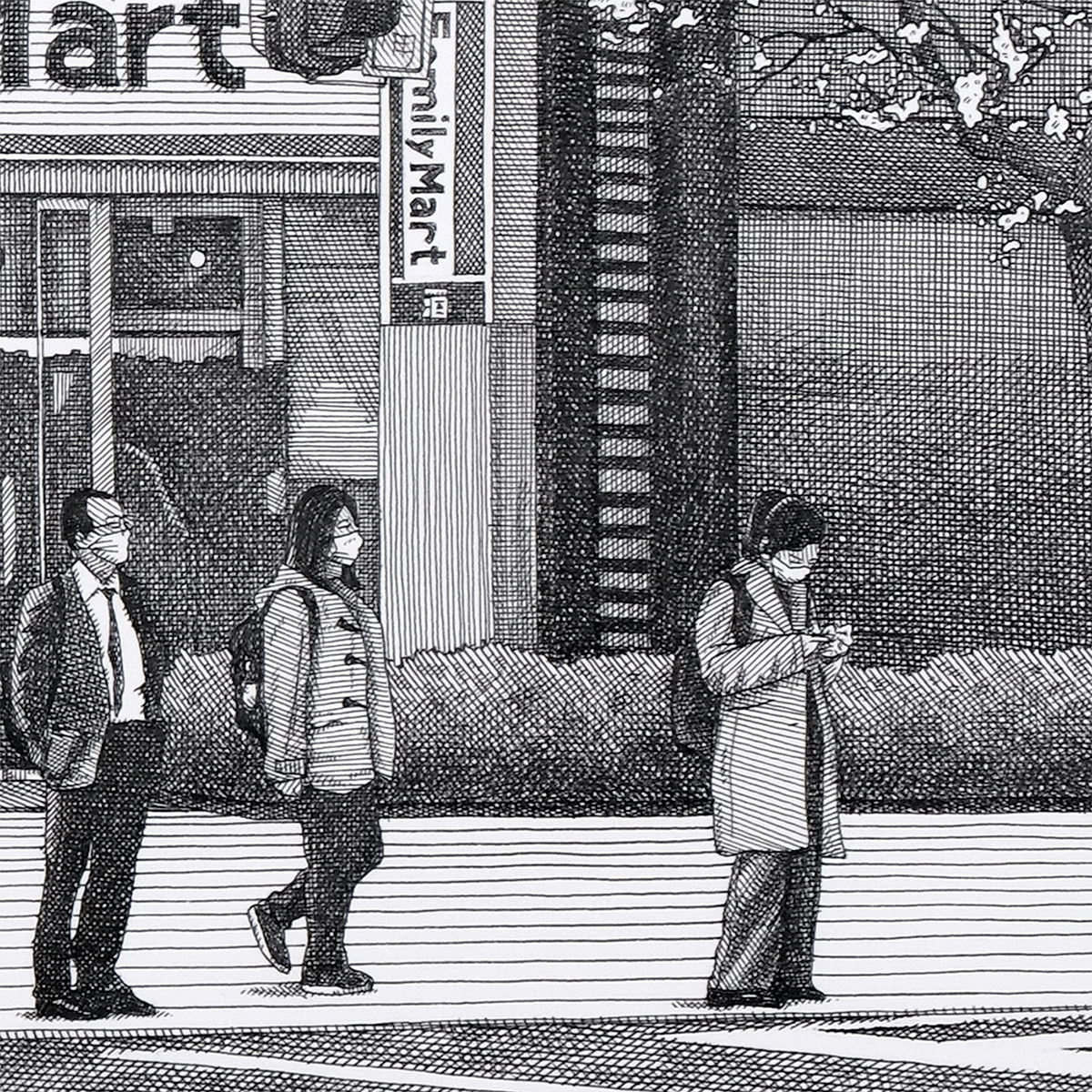 At the end of May, 2019, Bren travelled to Japan with his partner Kelly for a short holiday, blissfully unaware of the challenges the world would soon face with the onset of the COVID-19 virus. Shortly after they arrived back in Australia Bren began working on the series of drawings which referenced from photos they took during their time in Tokyo, Osaka, Kyoto, Miyajima and Hiroshima. The 20+ drawings exhibited explore and depict a series of memories from the trip with an eye on the concept of Ma – the significance of negative space or 'the space between' in traditional Japanese arts and culture. The philosophy has been described as a pause in time, an interval or emptiness in space. As Bren progressed working, this concept of The Space Between took on new meaning in terms of COVID-19 and the new era of social distancing and travel restrictions – and some of the later drawings focus on this.