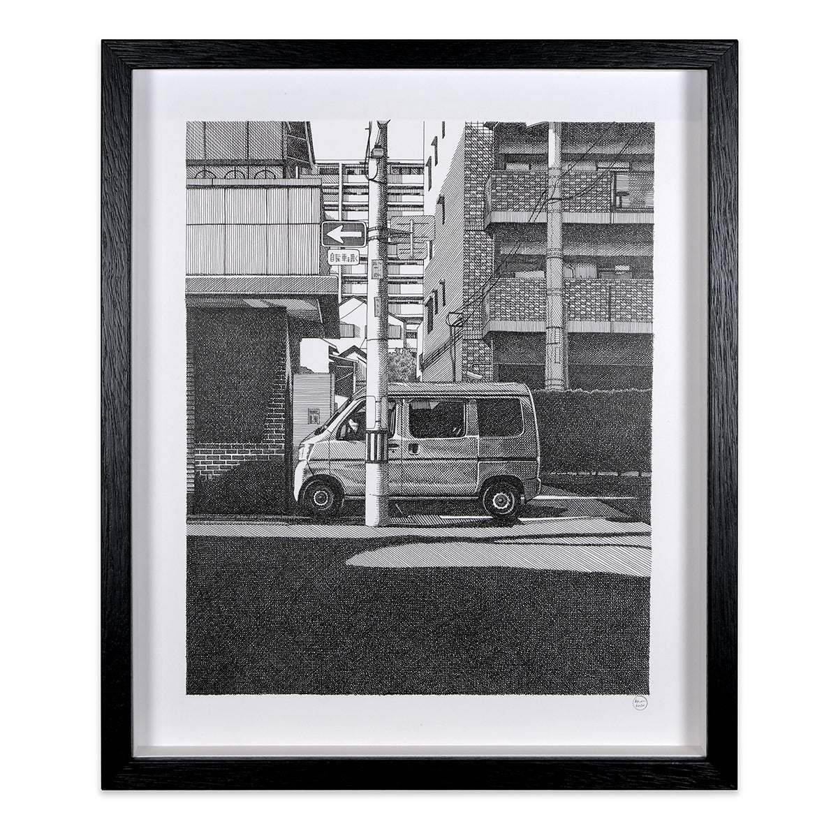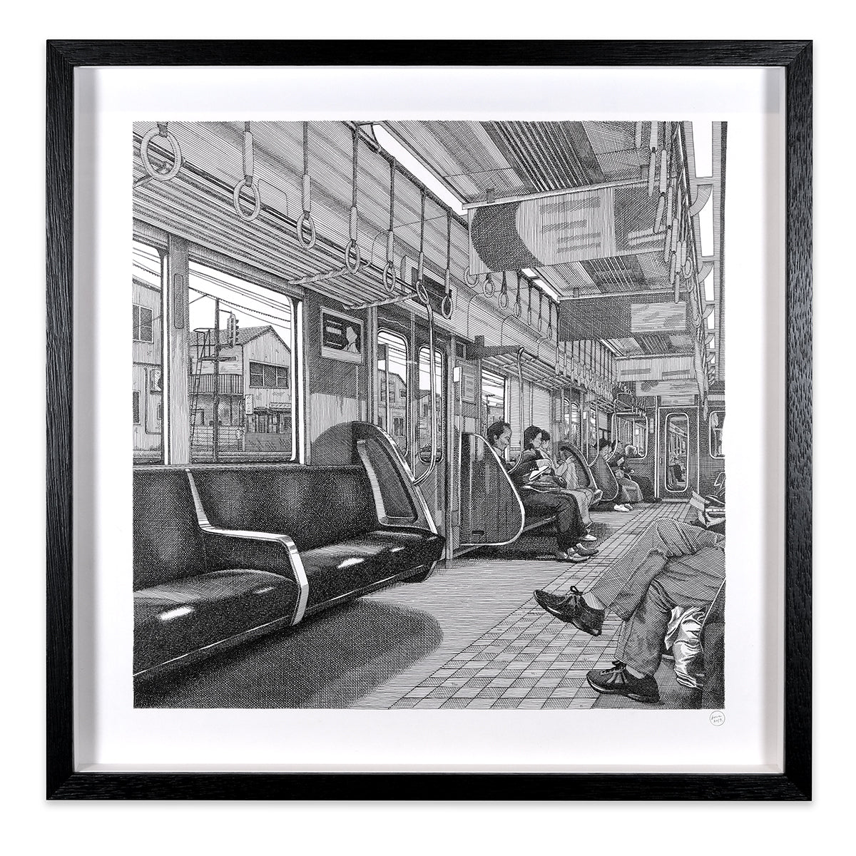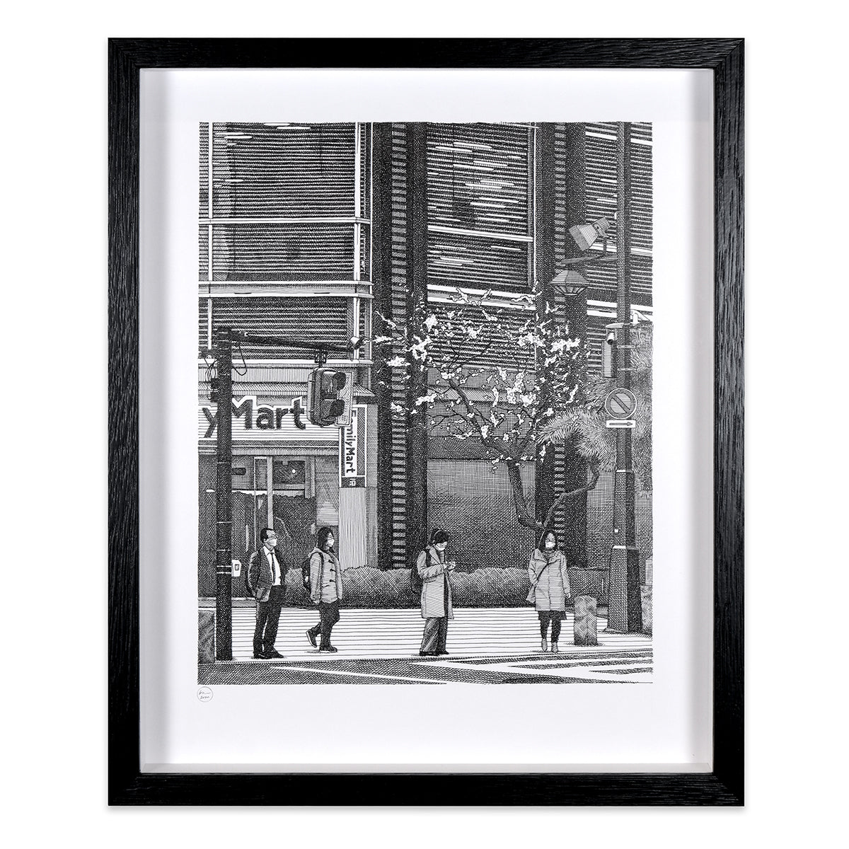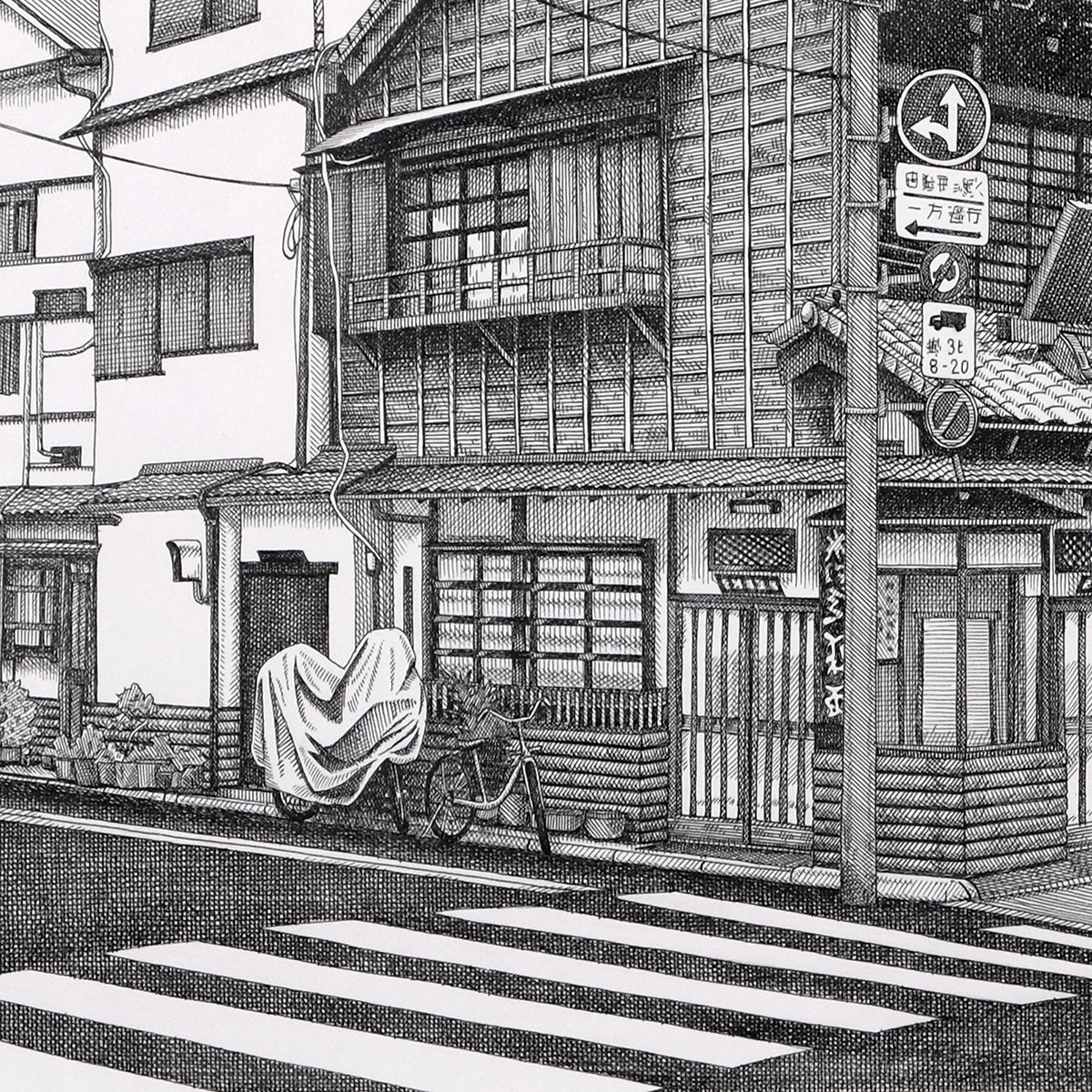 At the end of May, 2019, Bren travelled to Japan with his partner Kelly for a short holiday, blissfully unaware of the challenges the world would soon face with the onset of the COVID-19 virus. Shortly after they arrived back in Australia Bren began working on the series of drawings which referenced from photos they took during their time in Tokyo, Osaka, Kyoto, Miyajima and Hiroshima. The 20+ drawings exhibited explore and depict a series of memories from the trip with an eye on the concept of Ma – the significance of negative space or 'the space between' in traditional Japanese arts and culture. The philosophy has been described as a pause in time, an interval or emptiness in space. As Bren progressed working, this concept of The Space Between took on new meaning in terms of COVID-19 and the new era of social distancing and travel restrictions – and some of the later drawings focus on this.