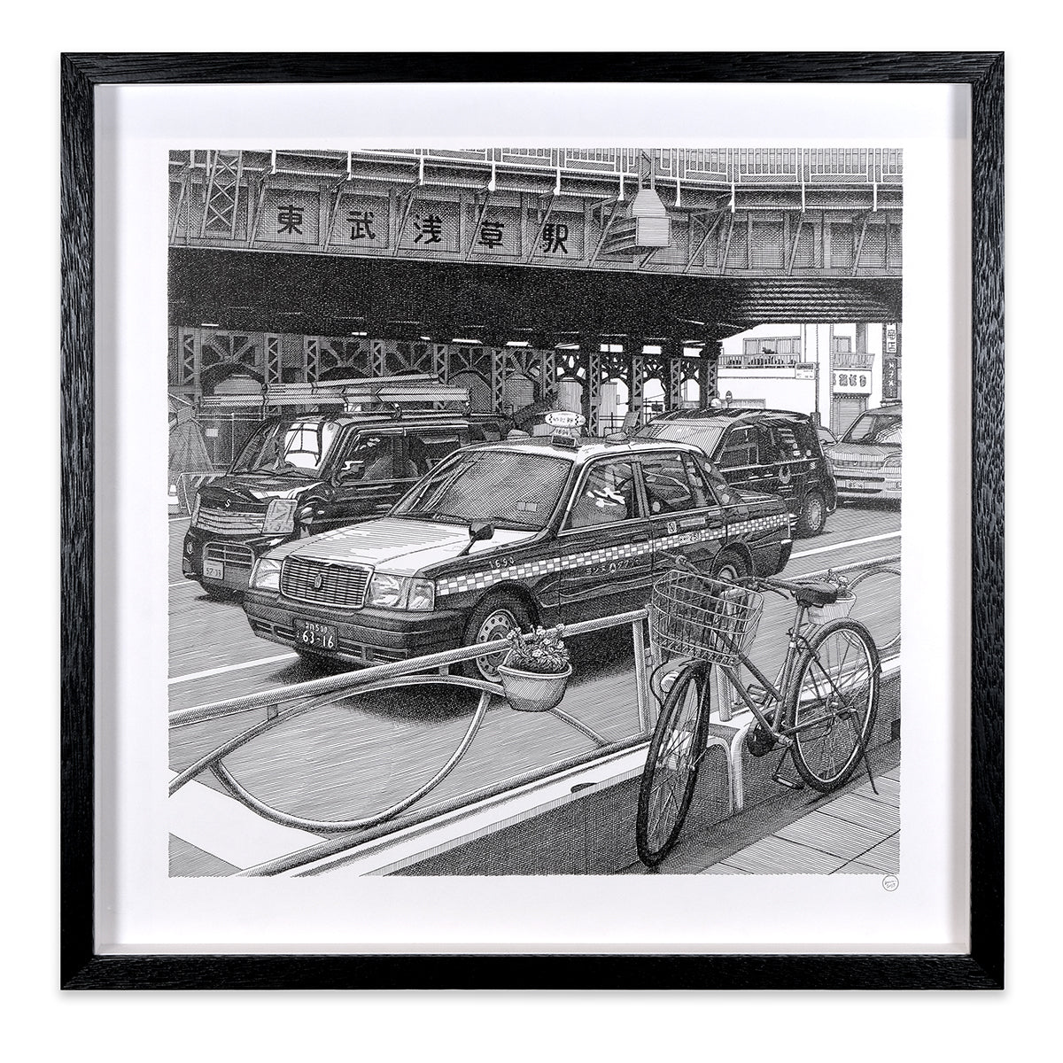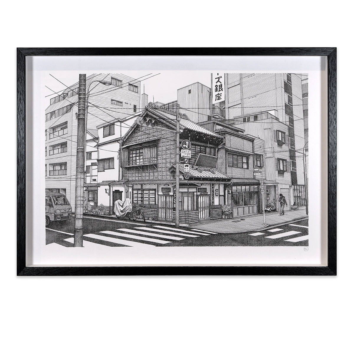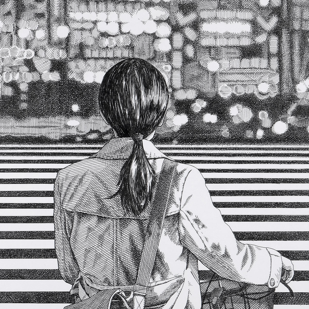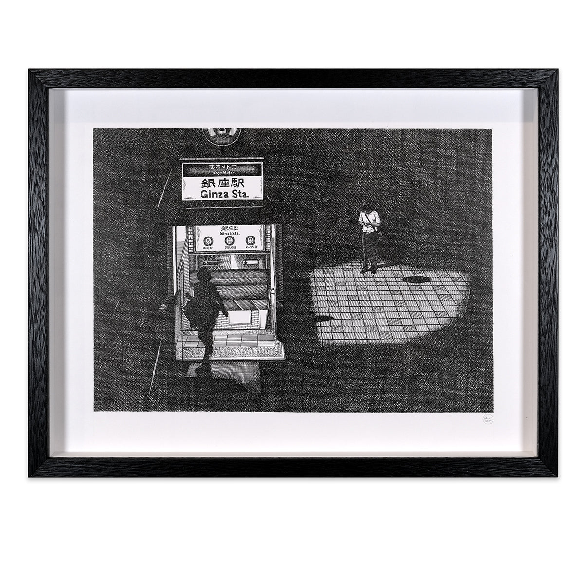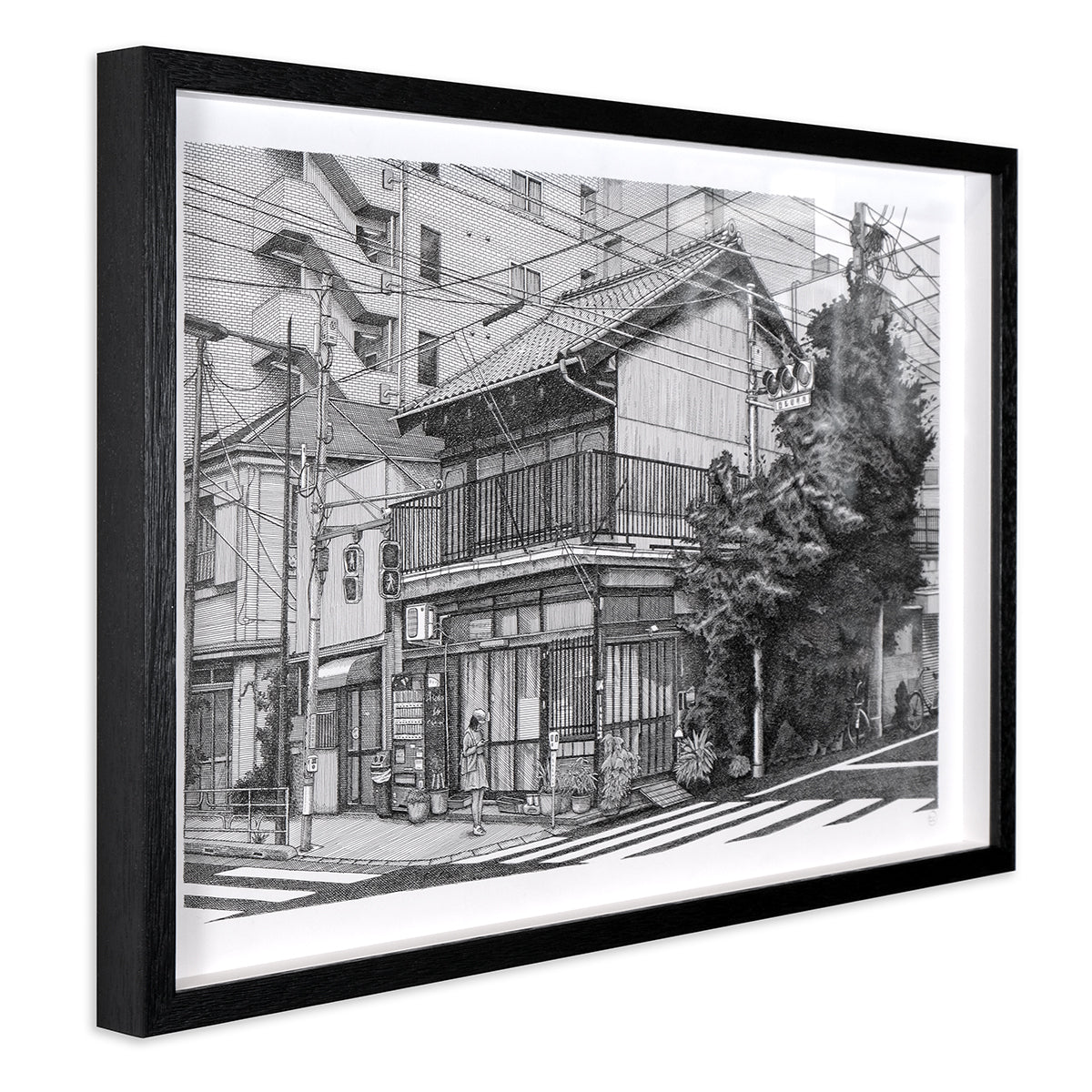 At the end of May, 2019, Bren travelled to Japan with his partner Kelly for a short holiday, blissfully unaware of the challenges the world would soon face with the onset of the COVID-19 virus. Shortly after they arrived back in Australia Bren began working on the series of drawings which referenced from photos they took during their time in Tokyo, Osaka, Kyoto, Miyajima and Hiroshima. The 20+ drawings exhibited explore and depict a series of memories from the trip with an eye on the concept of Ma – the significance of negative space or 'the space between' in traditional Japanese arts and culture. The philosophy has been described as a pause in time, an interval or emptiness in space. As Bren progressed working, this concept of The Space Between took on new meaning in terms of COVID-19 and the new era of social distancing and travel restrictions – and some of the later drawings focus on this.