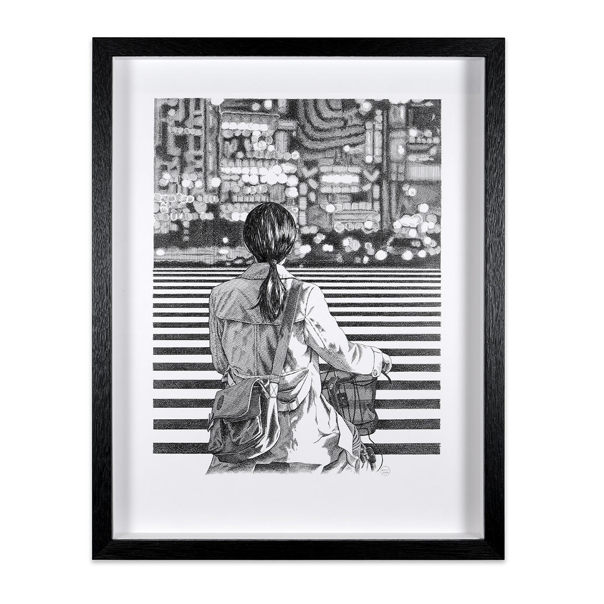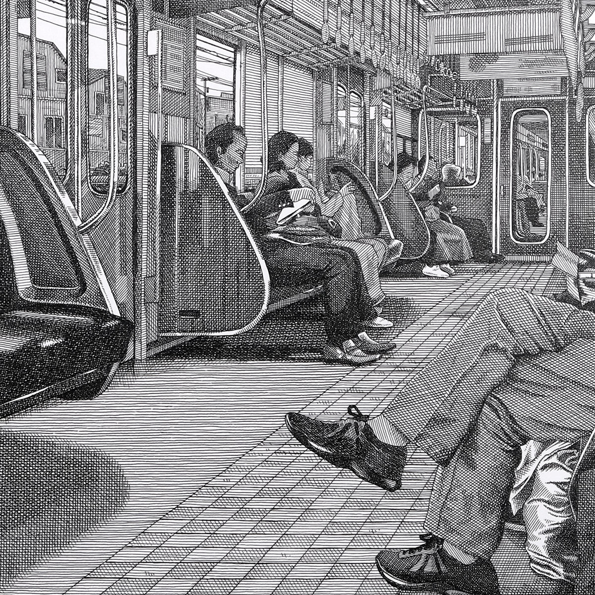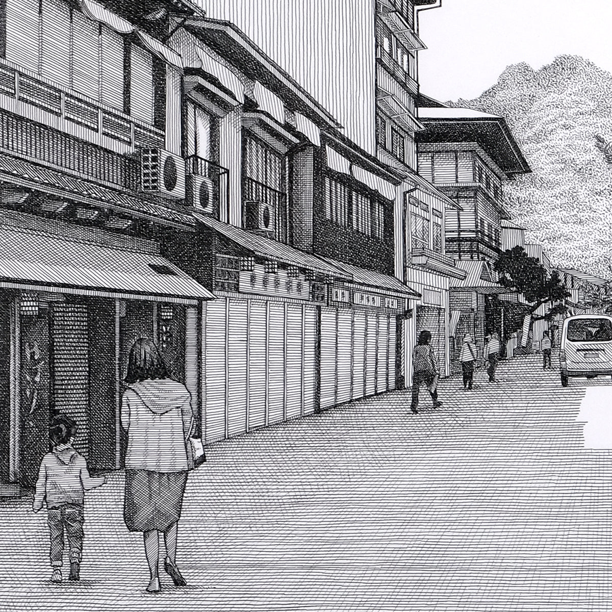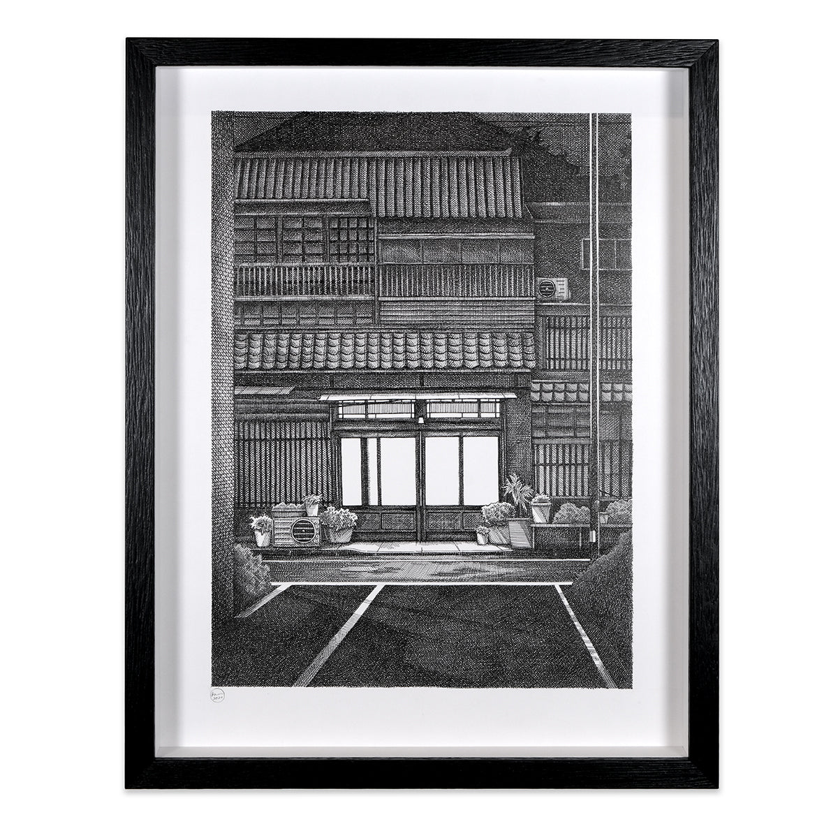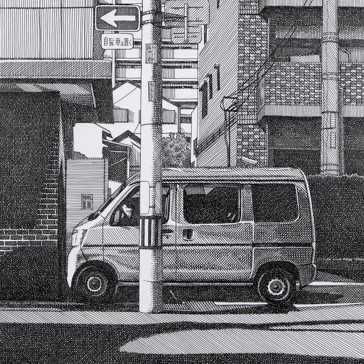 At the end of May, 2019, Bren travelled to Japan with his partner Kelly for a short holiday, blissfully unaware of the challenges the world would soon face with the onset of the COVID-19 virus. Shortly after they arrived back in Australia Bren began working on the series of drawings which referenced from photos they took during their time in Tokyo, Osaka, Kyoto, Miyajima and Hiroshima. The 20+ drawings exhibited explore and depict a series of memories from the trip with an eye on the concept of Ma – the significance of negative space or 'the space between' in traditional Japanese arts and culture. The philosophy has been described as a pause in time, an interval or emptiness in space. As Bren progressed working, this concept of The Space Between took on new meaning in terms of COVID-19 and the new era of social distancing and travel restrictions – and some of the later drawings focus on this.