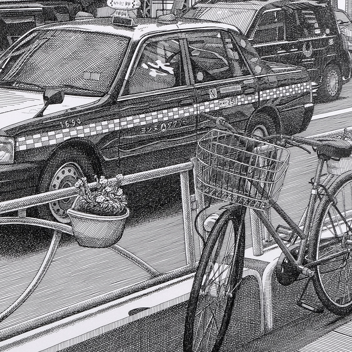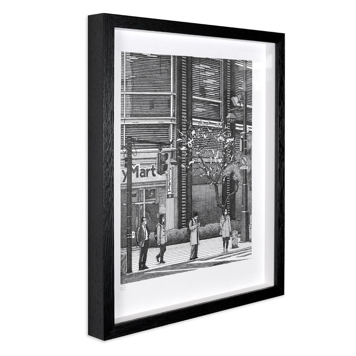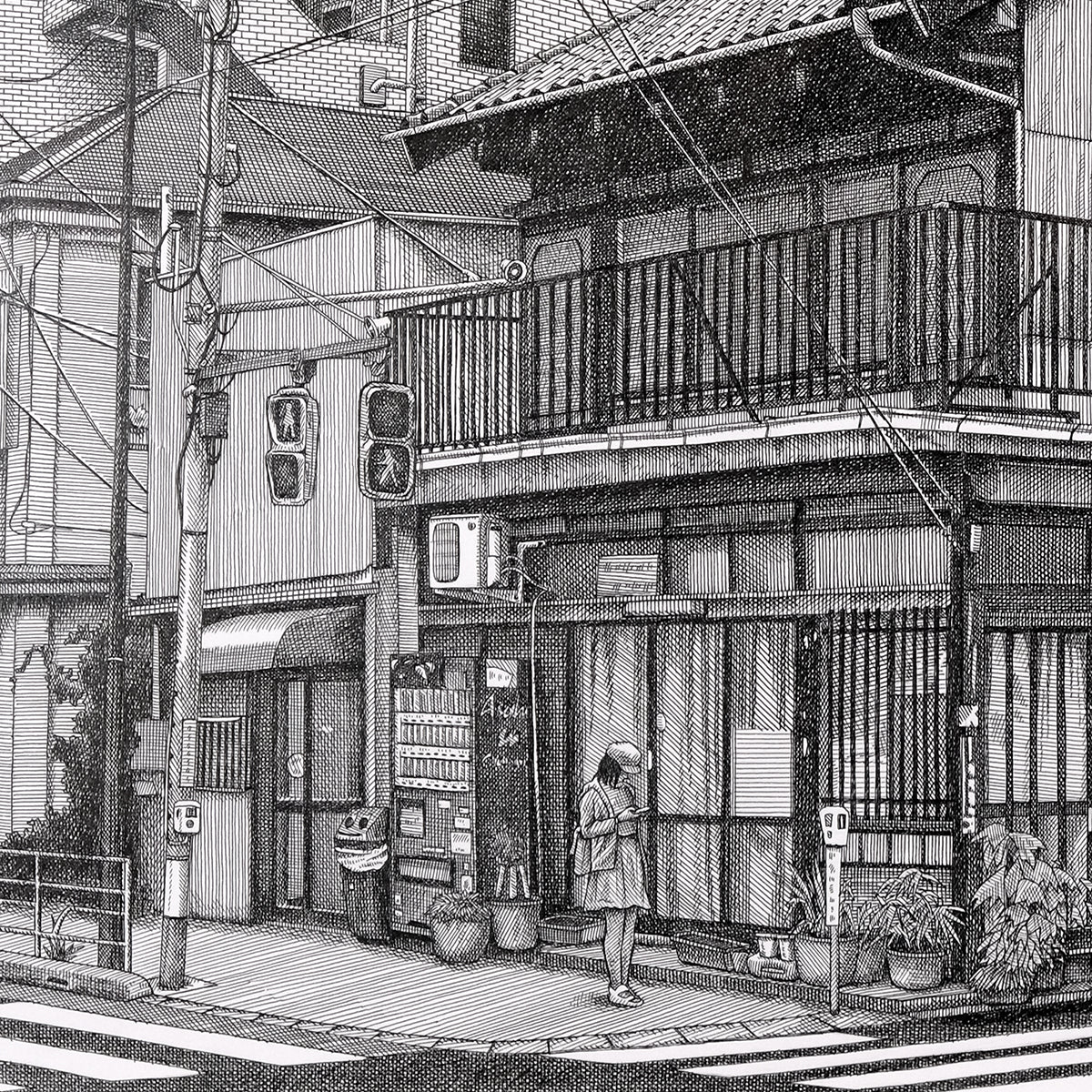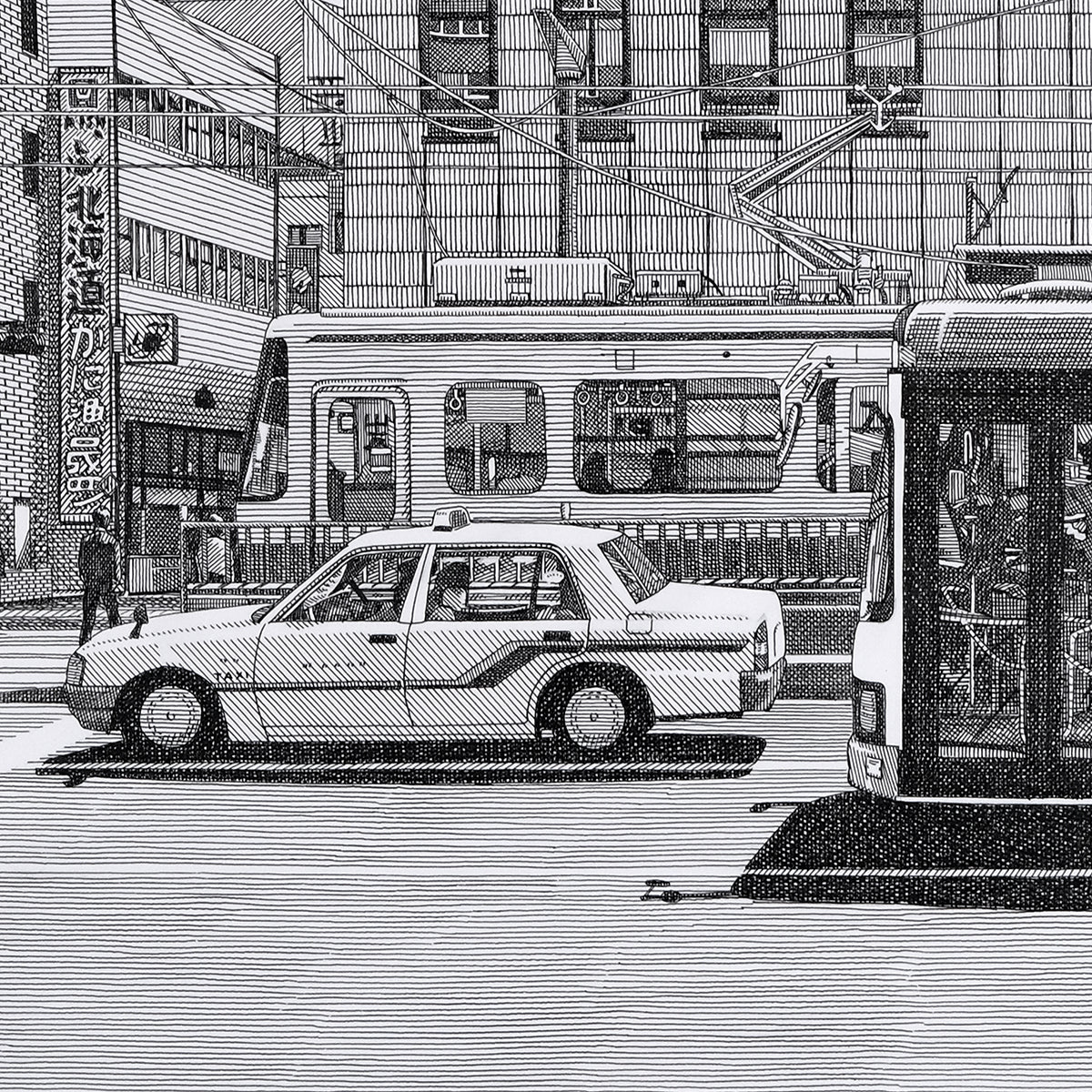 At the end of May, 2019, Bren travelled to Japan with his partner Kelly for a short holiday, blissfully unaware of the challenges the world would soon face with the onset of the COVID-19 virus. Shortly after they arrived back in Australia Bren began working on the series of drawings which referenced from photos they took during their time in Tokyo, Osaka, Kyoto, Miyajima and Hiroshima. The 20+ drawings exhibited explore and depict a series of memories from the trip with an eye on the concept of Ma – the significance of negative space or 'the space between' in traditional Japanese arts and culture. The philosophy has been described as a pause in time, an interval or emptiness in space. As Bren progressed working, this concept of The Space Between took on new meaning in terms of COVID-19 and the new era of social distancing and travel restrictions – and some of the later drawings focus on this.