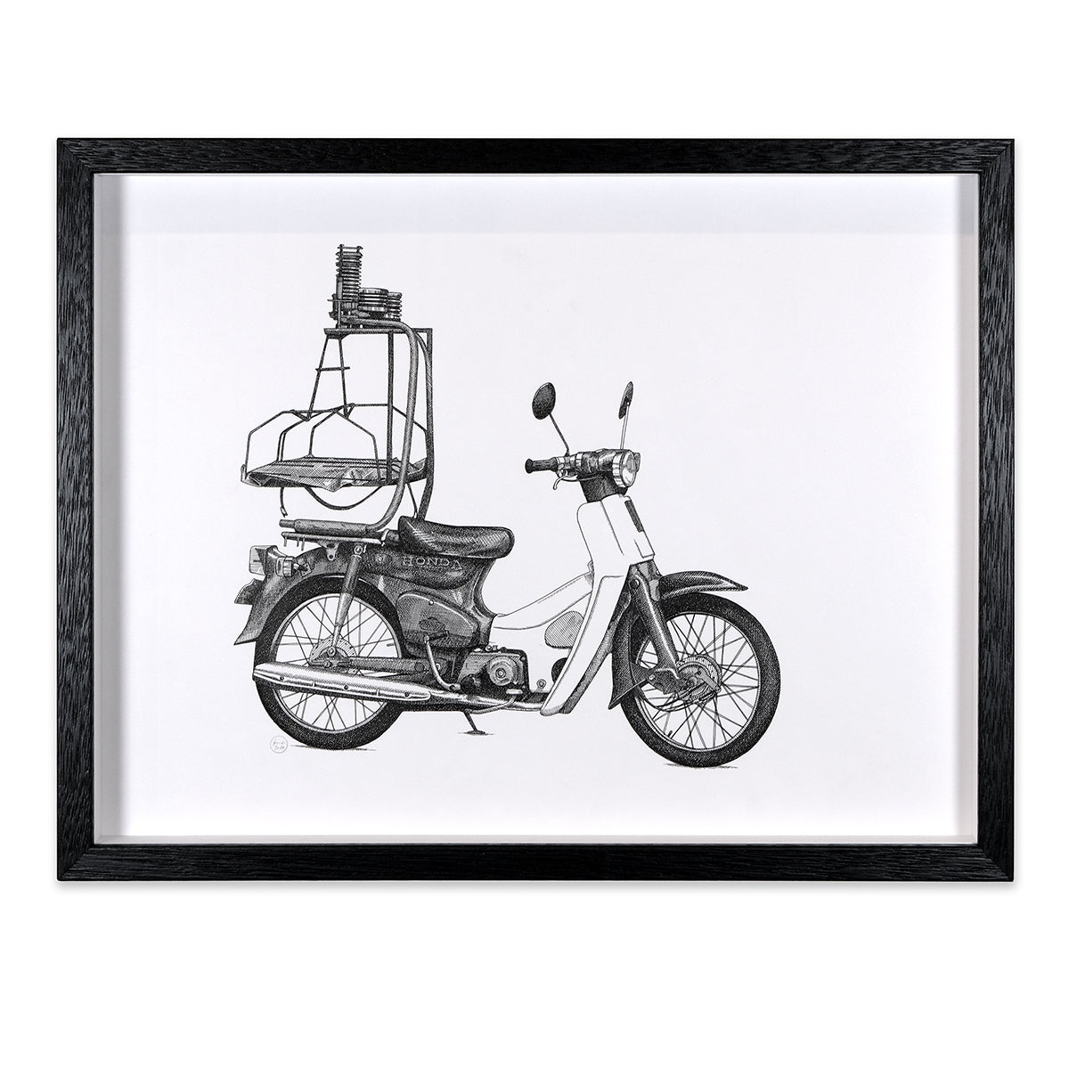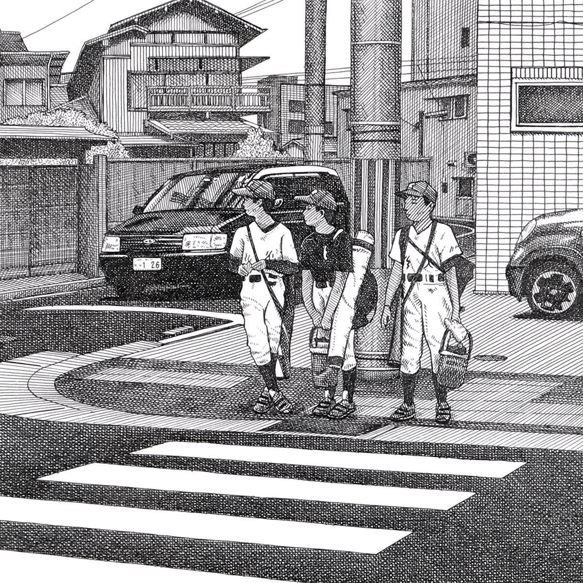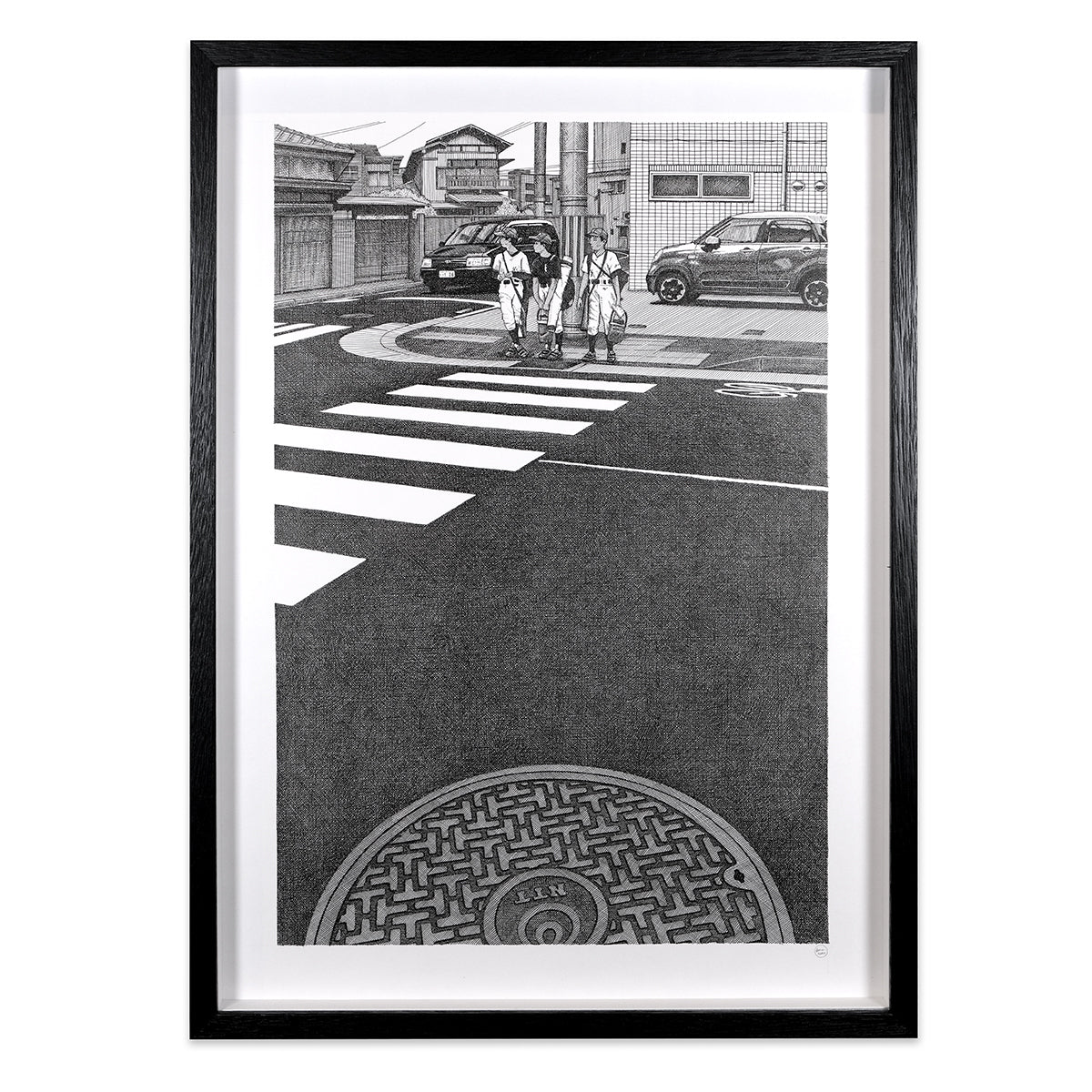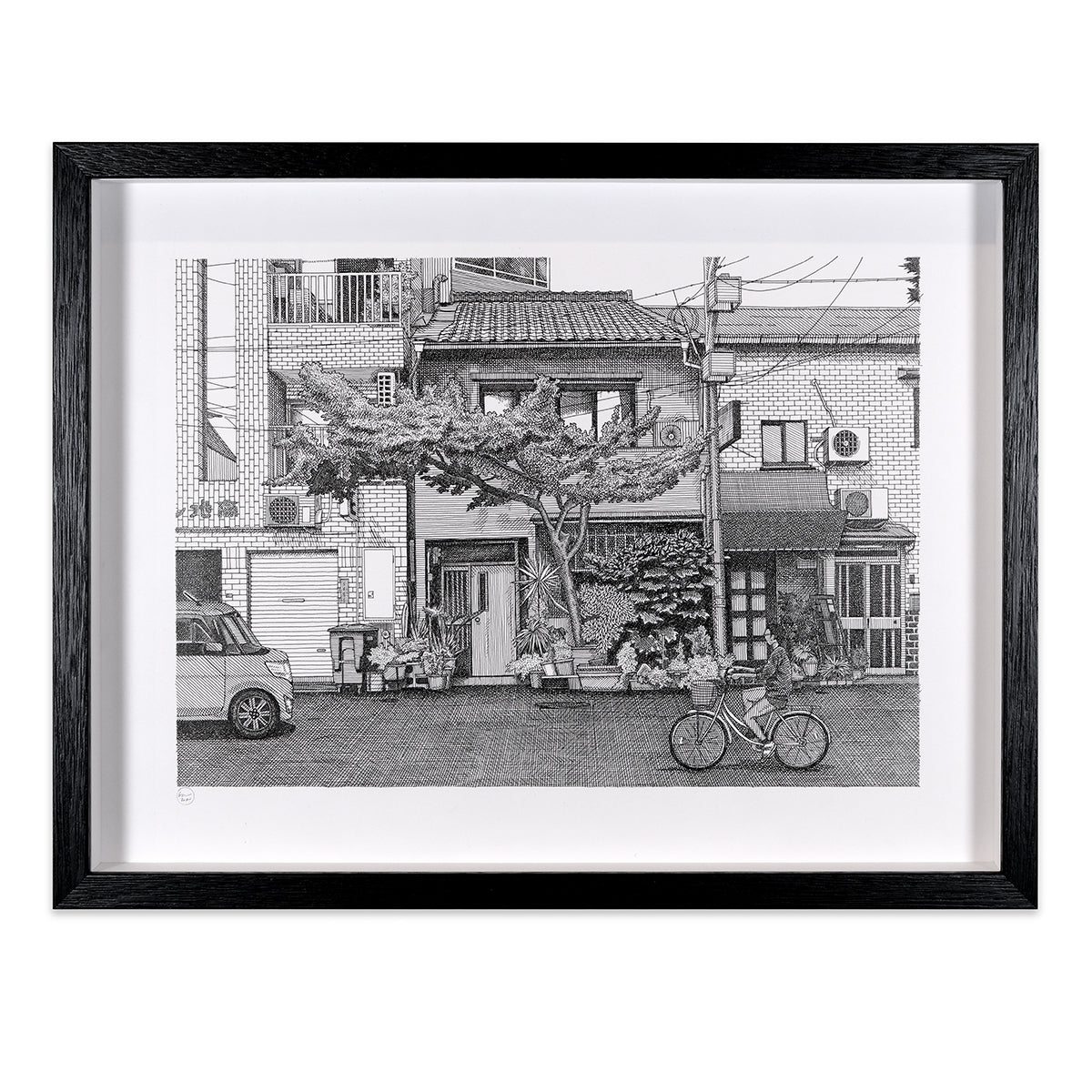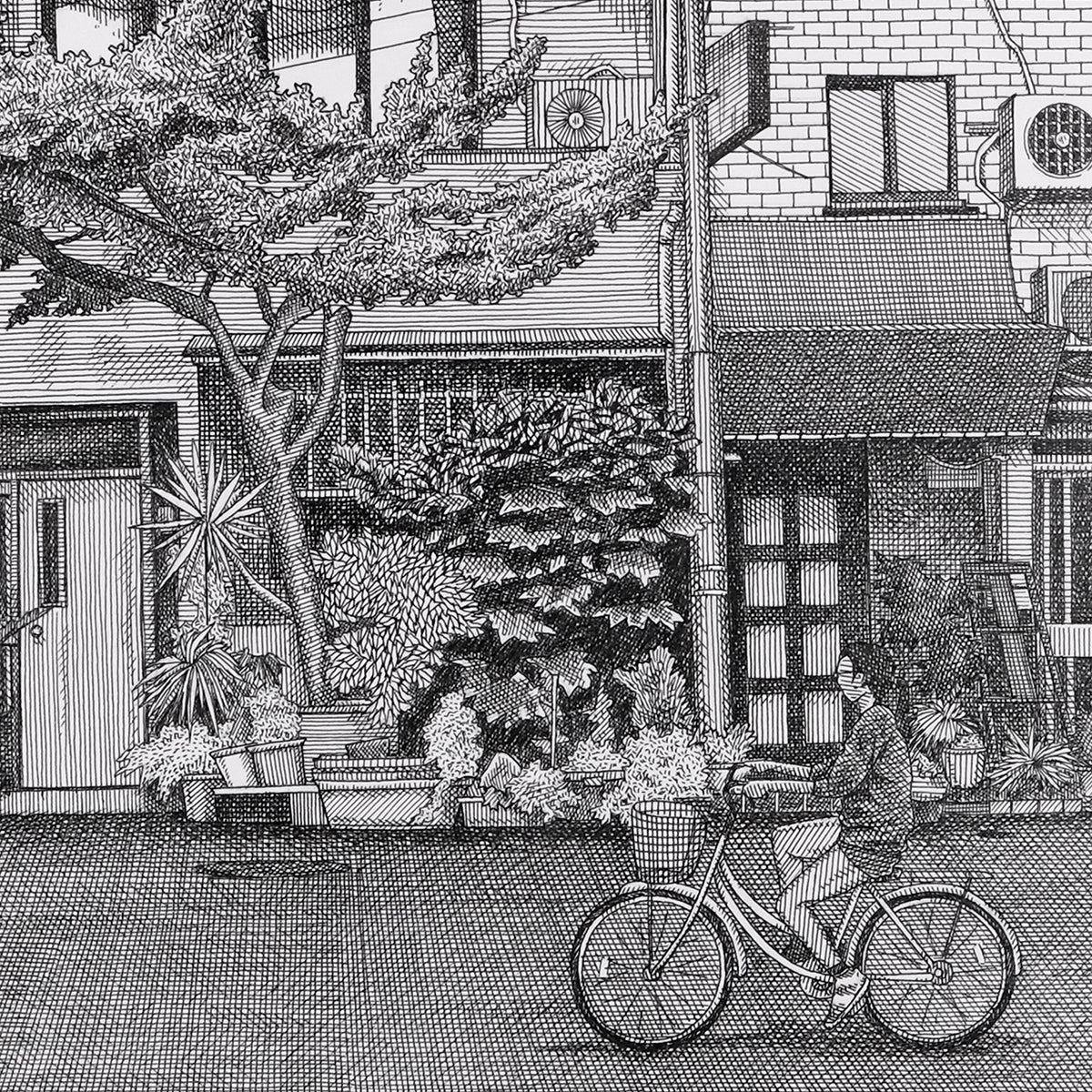 At the end of May, 2019, Bren travelled to Japan with his partner Kelly for a short holiday, blissfully unaware of the challenges the world would soon face with the onset of the COVID-19 virus. Shortly after they arrived back in Australia Bren began working on the series of drawings which referenced from photos they took during their time in Tokyo, Osaka, Kyoto, Miyajima and Hiroshima. The 20+ drawings exhibited explore and depict a series of memories from the trip with an eye on the concept of Ma – the significance of negative space or 'the space between' in traditional Japanese arts and culture. The philosophy has been described as a pause in time, an interval or emptiness in space. As Bren progressed working, this concept of The Space Between took on new meaning in terms of COVID-19 and the new era of social distancing and travel restrictions – and some of the later drawings focus on this.