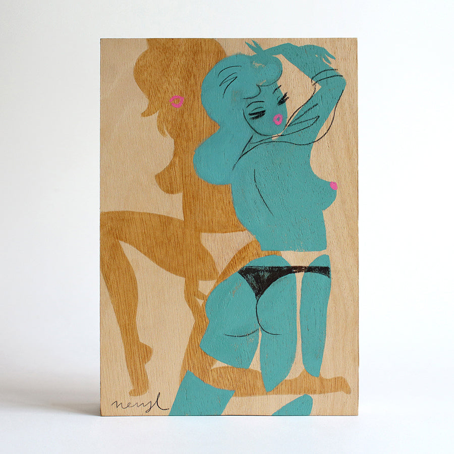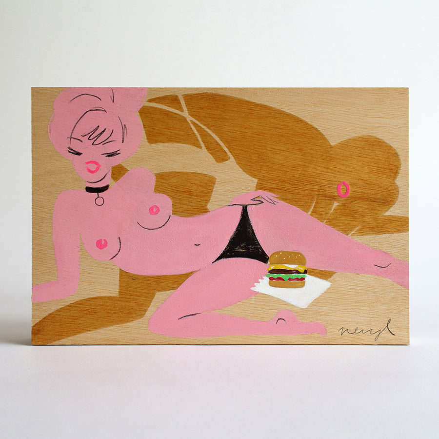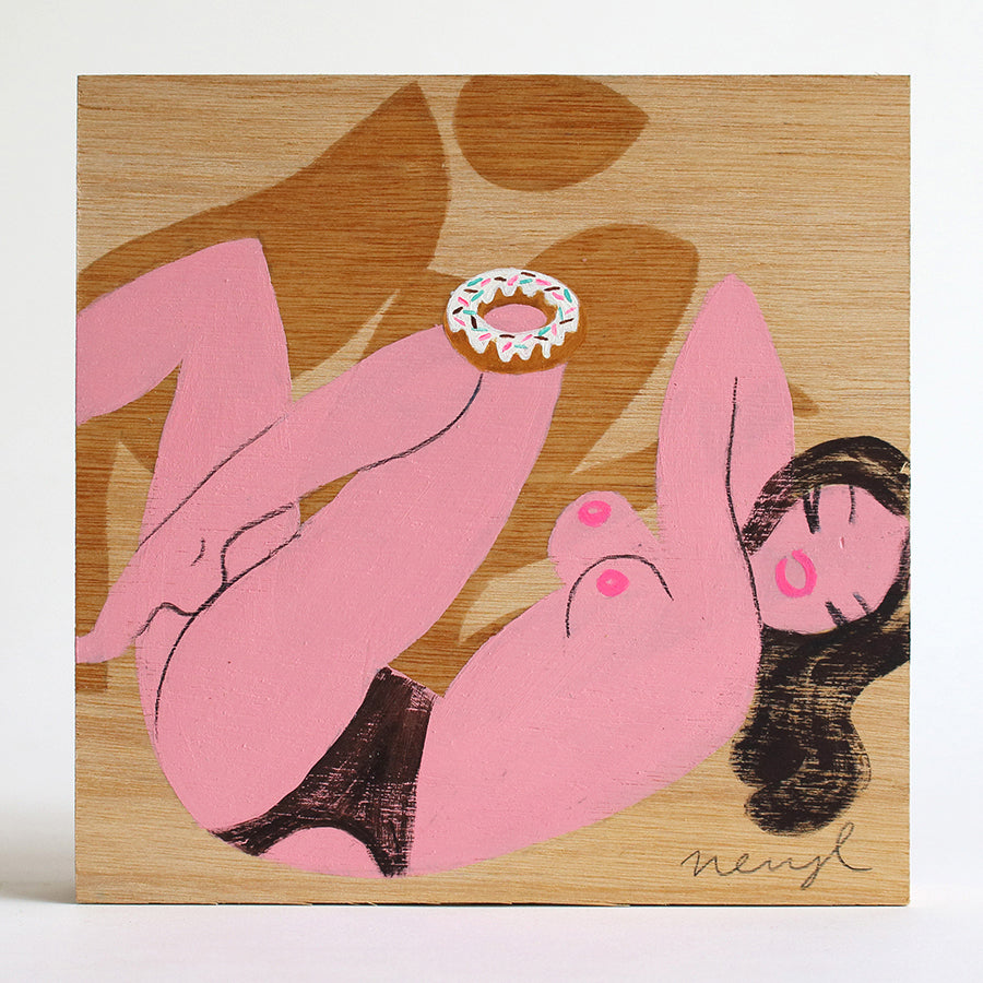 "Broad Appeal looks to celebrate women and the power inherent in women owning their sexuality, rather than being objectified by it. All the artworks are original paintings on plywood. The term ‘broad’ originated in the 1930’s and was popularised in the 40’s and 50’s as slang for an independent, assertive/aggressive woman. Someone who sings loud, parties hard, has a strong will and a sarcastic sense of humour. These attributes could be seen as threatening or even slightly derogatory but I am using the word in a positive light. Why can’t women be all these things?"