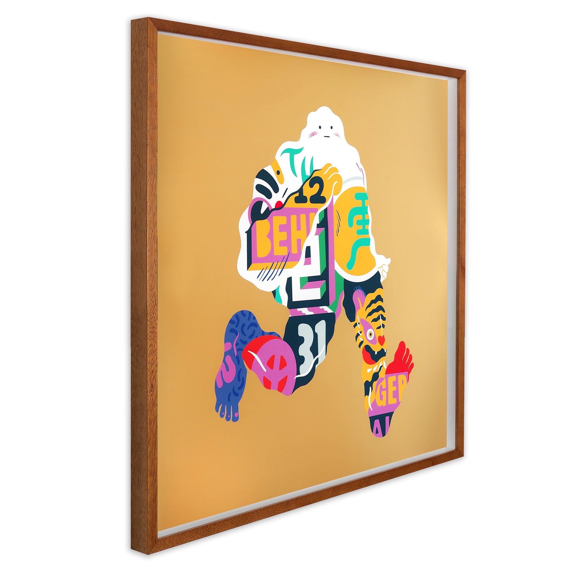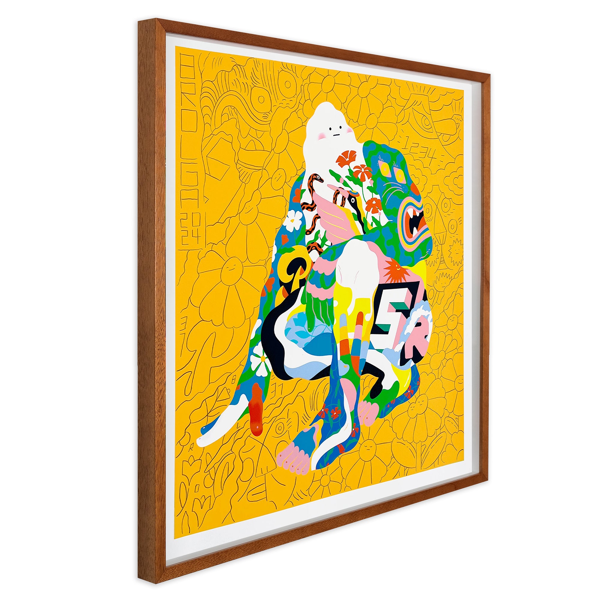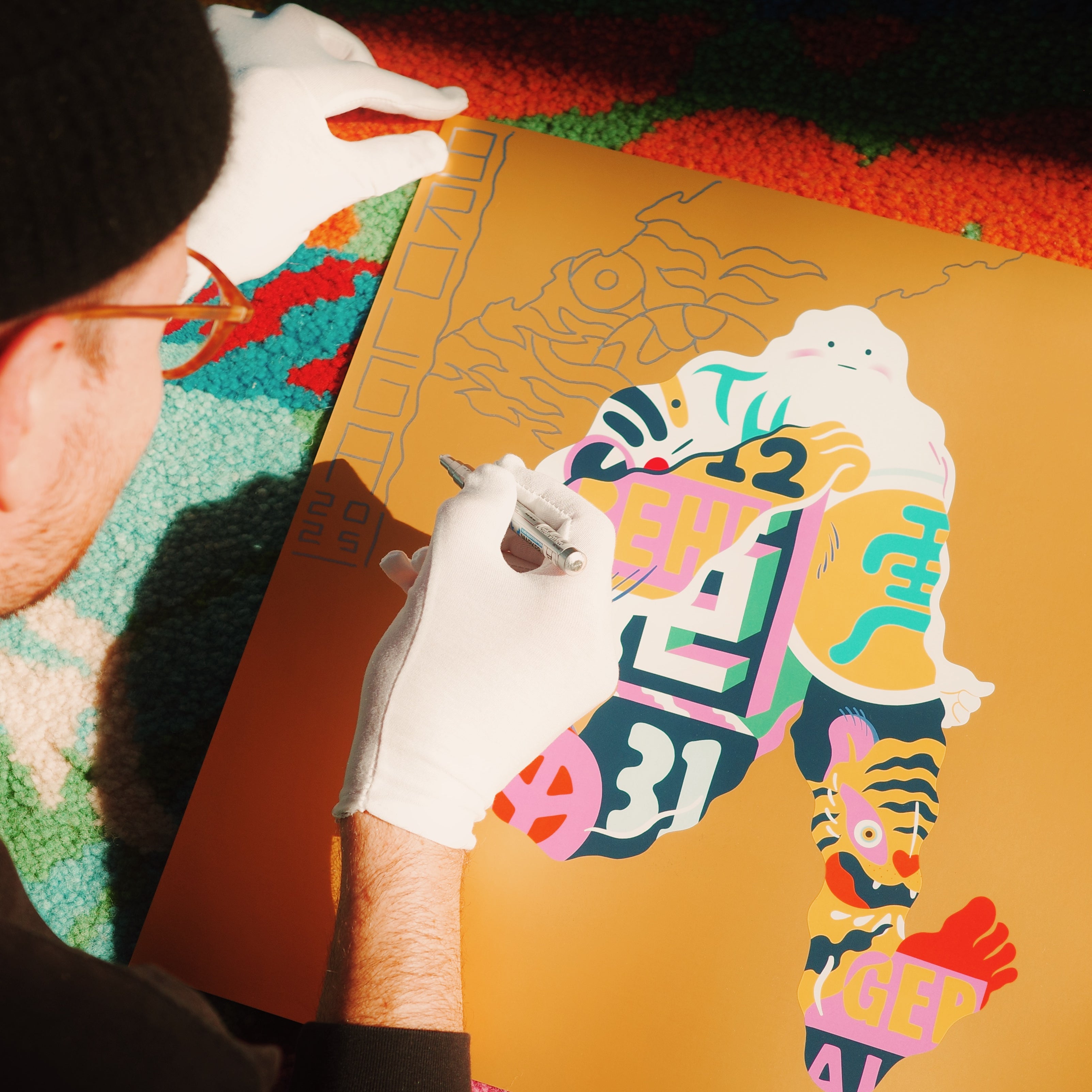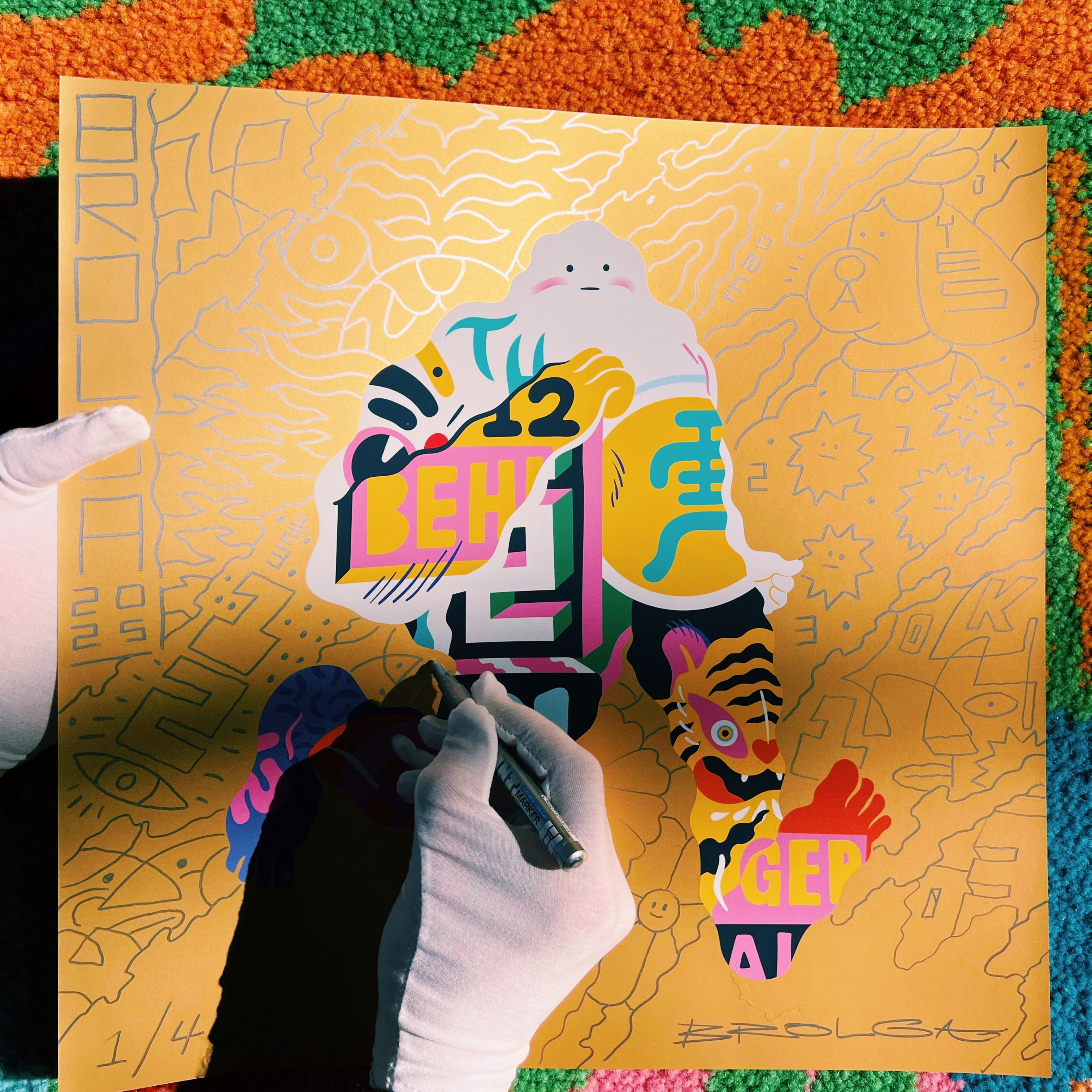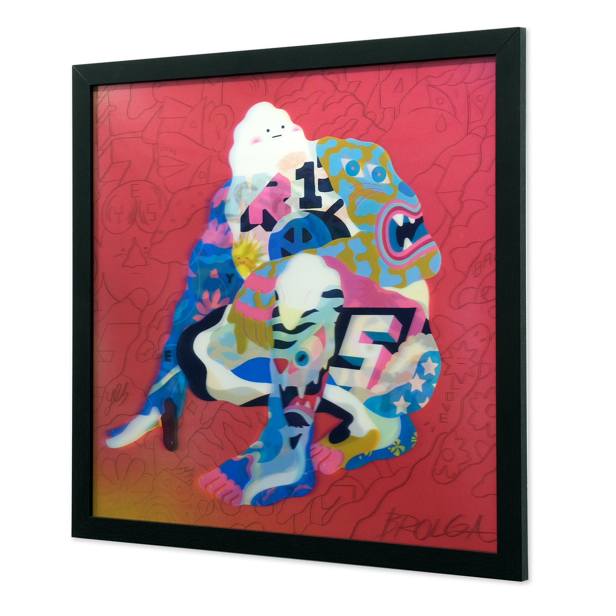 With a pop-styled aesthetic honed from his graphic design background, Brolga mixes daydream-like doodles with simple iconography to create his worlds and characters. Growing up in Australia, his family would often make days-long trips across the country, moving house from Queensland to the Northern Territory and back. It’s on these road trips that Brolga began his art, illustrating his surreal and imaginative characters while journeying through the remote terrains of his home.
