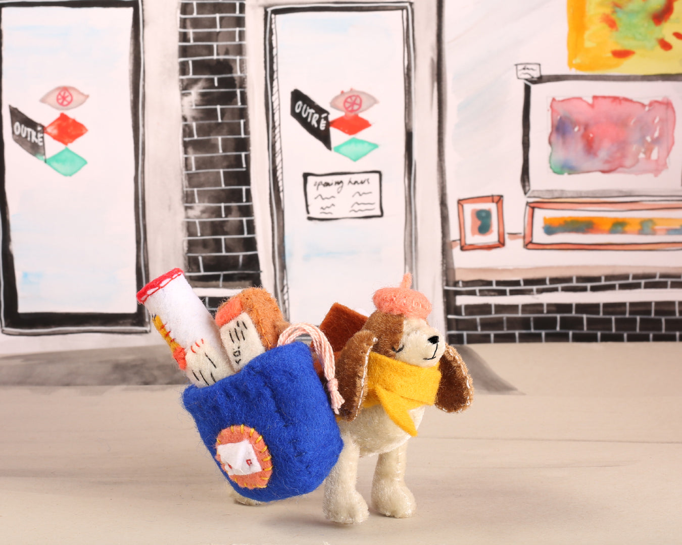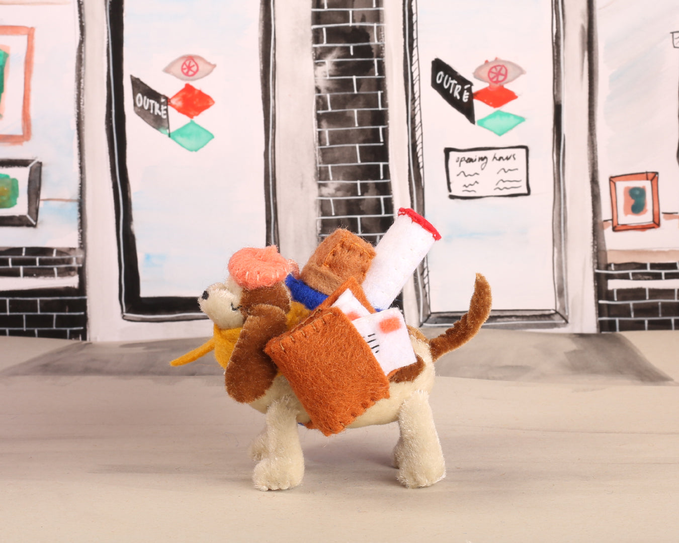 Medium: Soft sculpture, faux fur, armature wire, wool felt, recycled plastic thread spools, thread, recycled foam, recycled PET plastic stuffing