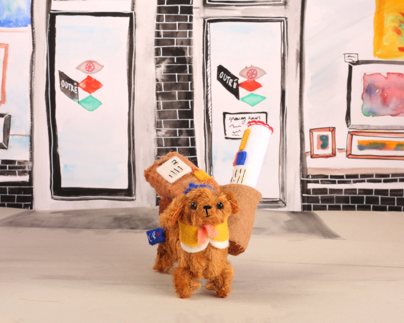 Medium: Soft sculpture, faux fur, armature wire, wool felt, recycled plastic thread spools, thread, recycled foam, recycled PET plastic stuffing