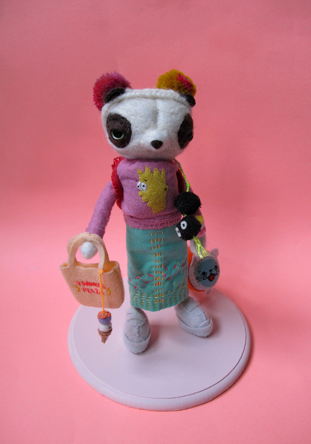 needle felted plush sculpture with stand