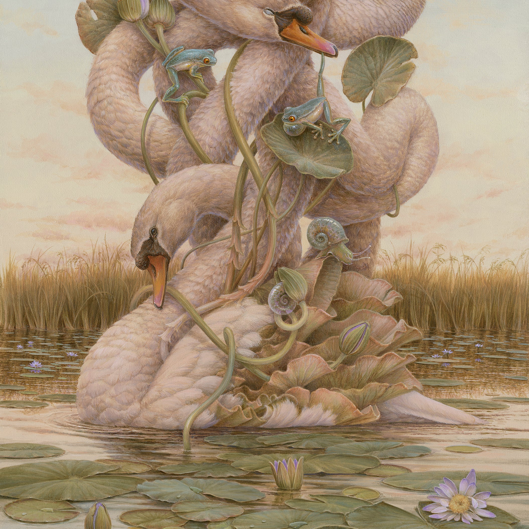 Much like the natural world, there is an underlying sense of mystery to the creatures that revolves around the triad of beauty, temptation, and danger. Bittsweetness is something that seeps into most of my paintings, balancing themes of longing and melancholy with levity and hope.