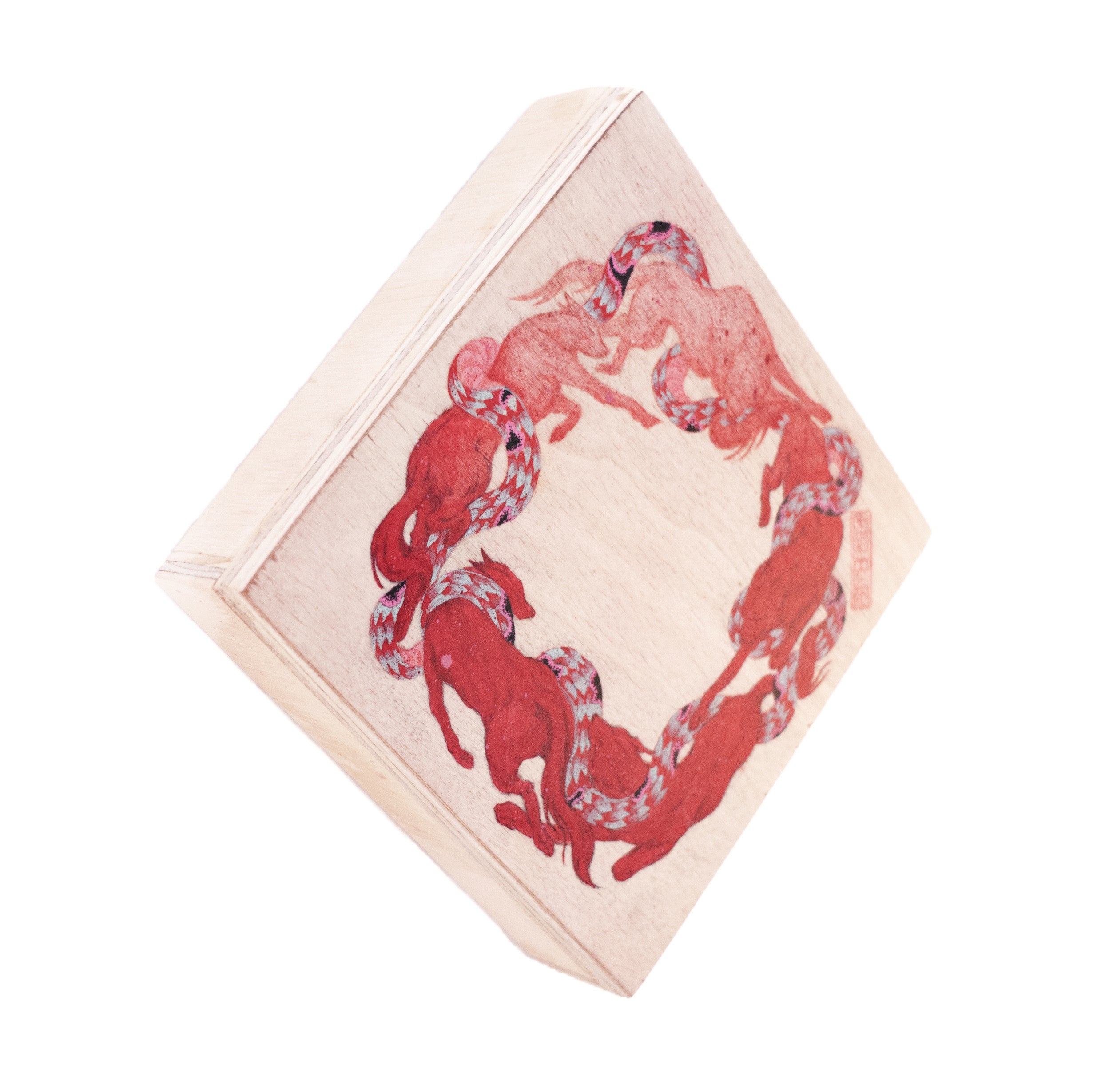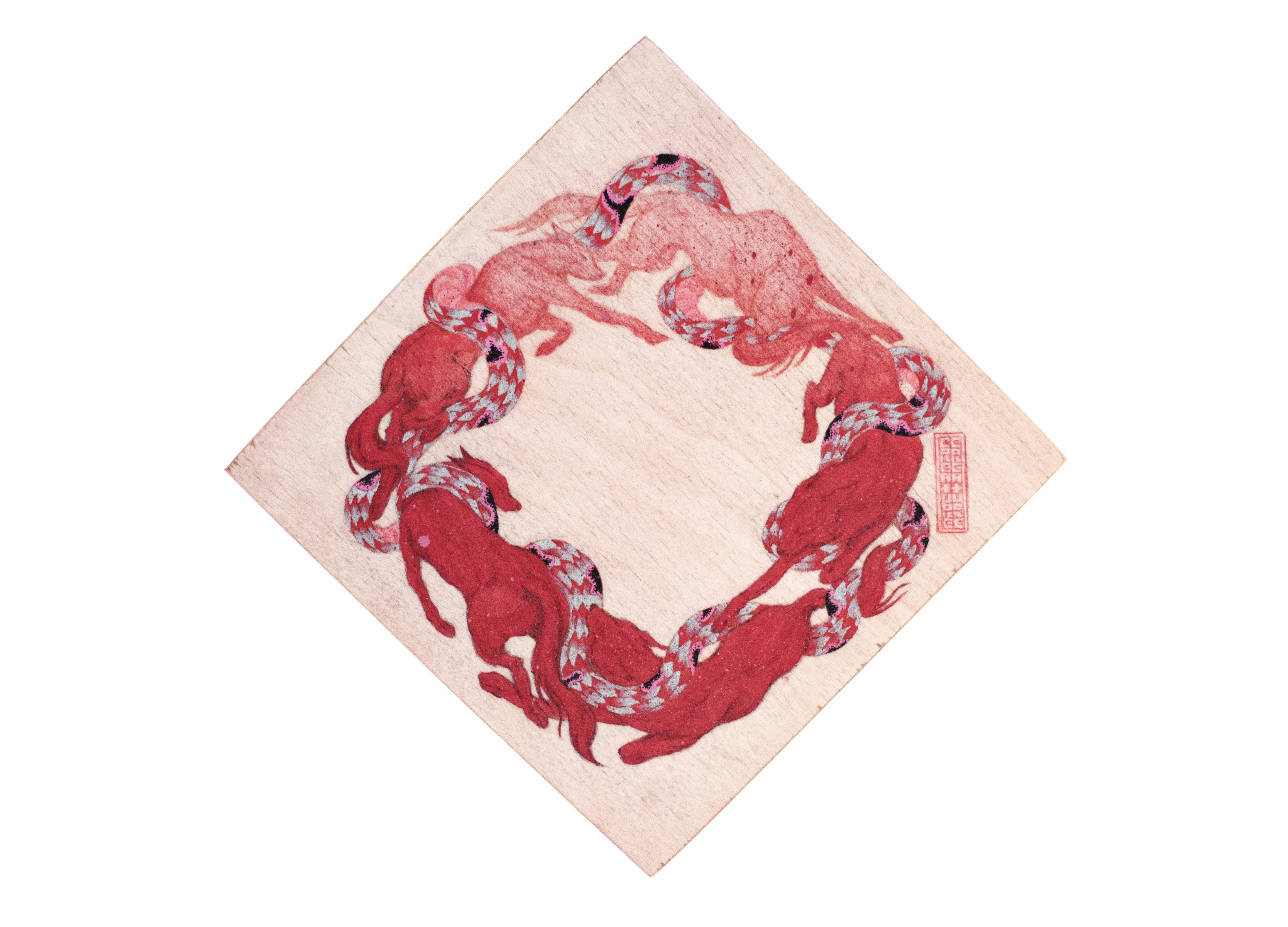 Acrylic, ballpoint pen, watercolour, aerosol on plywood