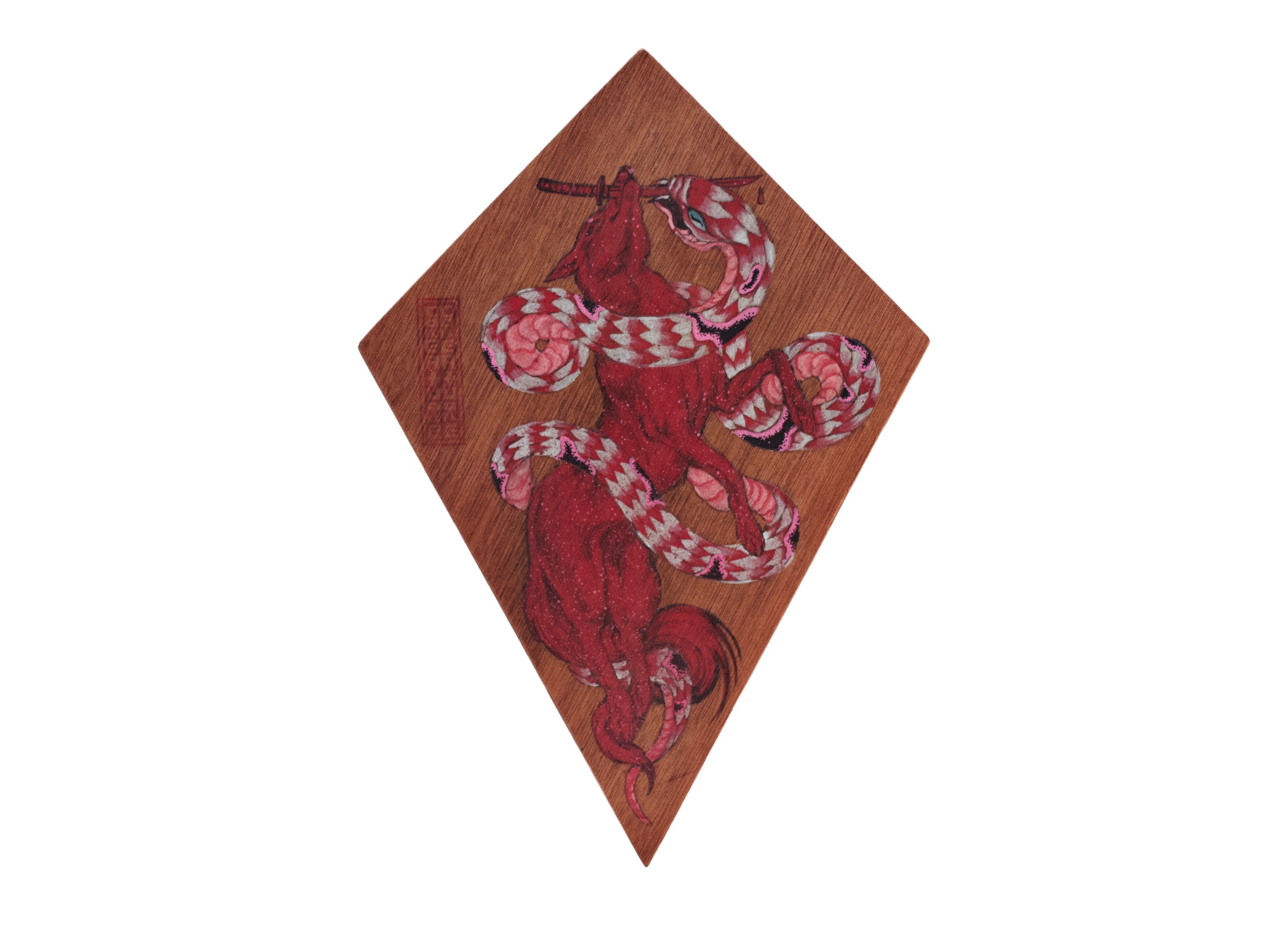 Acrylic, ballpoint pen, watercolour, aerosol on plywood