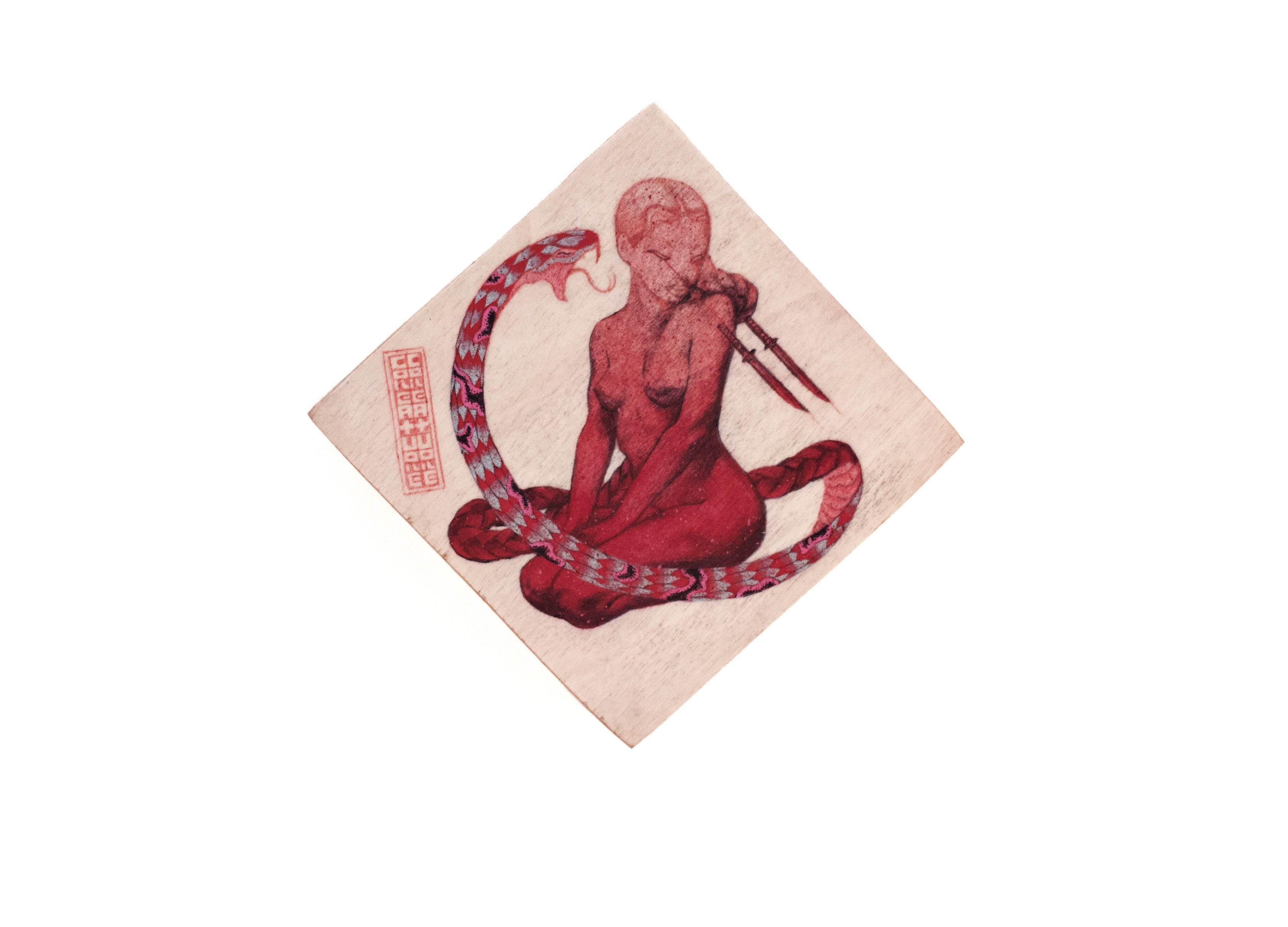 Acrylic, ballpoint pen, watercolour, aerosol on plywood