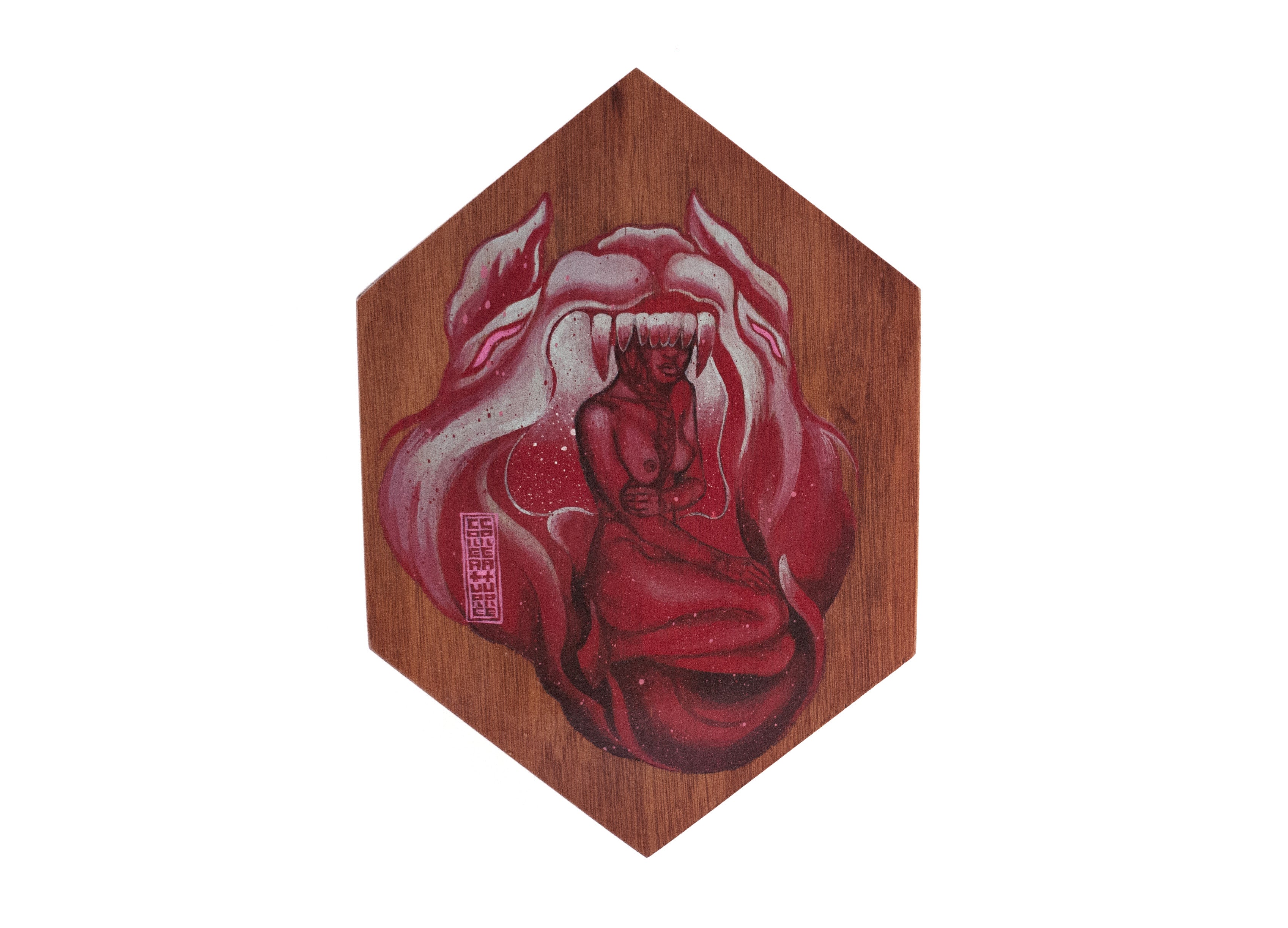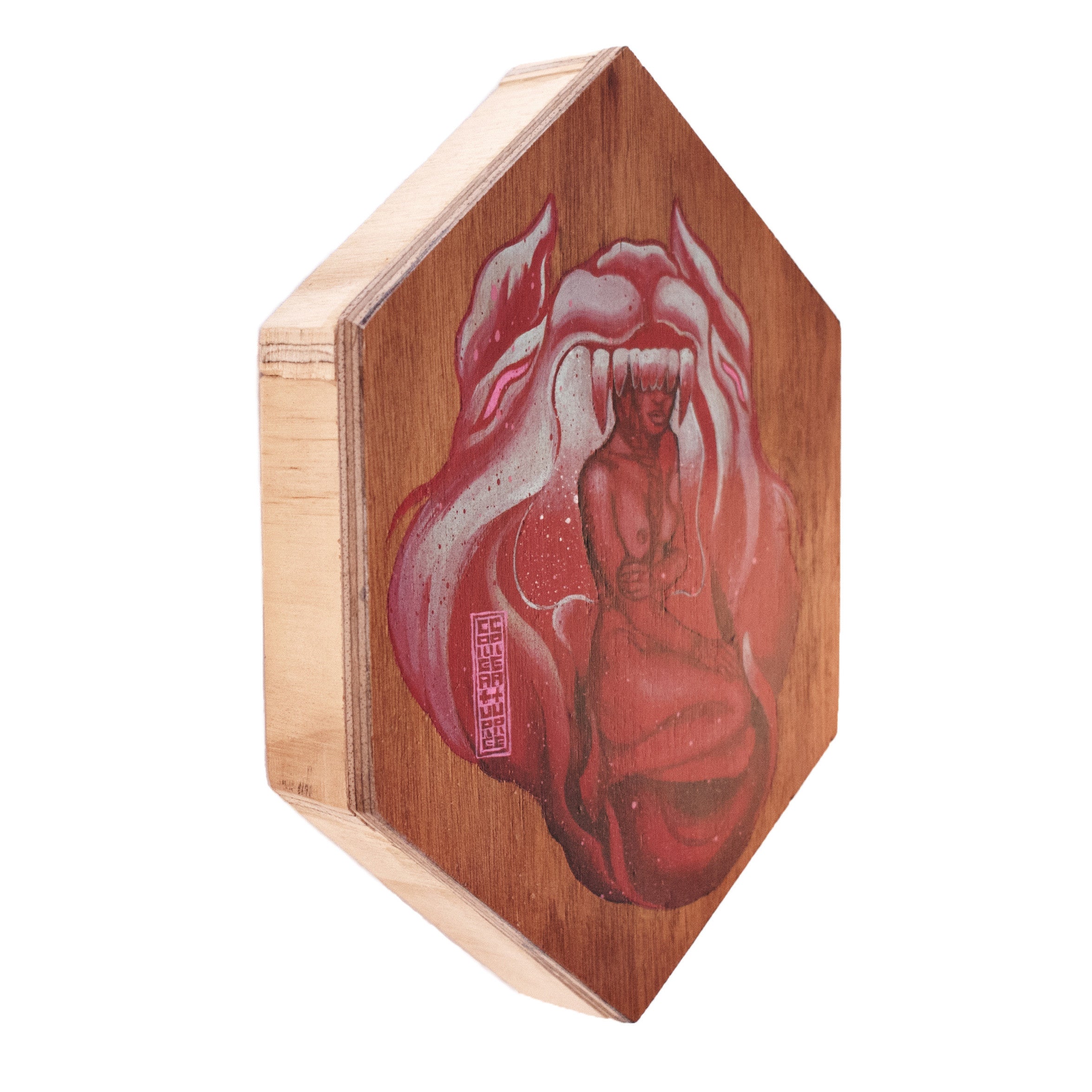 Acrylic, ballpoint pen, watercolour, aerosol on plywood
