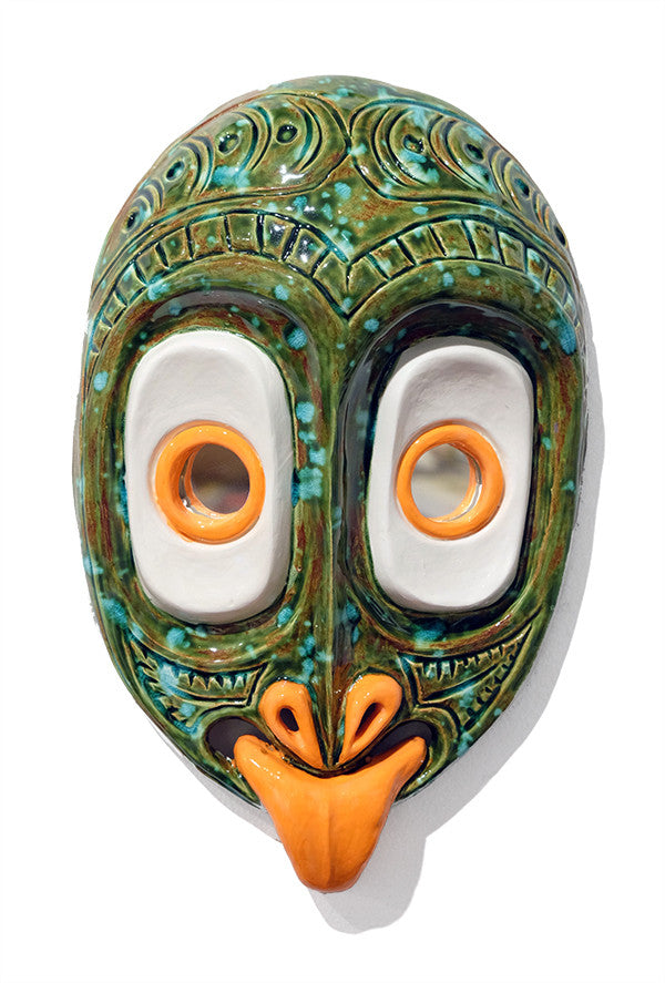 Hand cast white earthen ware ceramic w/ lead free ‘element’ glaze.