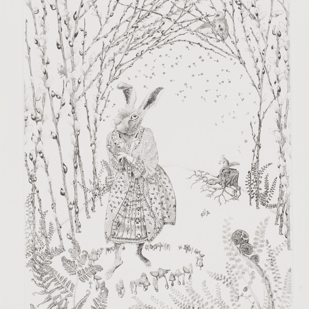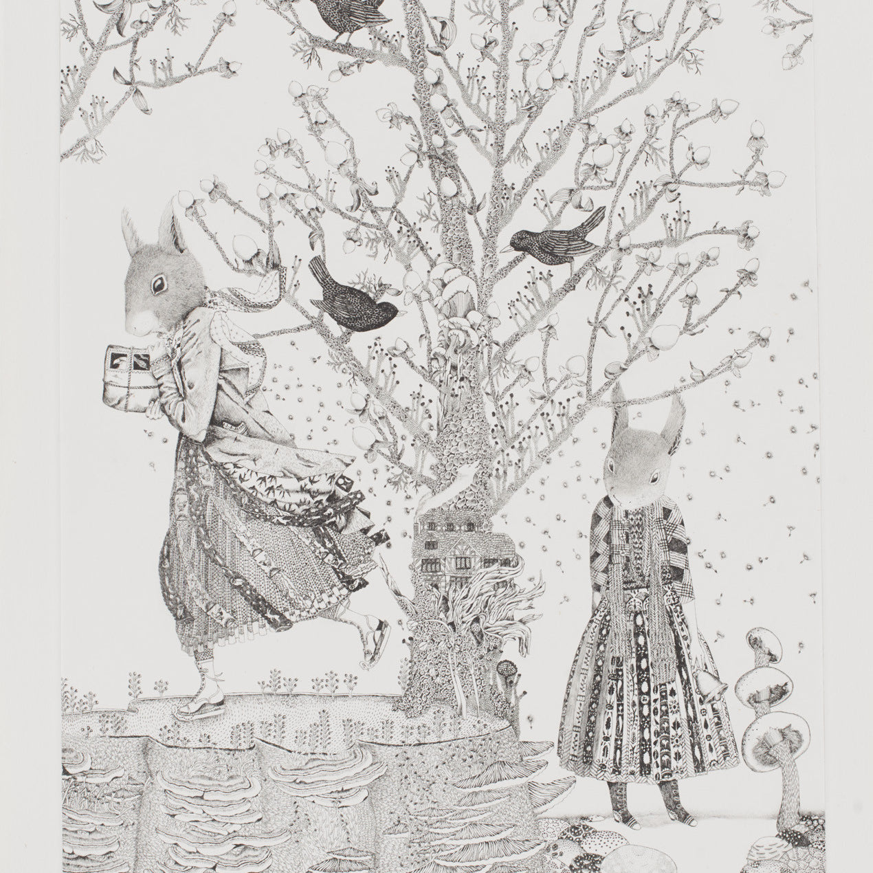 Dominique infuses her delicately detailed art with an edge of darkness and foreboding. Anthropomorphized characters combine with floral emblems, decorative dresses and storybook references - all reminiscent of her love of folk art.