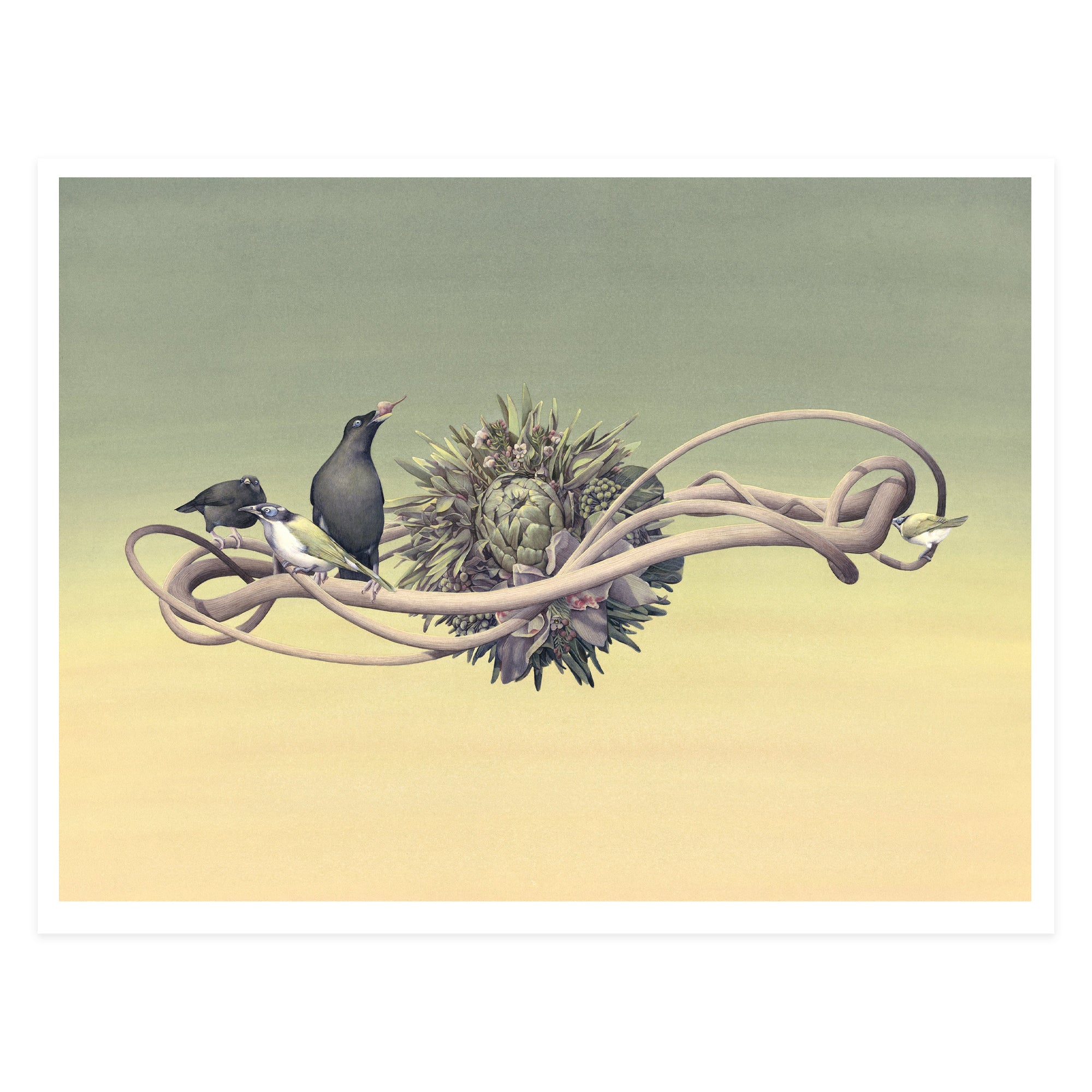 By using concepts from the natural sciences as narrative frameworks, Erik creates surreal landscapes that appear both familiar and foreign. His goal is to create work that seems as if it is in a dream or another dimension, while still feeling like home.