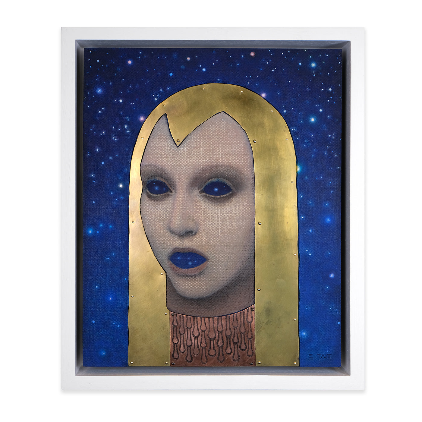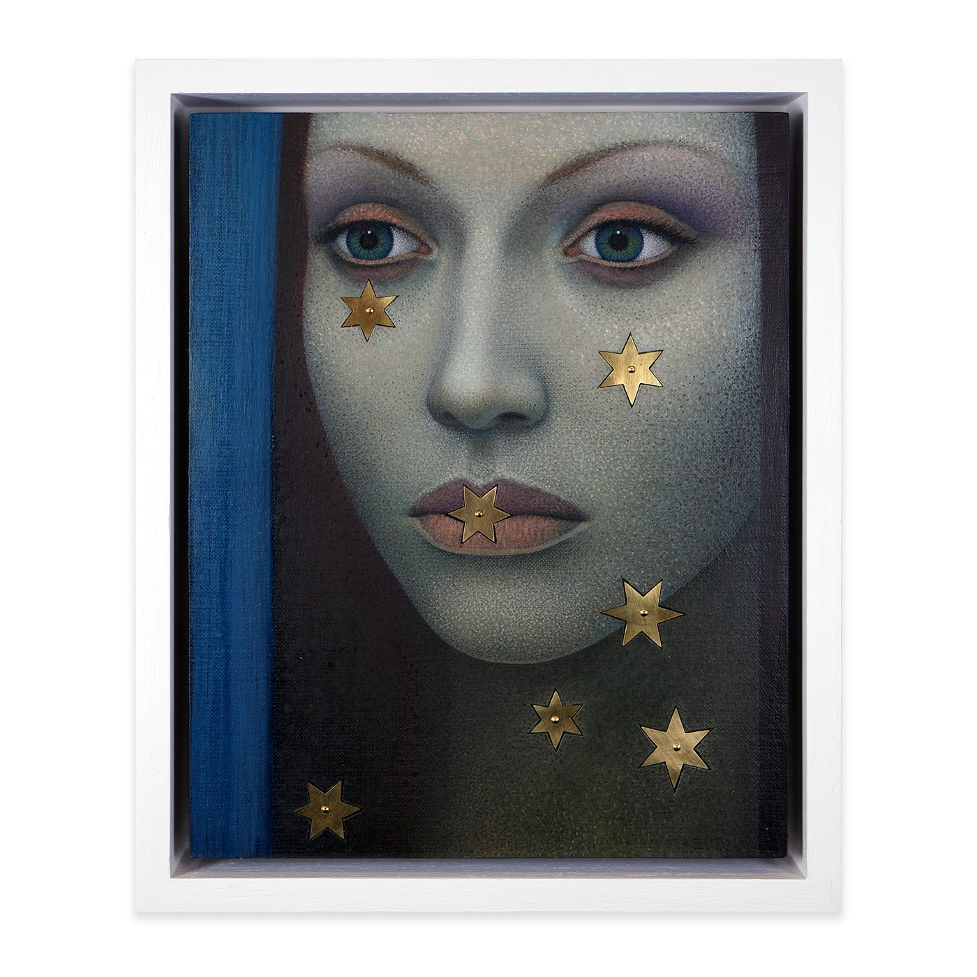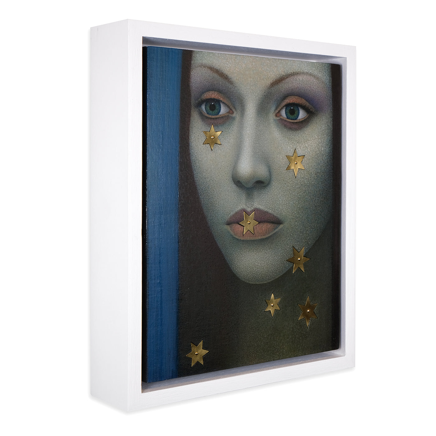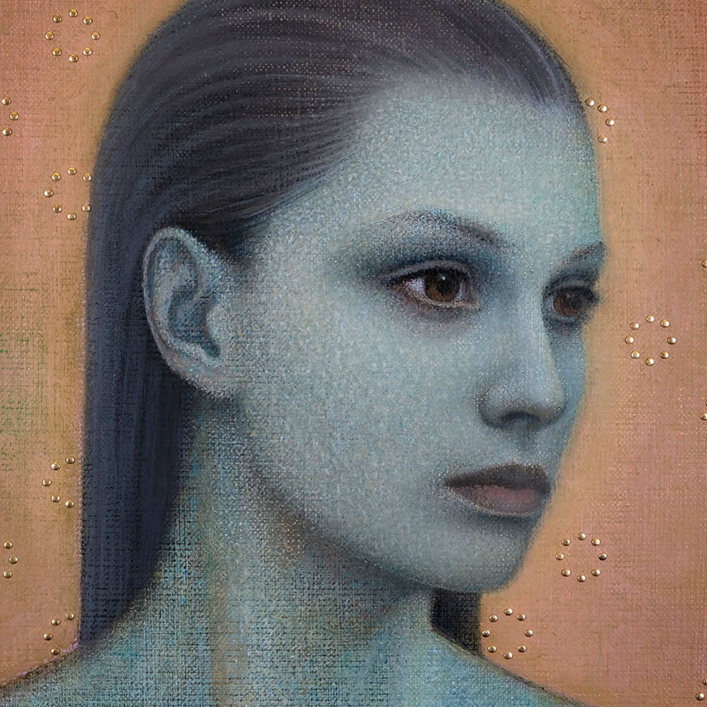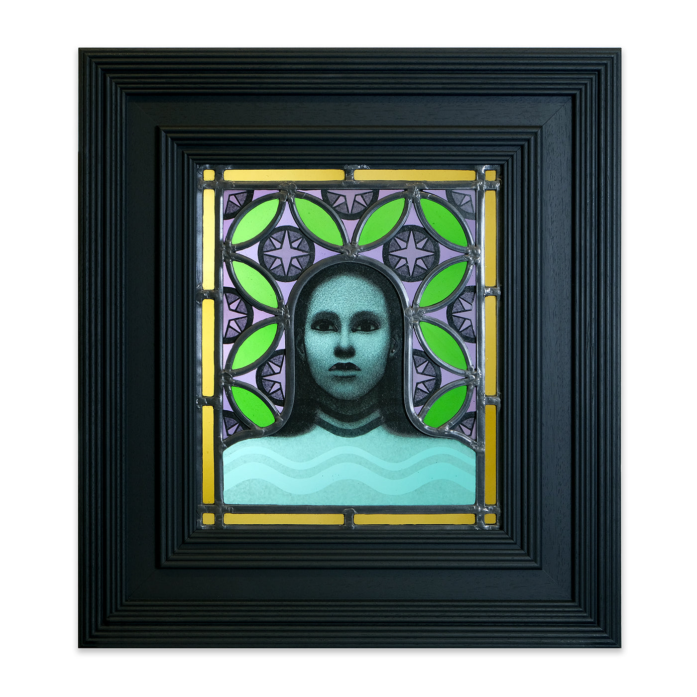 From an early age he's been captivated by the mythology and folklore of the Highlands and Islands and many of these tales relate to anthropomorphic deities within the environment. As a result, much of his work combines portraiture with pattern and symbols such as mountains, clouds and birds, and alludes to themes of ideology and transcendence.