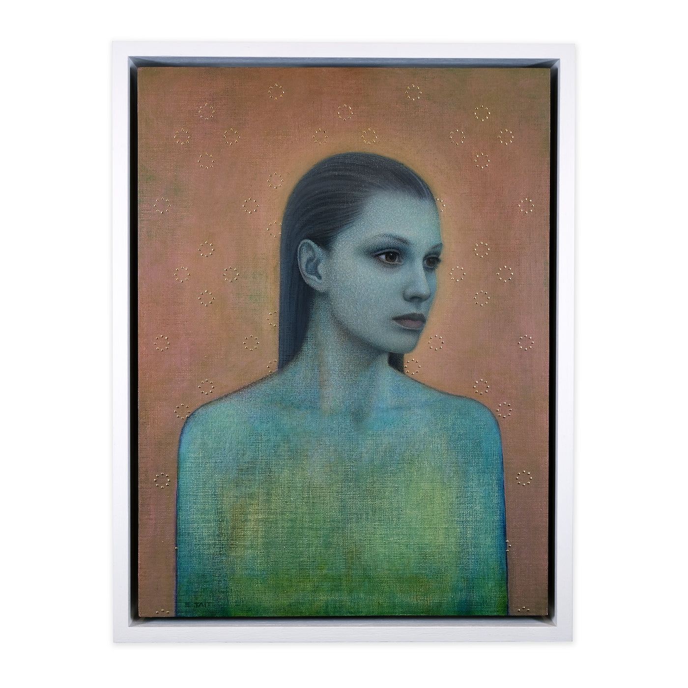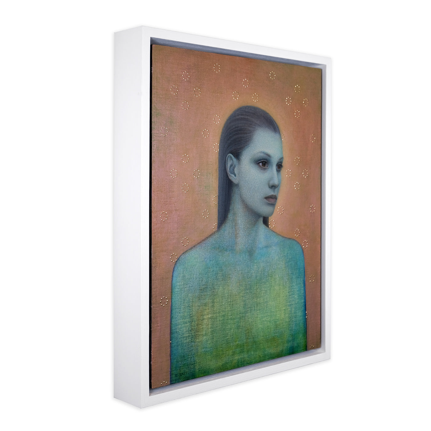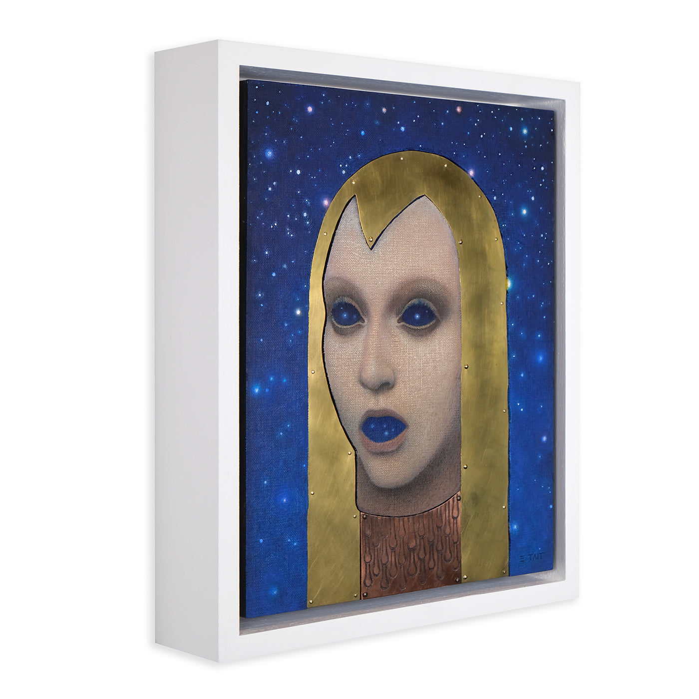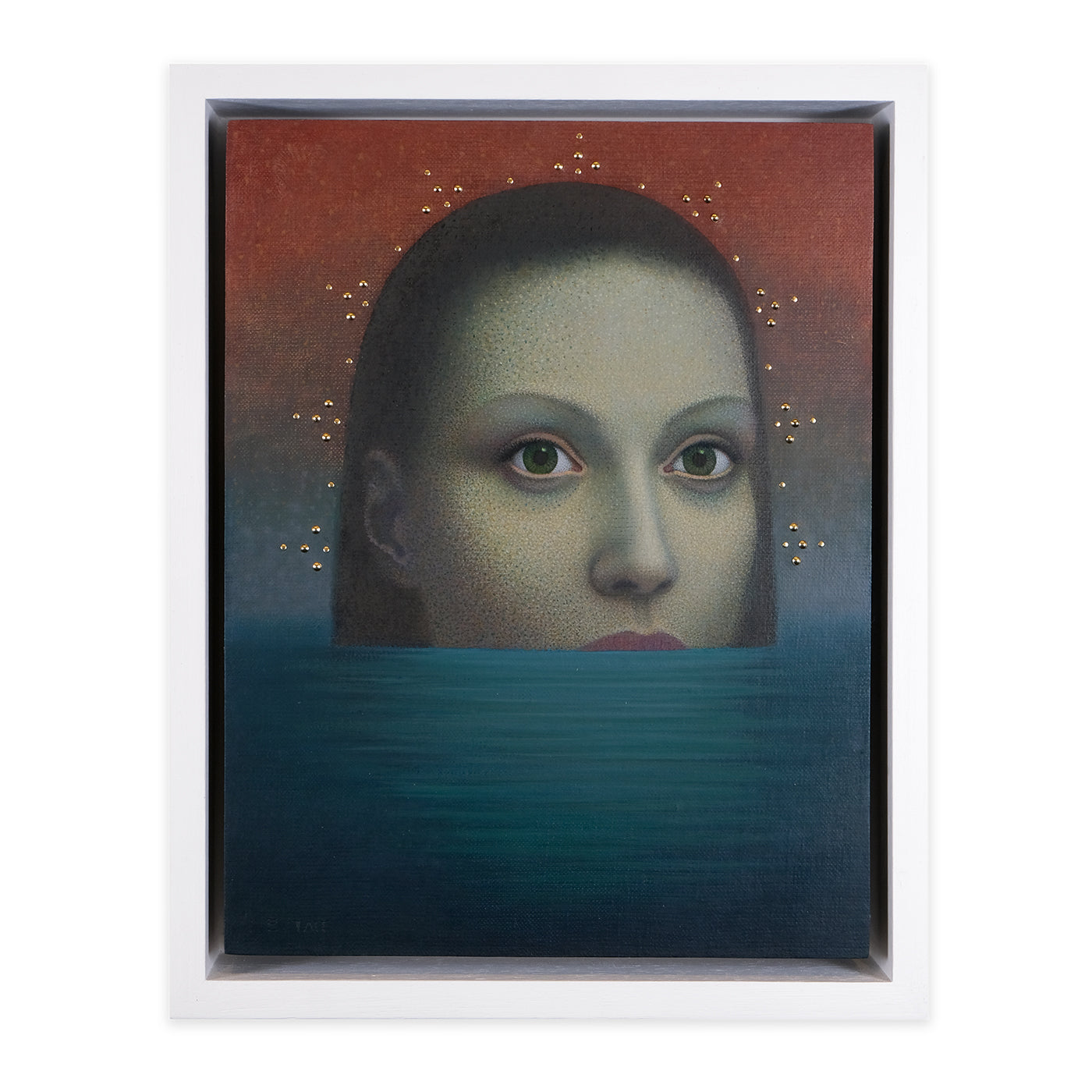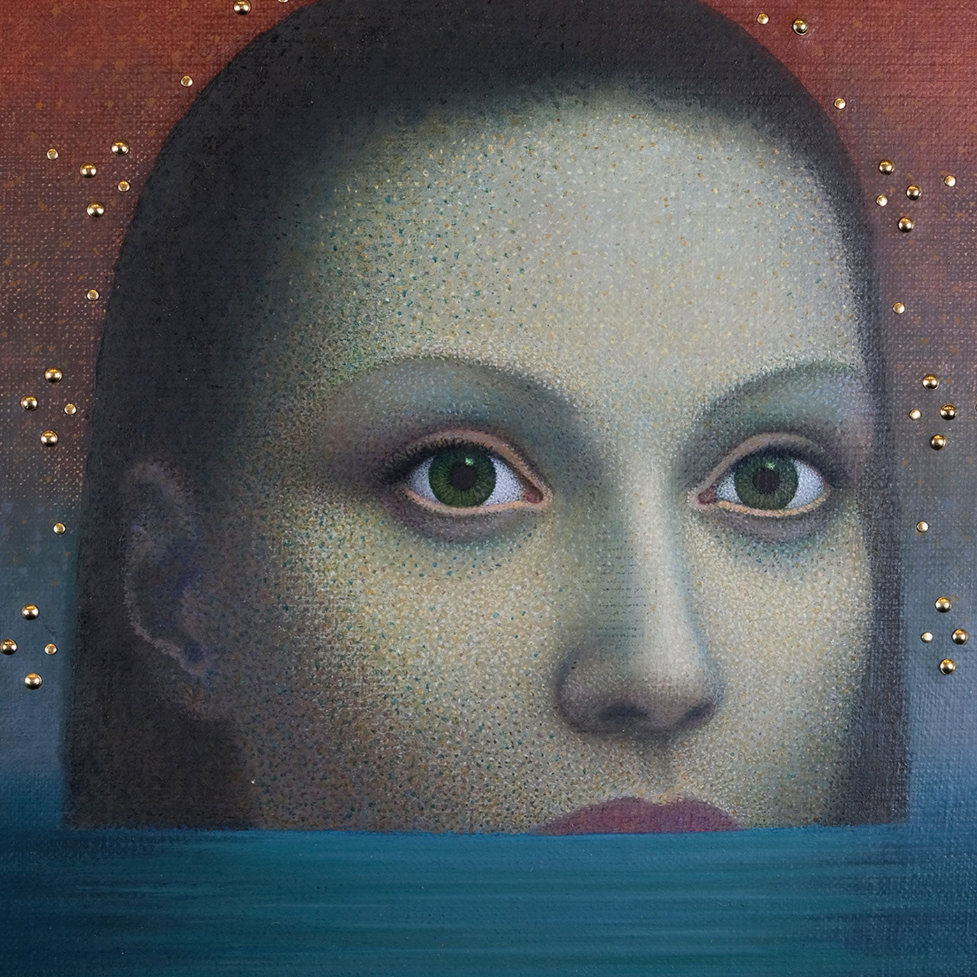From an early age he's been captivated by the mythology and folklore of the Highlands and Islands and many of these tales relate to anthropomorphic deities within the environment. As a result, much of his work combines portraiture with pattern and symbols such as mountains, clouds and birds, and alludes to themes of ideology and transcendence.