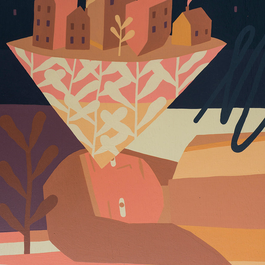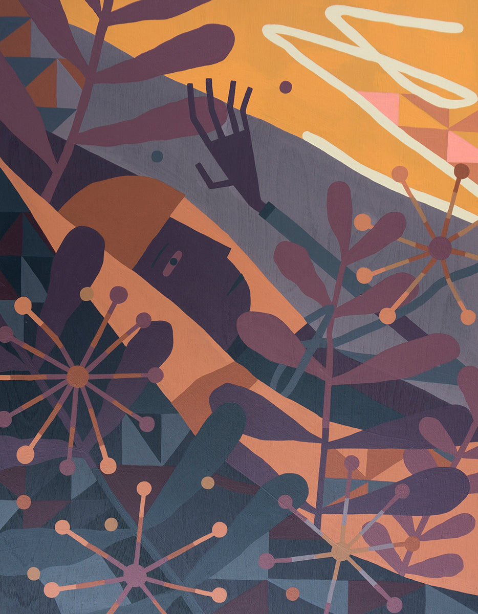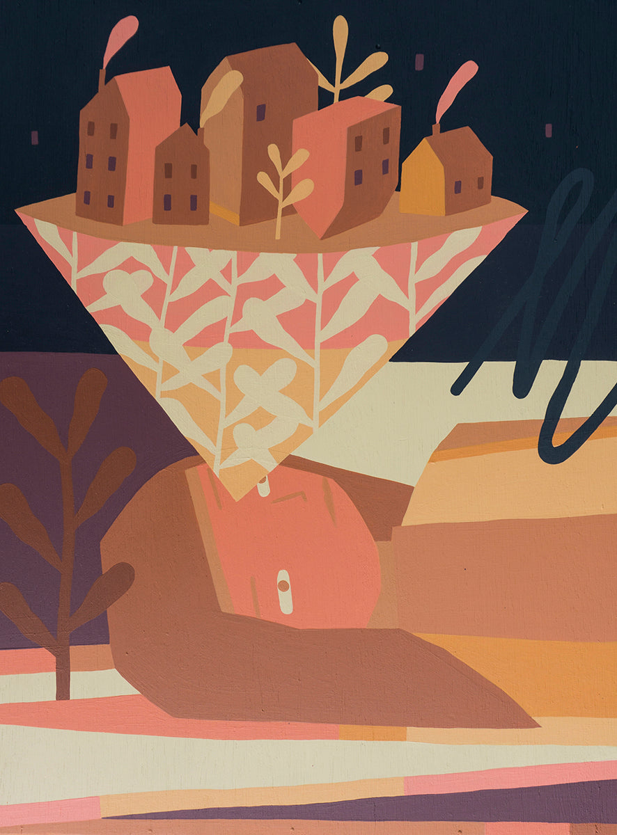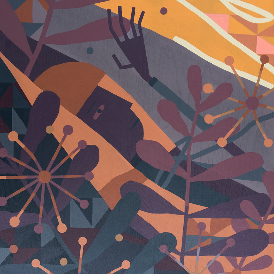 Kyle Hughes-Odgers presents a collection of work drawing on interactions between nature and the built environment, set in a world where the real and the dreamlike are indistinguishable. The narrative-based artworks evoke a sense of the lucid and the abstract. Created on wooden panels, this exploratory body of work is a departure from Kyle’s work with large-scale canvases over the past year.