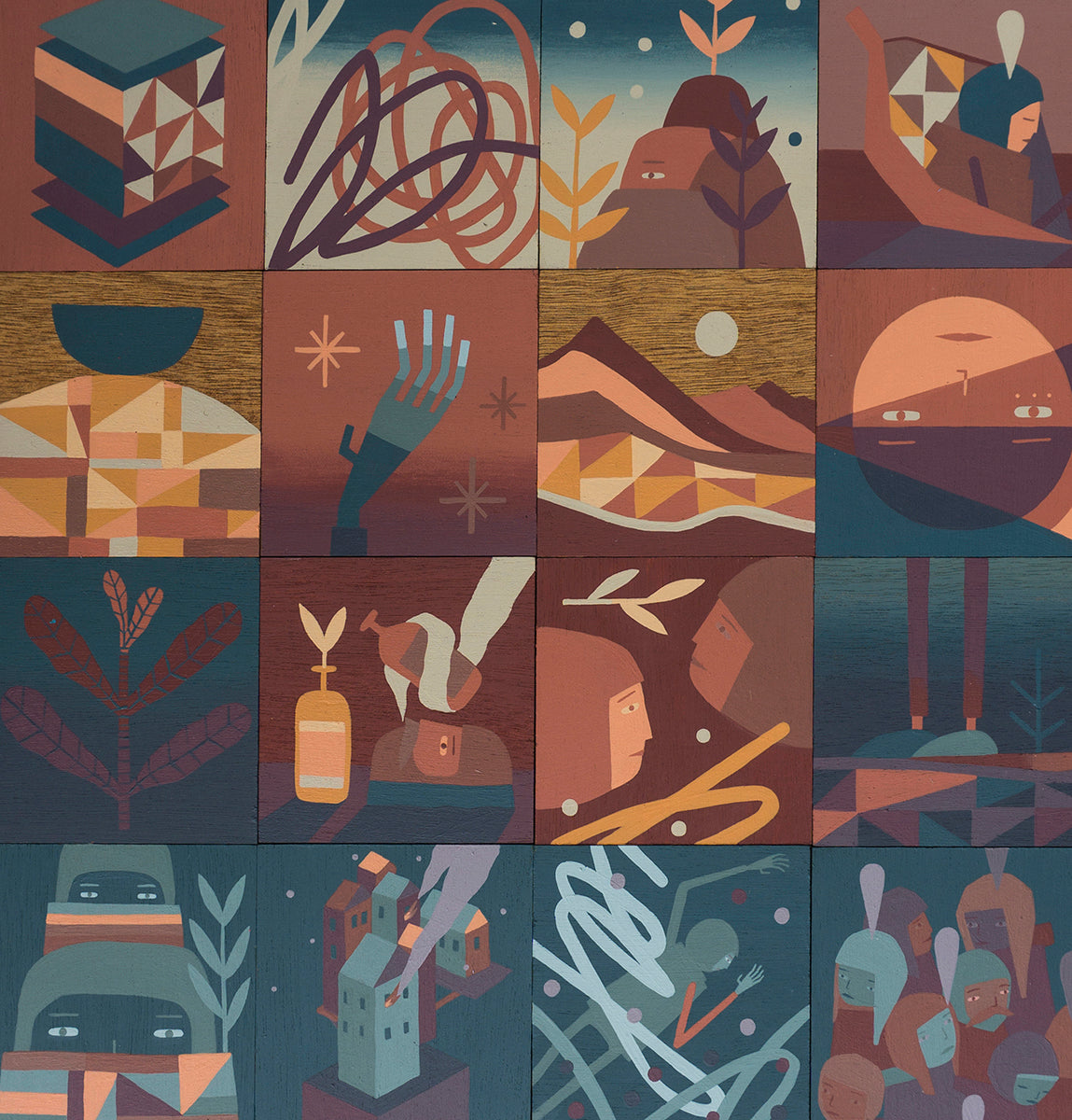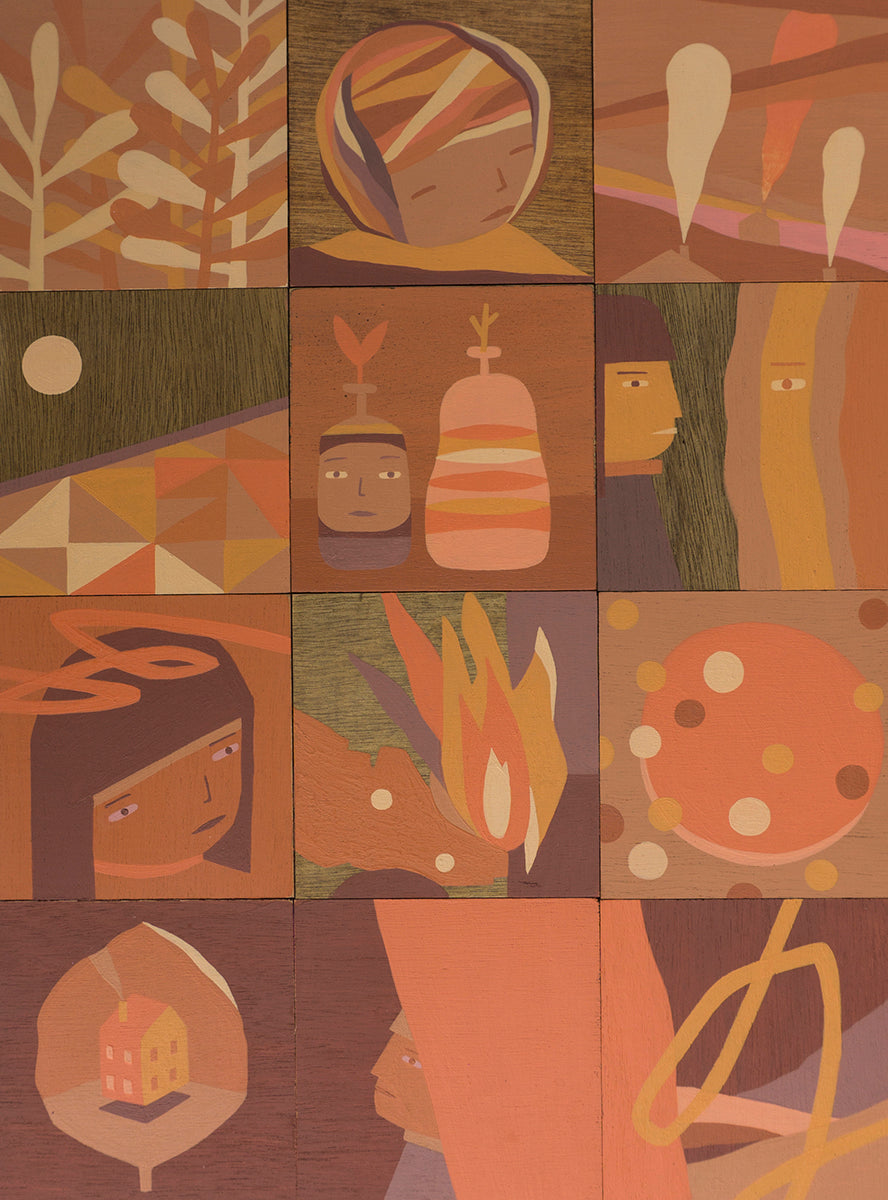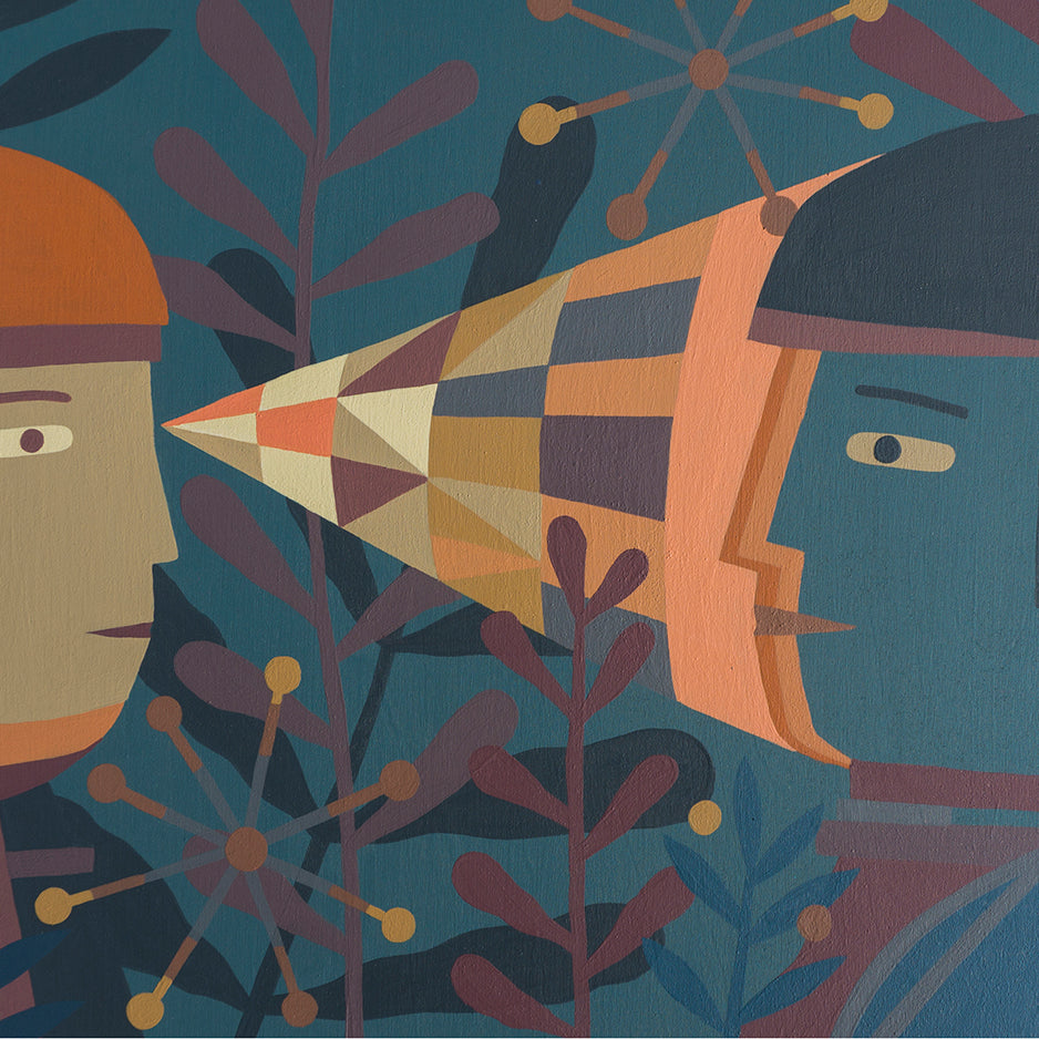 Kyle Hughes-Odgers presents a collection of work drawing on interactions between nature and the built environment, set in a world where the real and the dreamlike are indistinguishable. The narrative-based artworks evoke a sense of the lucid and the abstract. Created on wooden panels, this exploratory body of work is a departure from Kyle’s work with large-scale canvases over the past year.