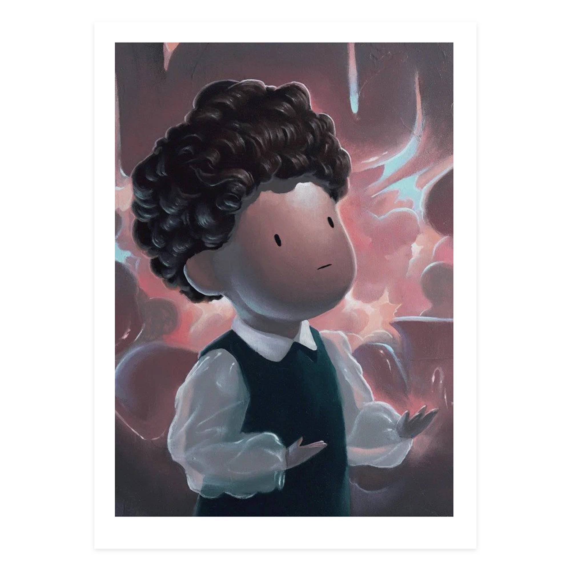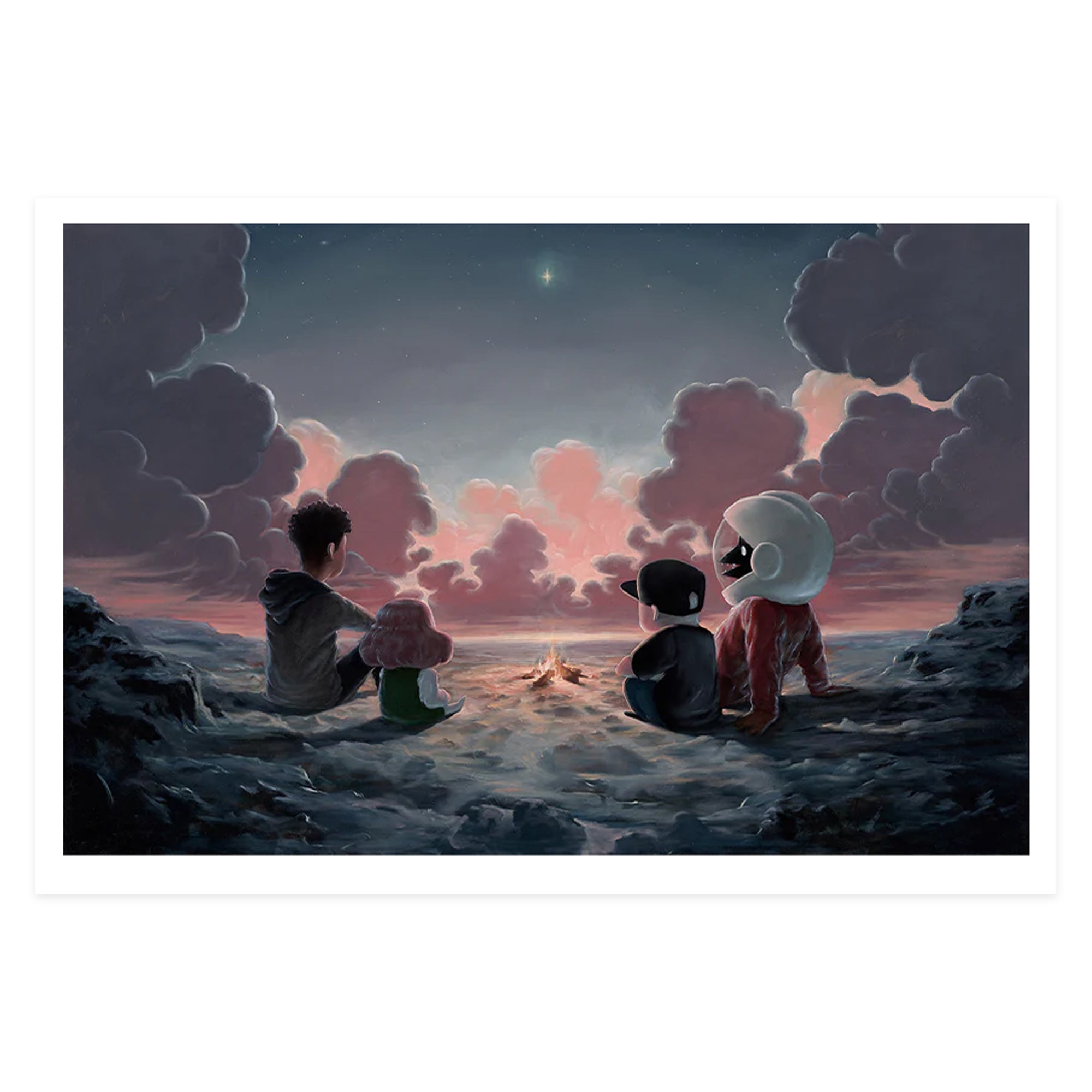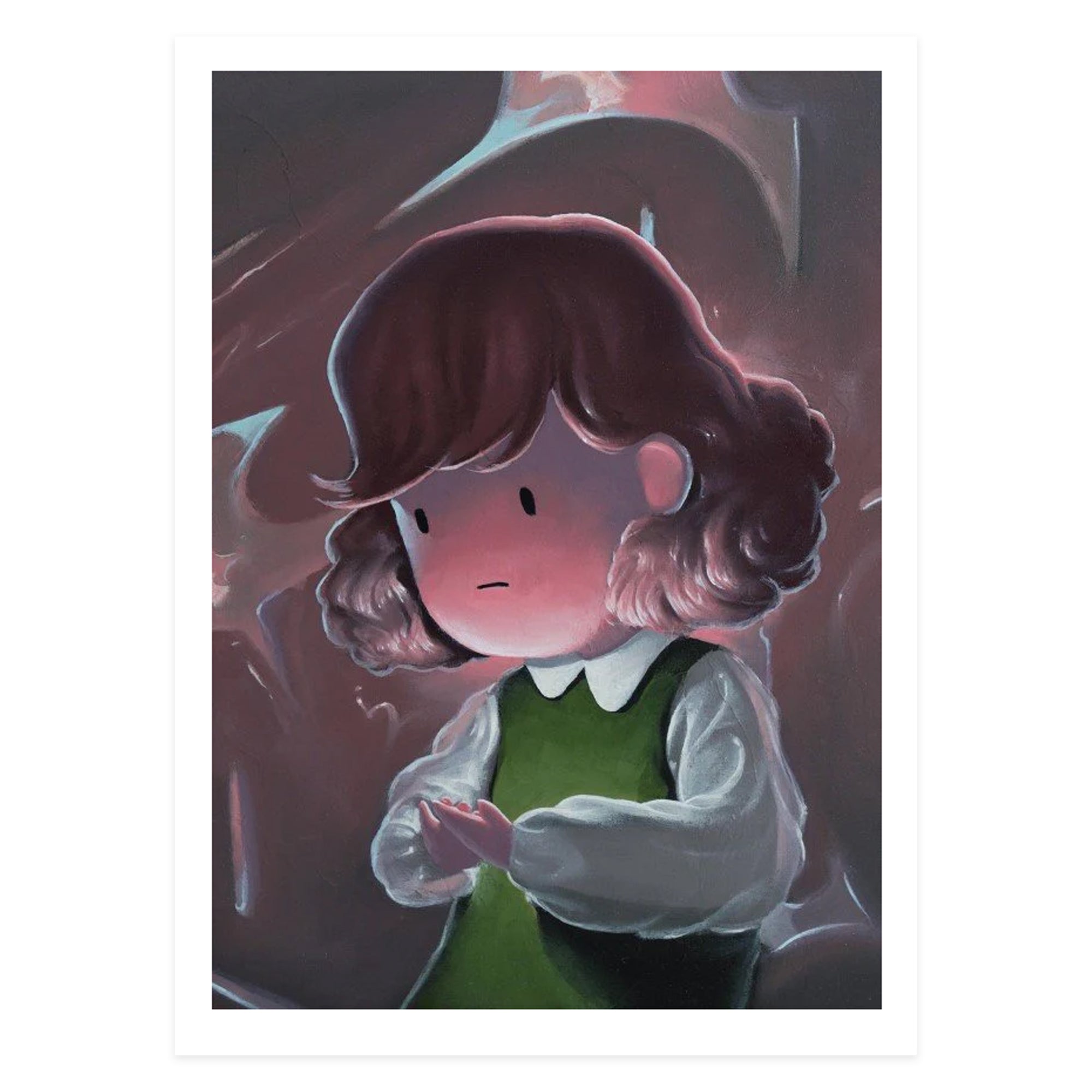 Giorgiko’s work combines the simple sweetness of Trisha’s characters with Darren’s street influence, classical painting techniques, and playfully anachronistic elements, allowing their characters to transcend space and time. Through the harmonious blending of classical and contemporary in their paintings and drawings, Giorgiko explores recurring themes of feeling displaced, discovering empathy, holding onto hope, and retaining innocence. Characters in urban clothing seem stranded in the wilderness, while characters with historical attire loiter in apocalyptic urban landscapes. Long-forgotten space dogs dream of home, and so do pink-haired girls. Through moody landscapes and childlike characters, Giorgiko hopes to create a universe paralleling our own that opens a window into seeing ourselves and others sincerely and truthfully in all of our flaws and beauty.