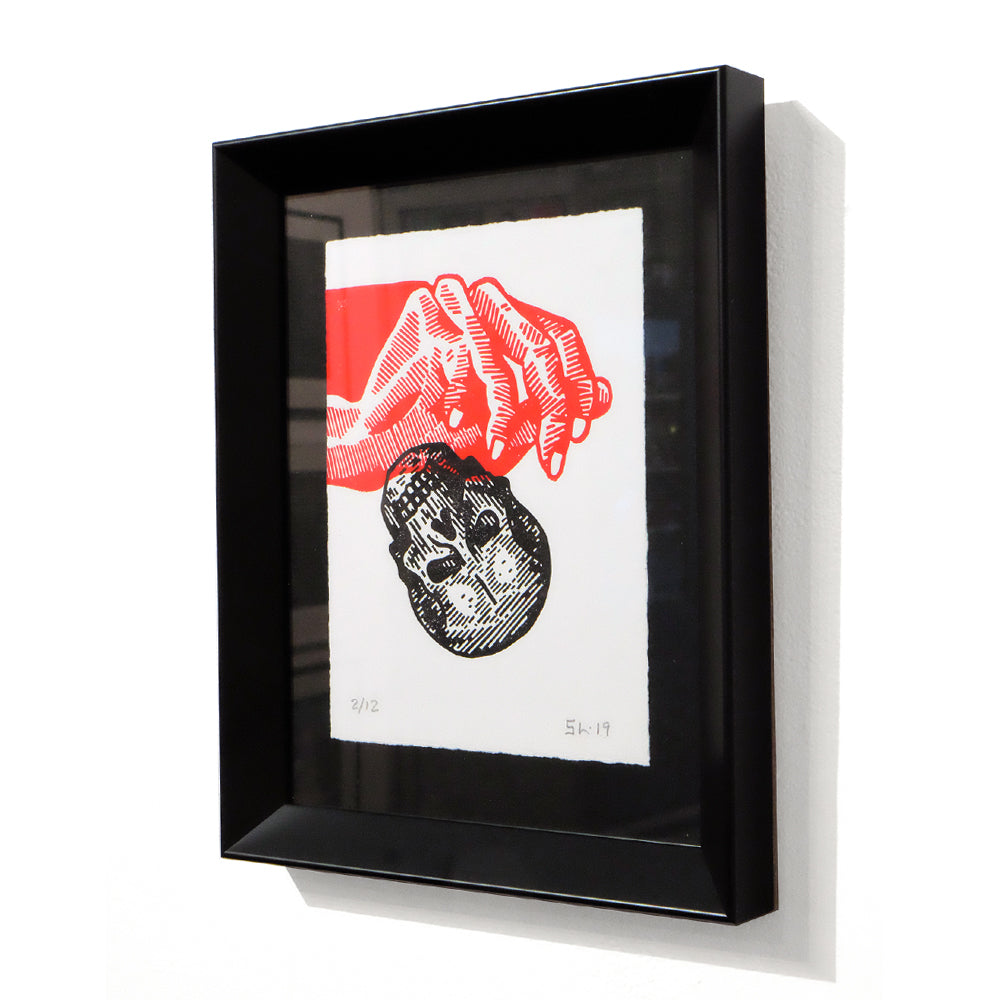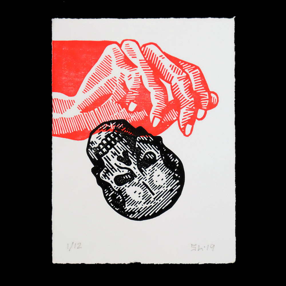 Medium: Woodcut relief print. Hand printed on 250gsm Somerset Satin white paper.