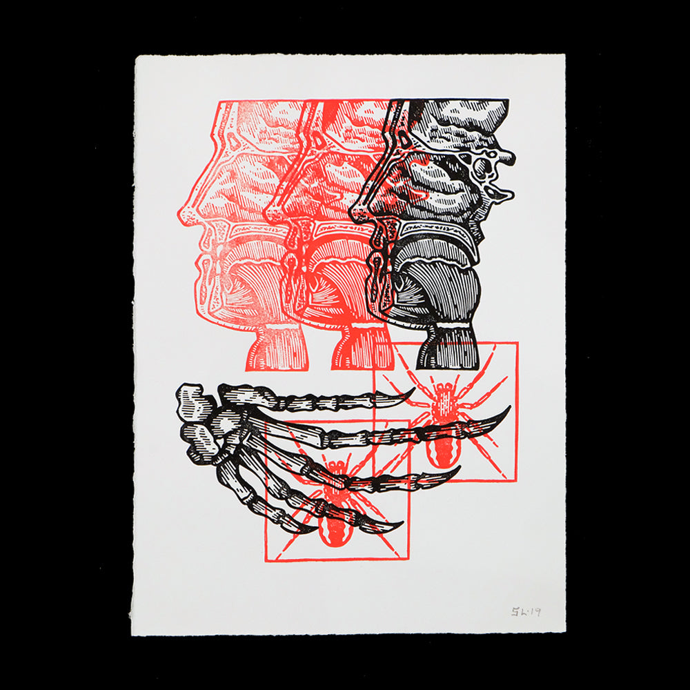 Medium: One off original artwork / Woodcut relief print. Hand printed on 250gsm Somerset Satin white paper.