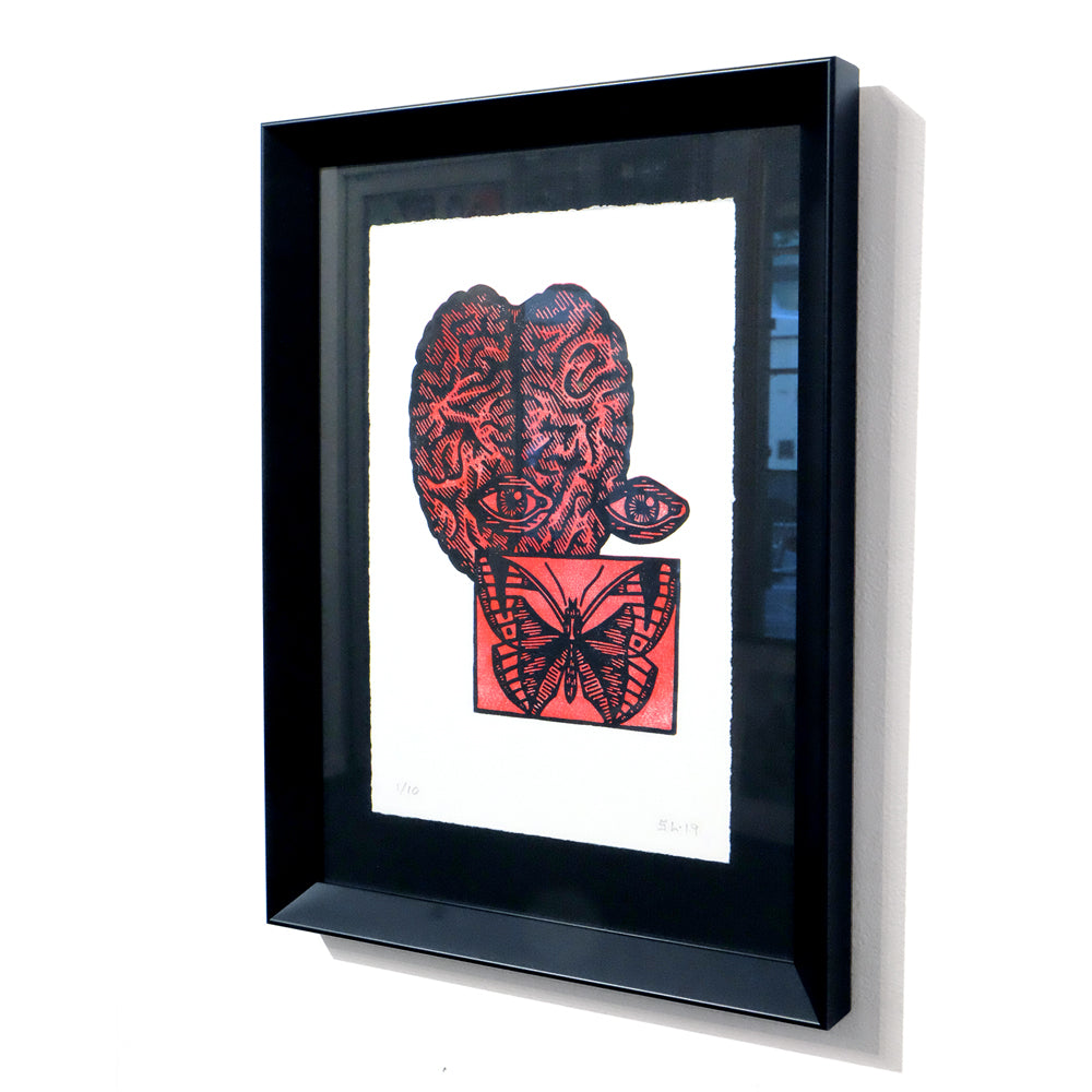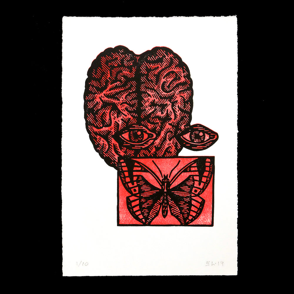 Medium: Woodcut relief print. Hand printed on 250gsm Somerset Satin white paper.