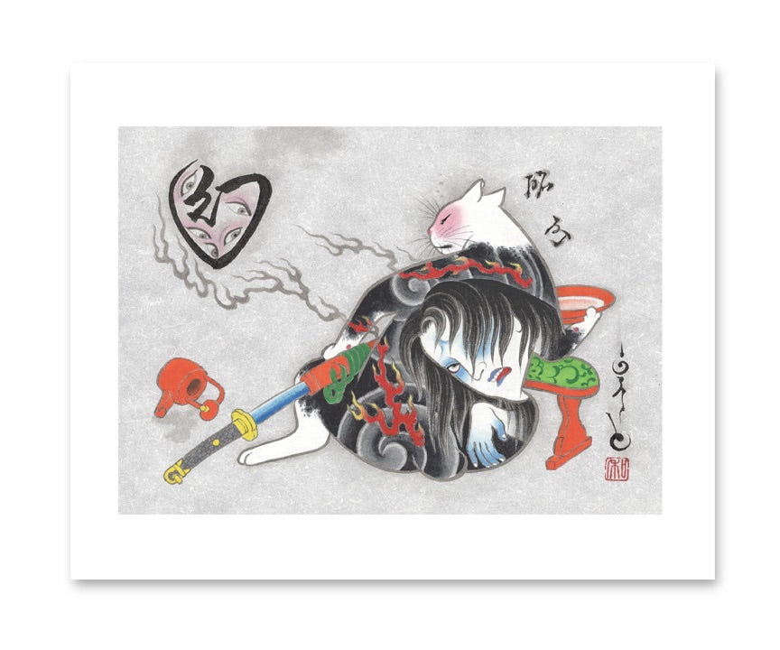 Cats are one of Horitomo's two great passions in life - tattooing included. His Monmon (the Japanese term for tattooing) cats are a unique concept born out of his love for both. The artist has been tattooing for over 20 years, and is well versed in Japanese tradition including tabor (Japanese hand tattooing).