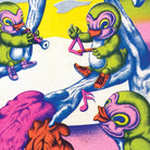 This Risoprint has hidden augmented reality features! Download the free app ARTIVIVE onto your phone. Open the Artivive app and point your camera phone at the artworks to view the animated augmented reality.