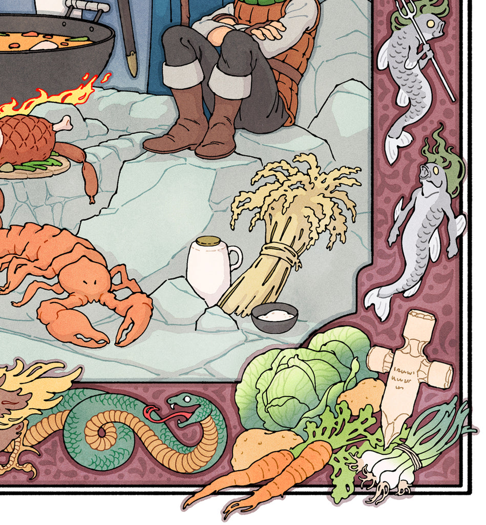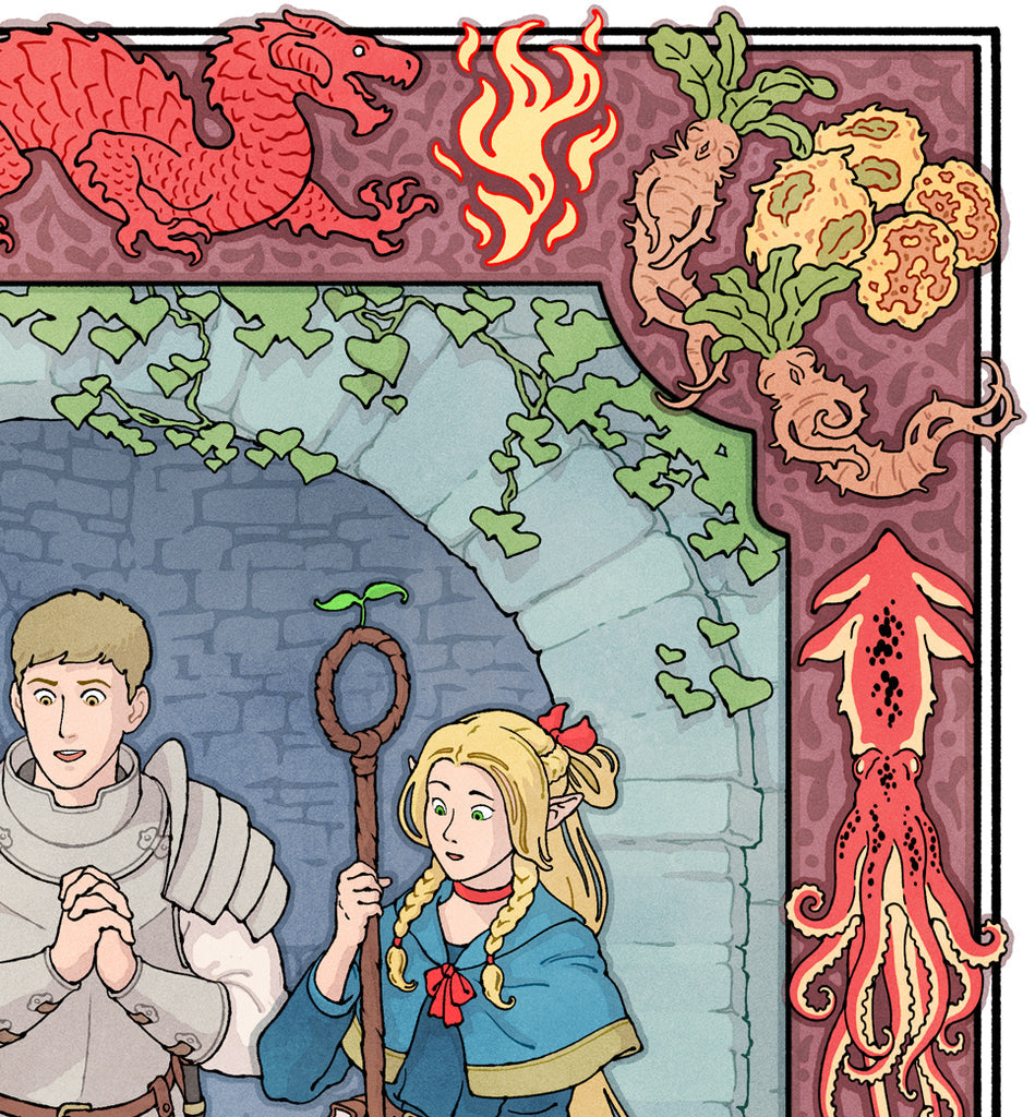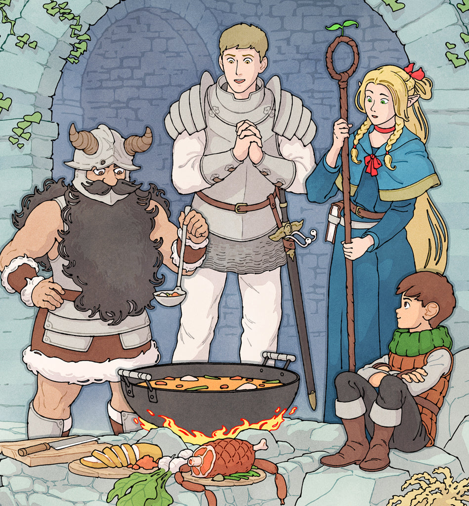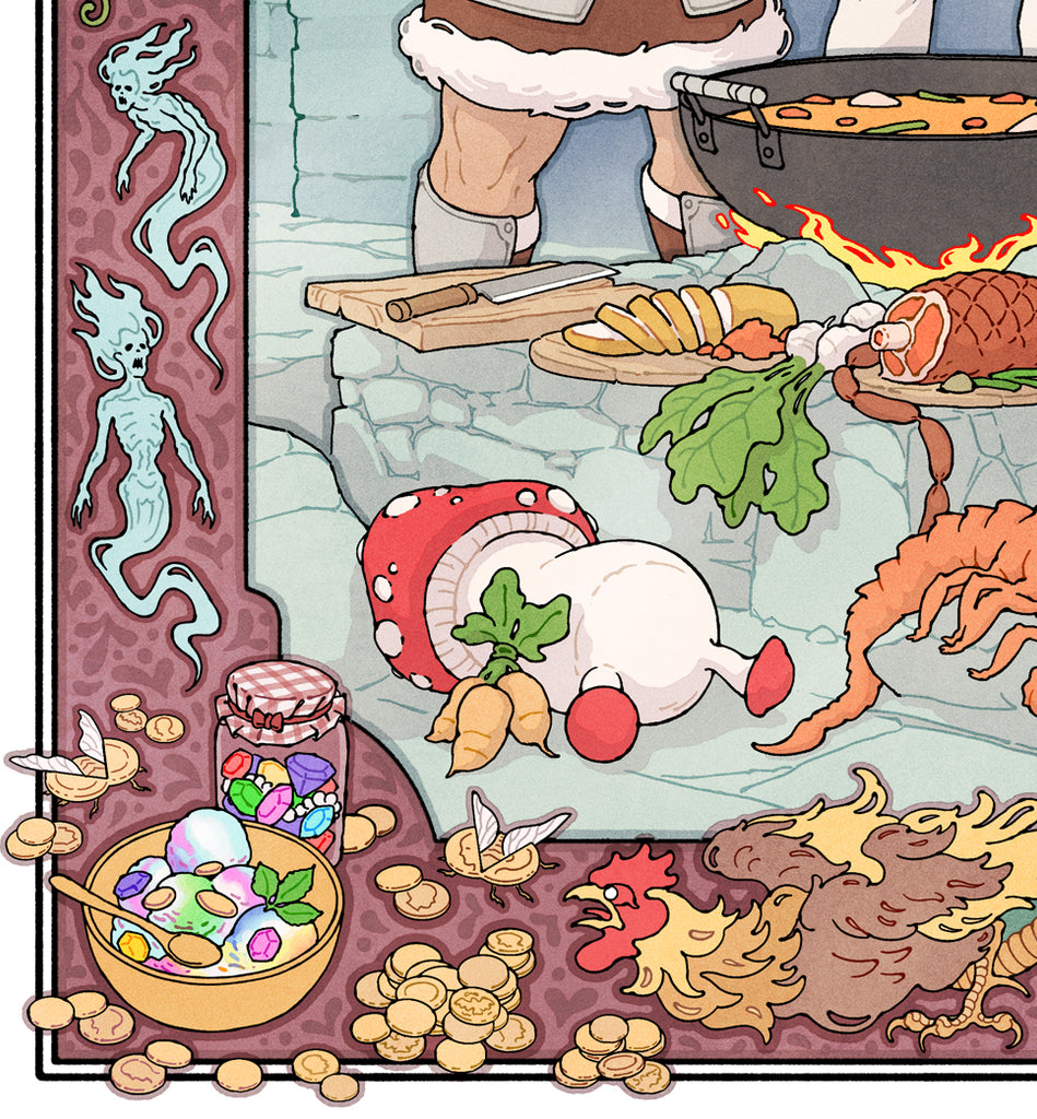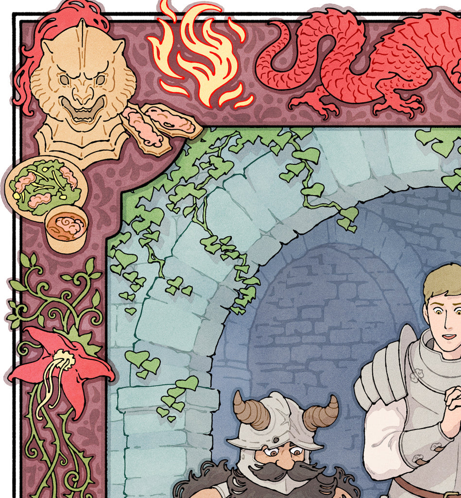 No matter how perilous the road, our journey is made brighter with a good meal and laughter among friends. I hope this print reminds you to enjoy the good times. Happy memories carry strong magic against life's darkest depths.