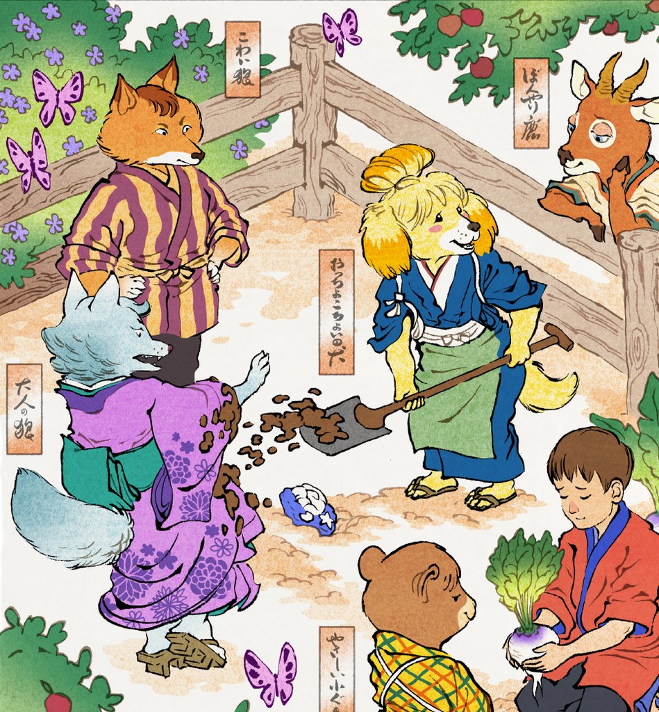 This design is pretty crowded with characters, but I wanted to include as many of my favorites as possible. The little captions read: