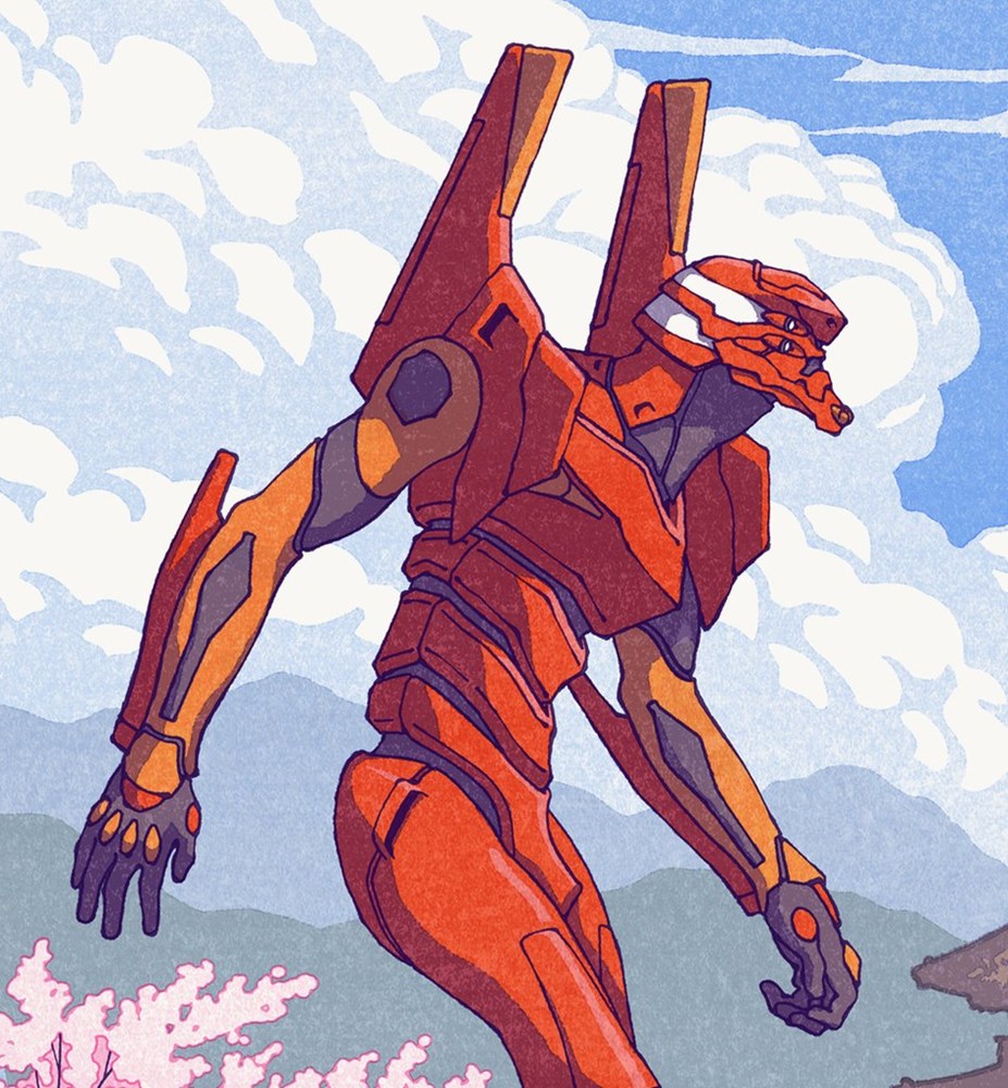 Because of this, I did not adapt the design of the robot's armor. Instead I wanted to focus on the anachronism between a futuristic mobile suit walking though a 19th century pastoral scene. The contrast is quite stunning I think!