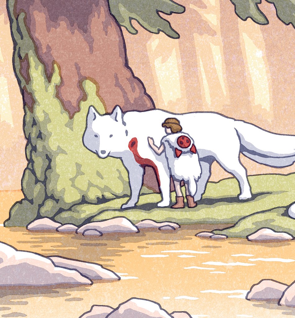 'I love the background paintings in this film - I could stare at them for days! And even though it's not a perfect fit, I wanted to approach this magical world with my own traditional block print aesthetic. To capture as much detail as possible, I decided to work in the modern Shin-hanga style, which is known for its realism and complex color schemes. I think the final design came out pretty well!