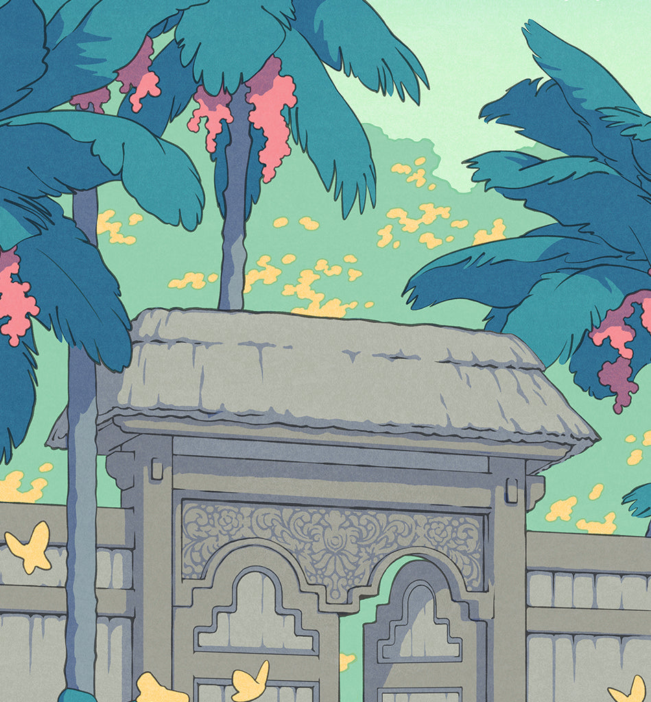 While most of my prints tend to be fan art homages, I also like to explore original themes from time to time. I created two new prints, focusing on the friendship of a girl and her dragon companion in a world inspired by Southeast Asia and the Pacific Islands. While designing the dragon I referenced tropical Asian birds like peacocks and jungle fowl, and the final design is pretty adorable!