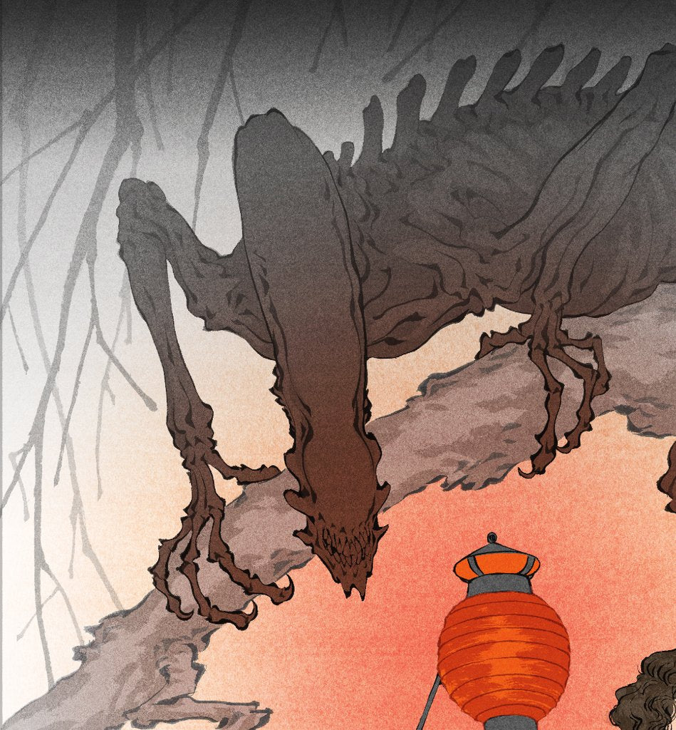 Japan has a rich history of depicting the horrific and the macabre. Some of my favorite pre-modern gothic artists include Hokusai, Kuniyoshi, Yoshitoshi and Kyosai. Because this rich history of frightening imagery already exists in abundance, it was very easy for me to adapt modern sci-fi horror into the Ukiyo-e style. I just had to follow in the footsteps of my art heroes!