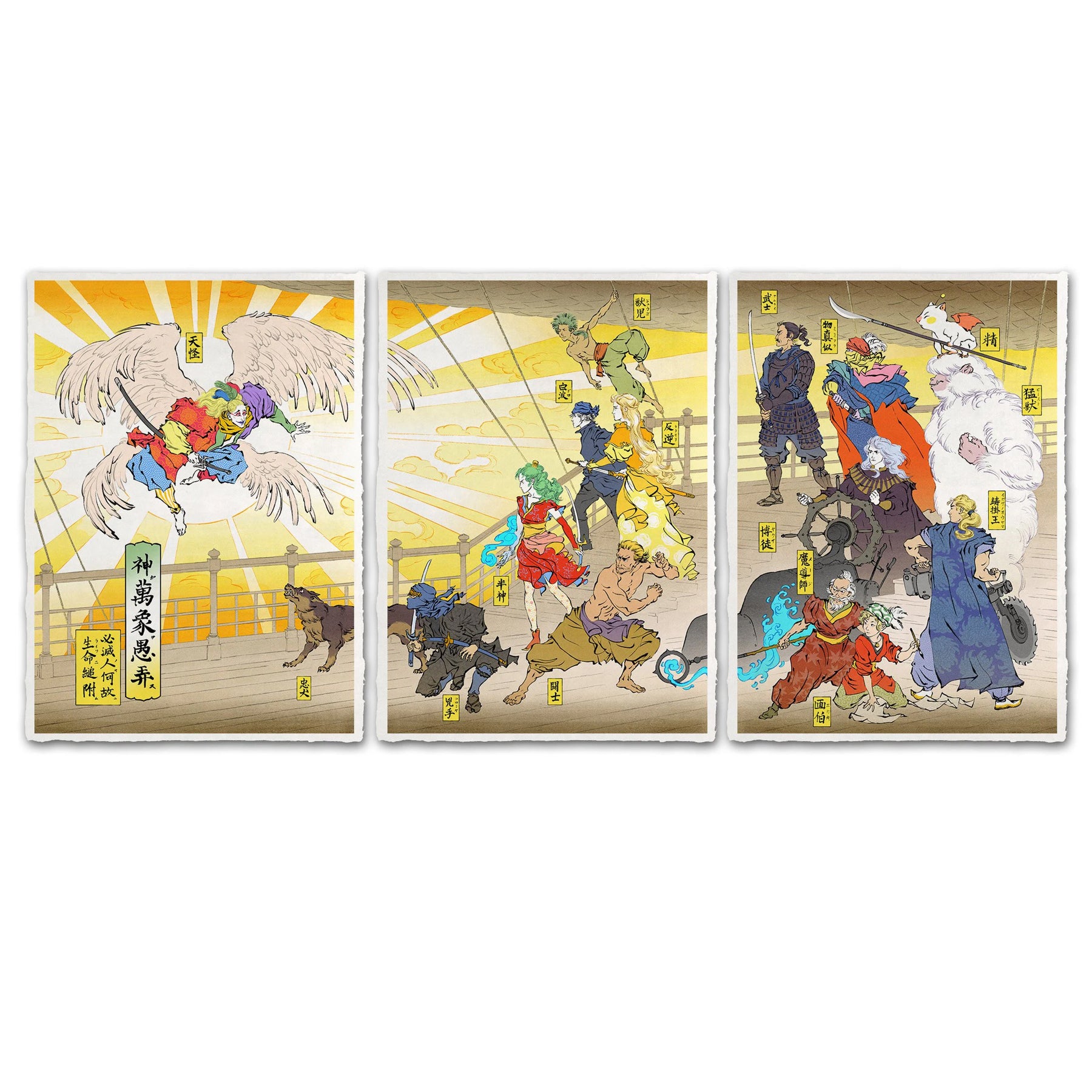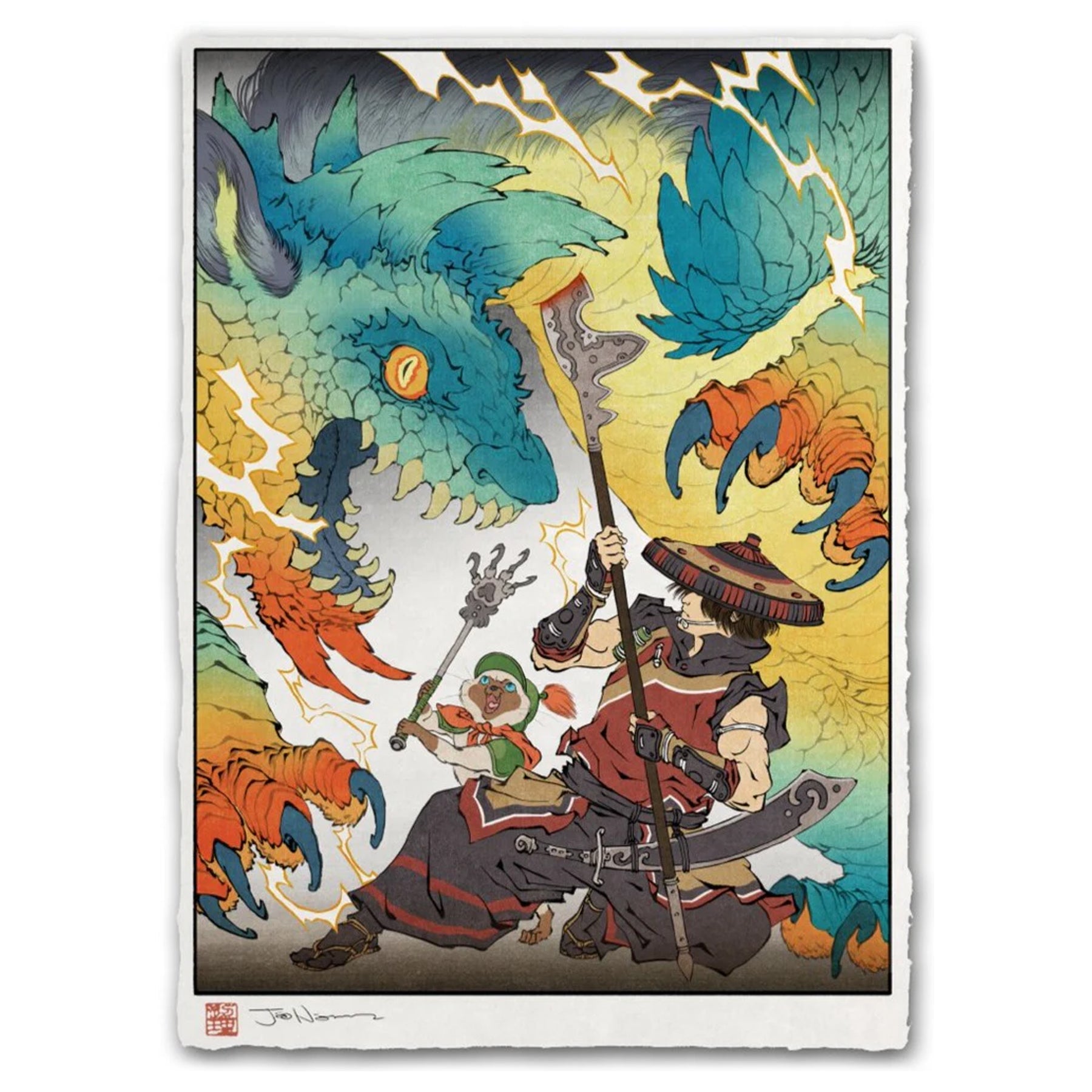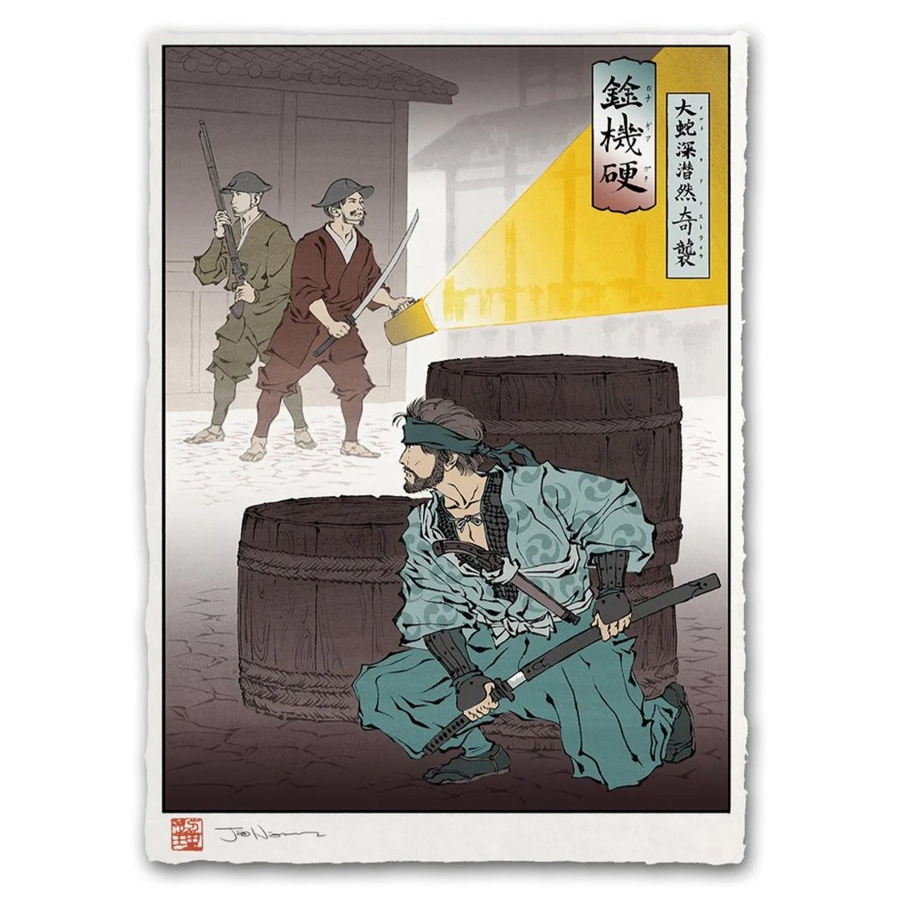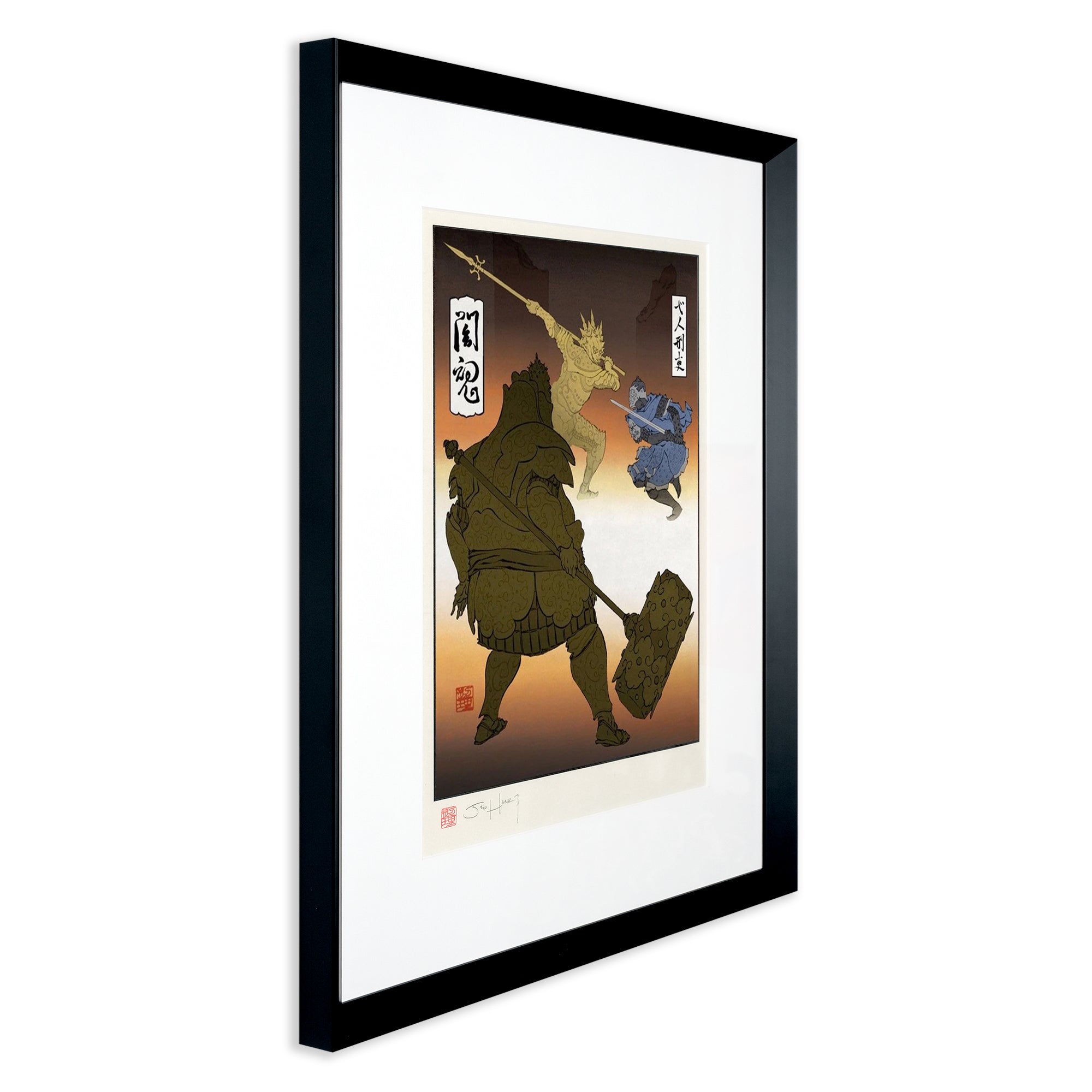 Ukiyo culture was once a thriving scene for Japan’s woodblock printmakers, whose works depicted monsters, villains, and heroes – and themes ranging from satire, romance and drama. This creative style and tradition was passed down through the centuries, to now be readily identifiable in Japan’s video game industry. The Ukiyo-e Heroes features Jed Henry’s favourite game characters and stories styled in the classic Ukiyo way, to celebrate this well-loved industry.