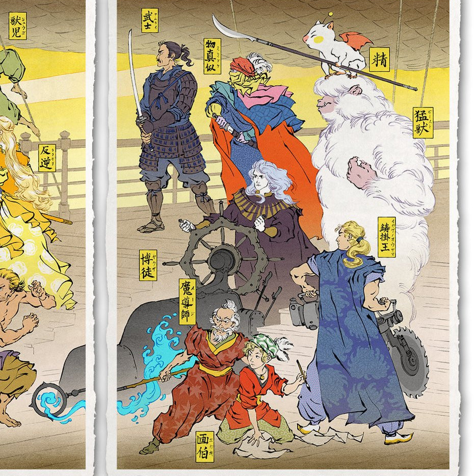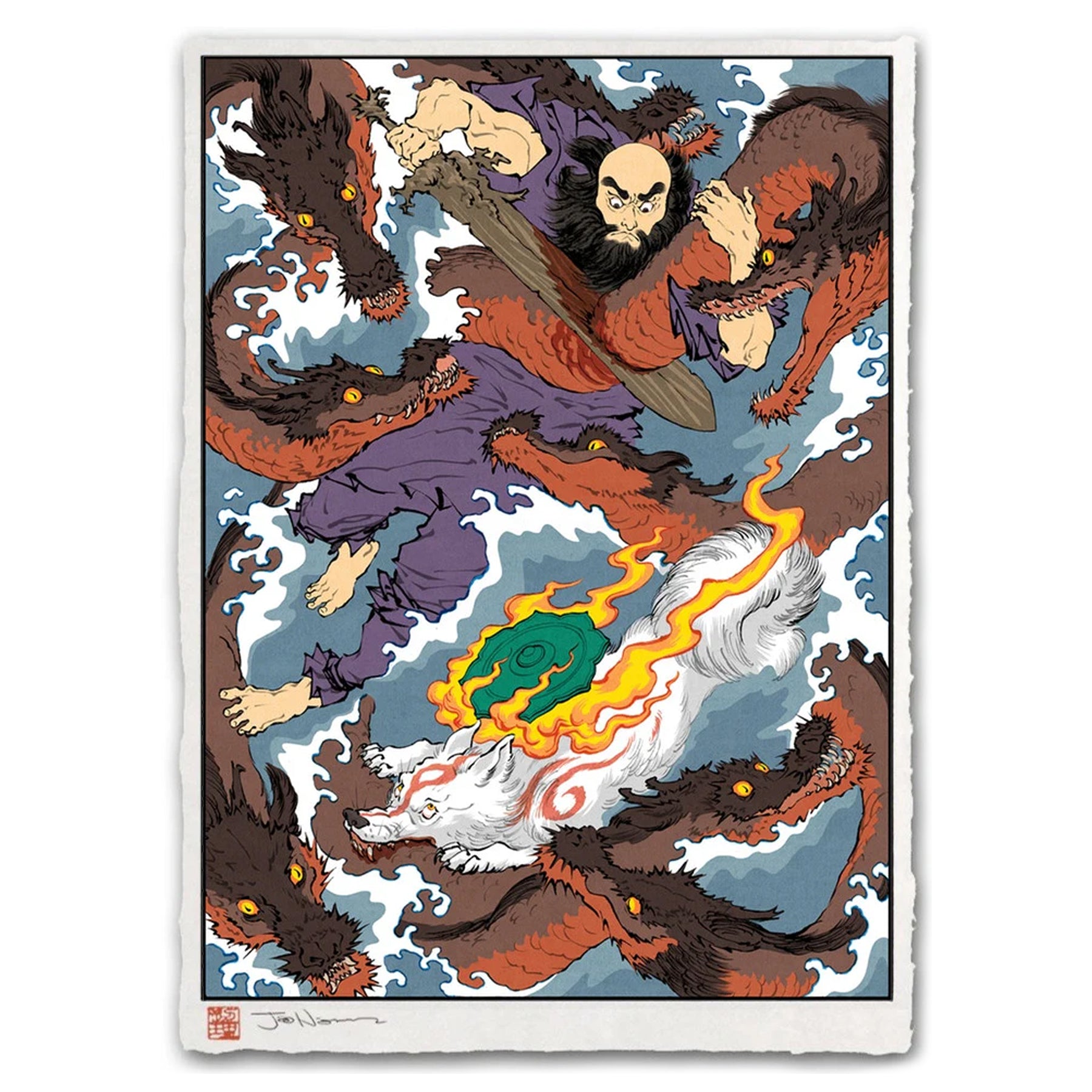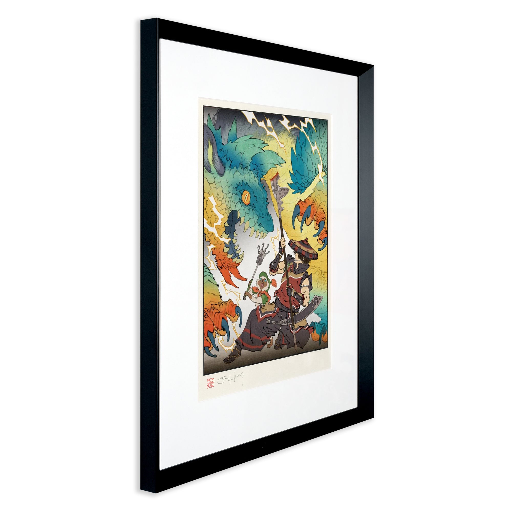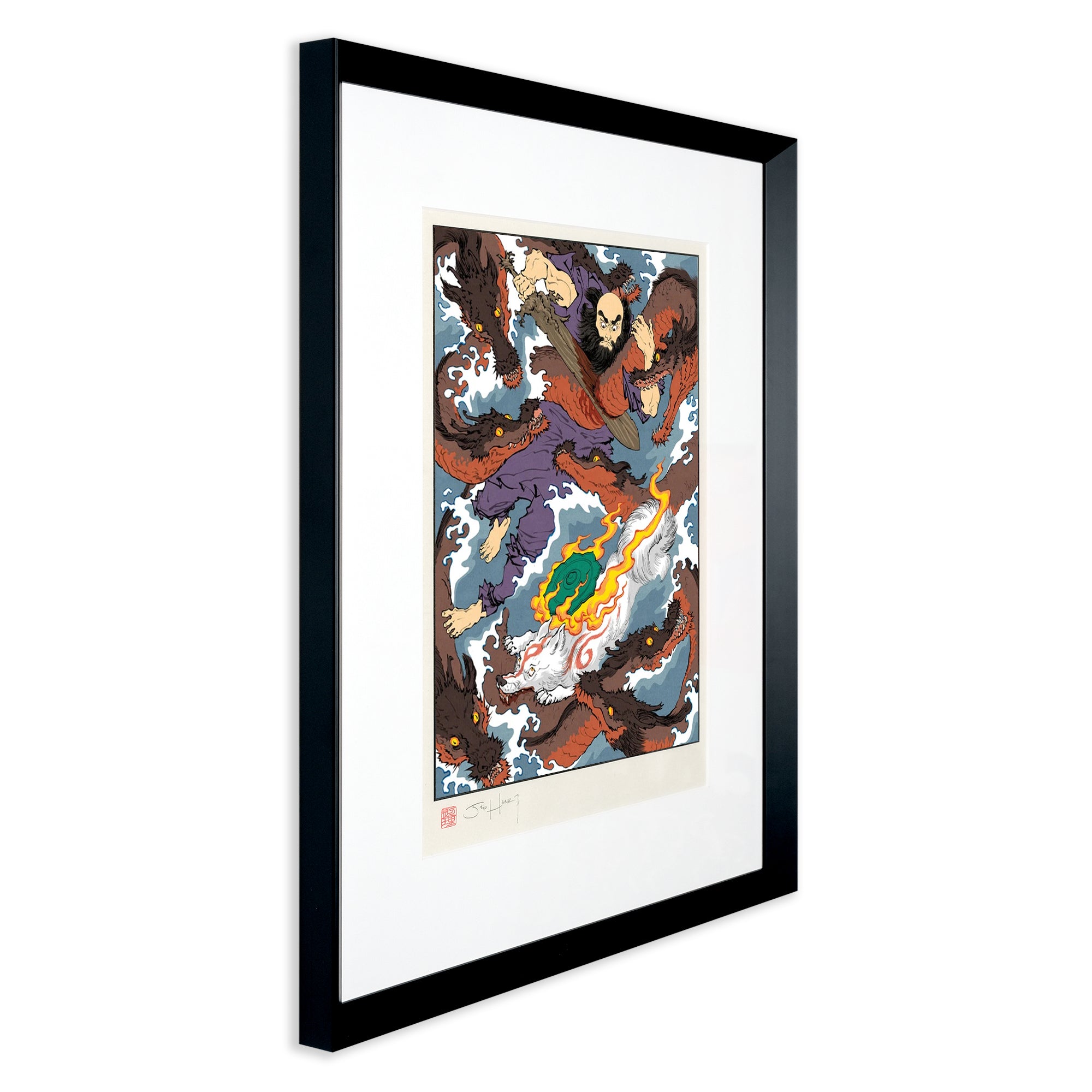 Ukiyo culture was once a thriving scene for Japan’s woodblock printmakers, whose works depicted monsters, villains, and heroes – and themes ranging from satire, romance and drama. This creative style and tradition was passed down through the centuries, to now be readily identifiable in Japan’s video game industry. The Ukiyo-e Heroes features Jed Henry’s favourite game characters and stories styled in the classic Ukiyo way, to celebrate this well-loved industry.