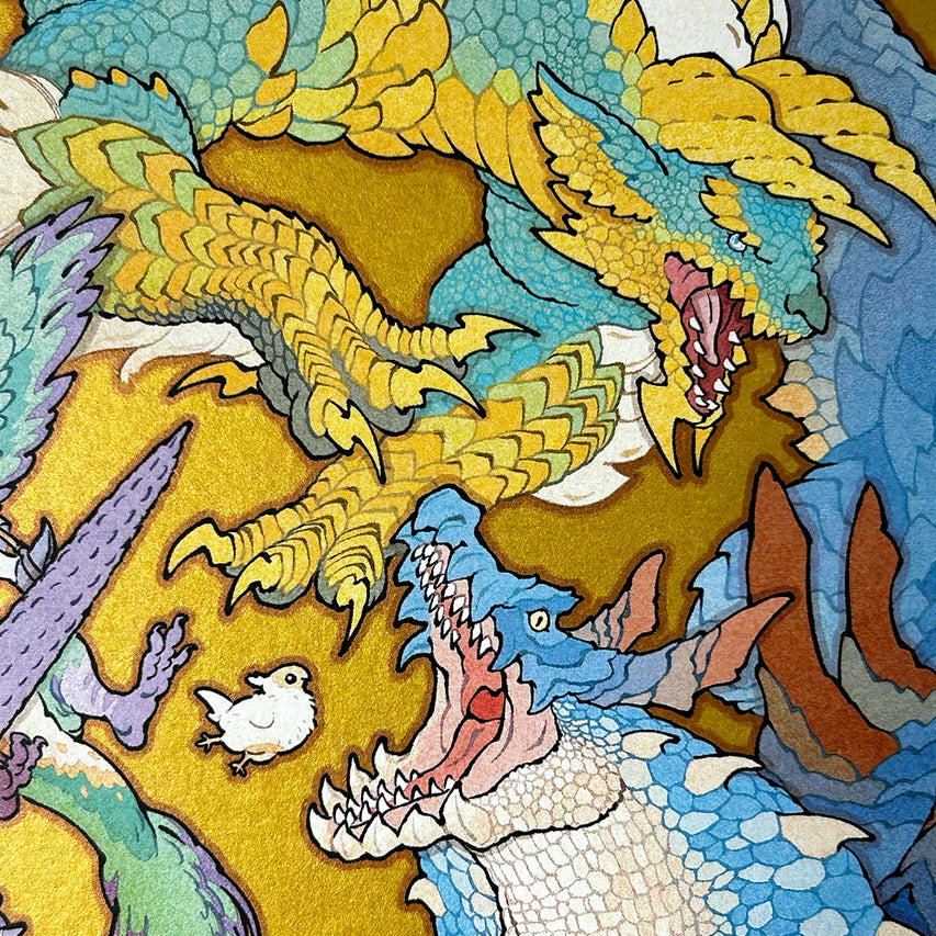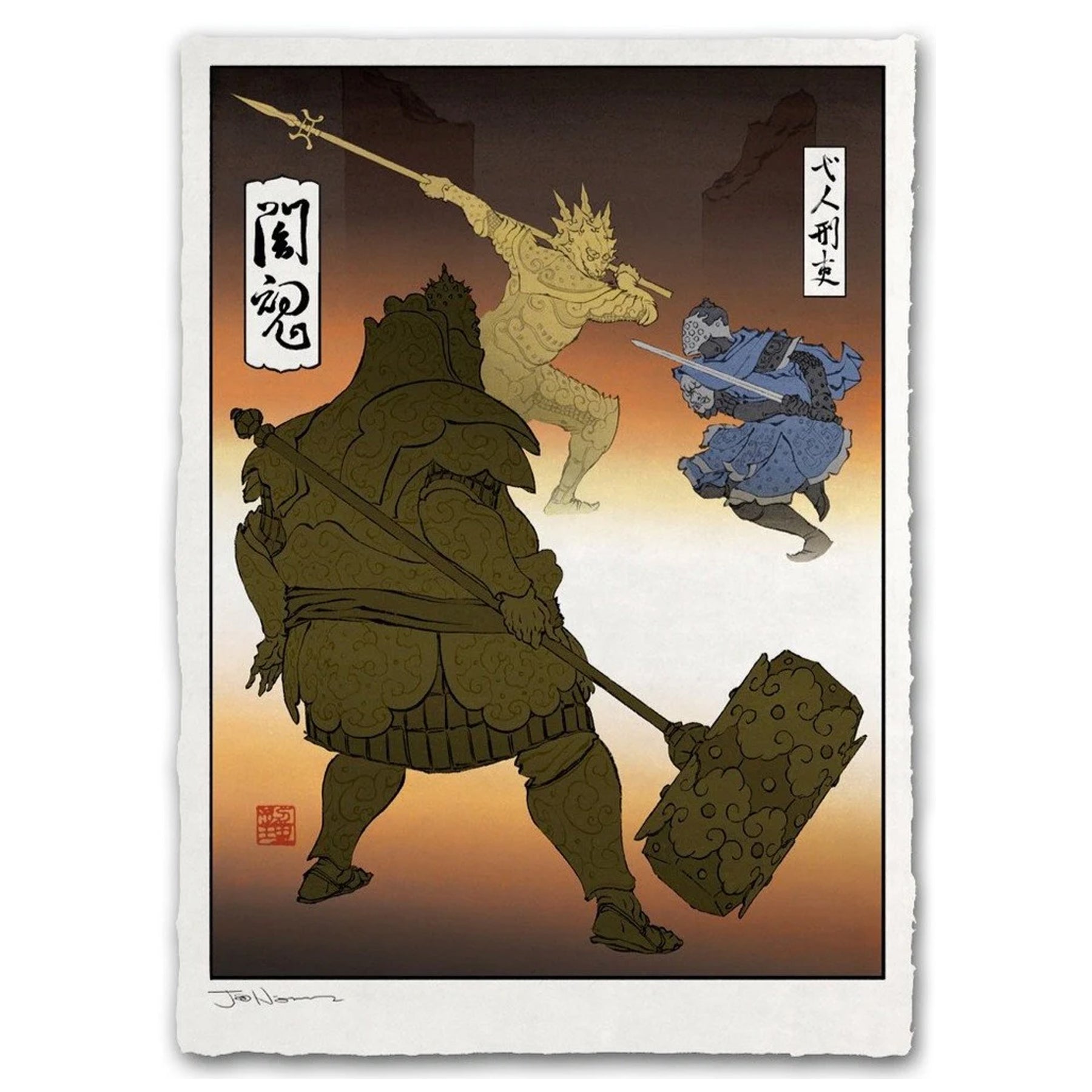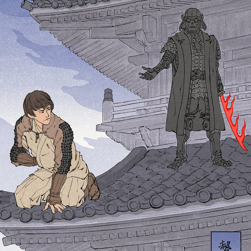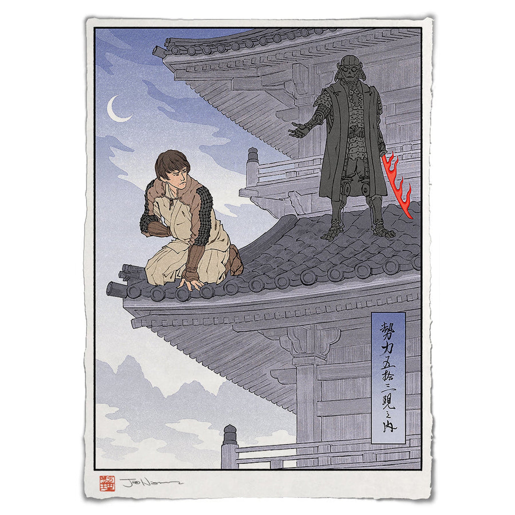 Ukiyo culture was once a thriving scene for Japan’s woodblock printmakers, whose works depicted monsters, villains, and heroes – and themes ranging from satire, romance and drama. This creative style and tradition was passed down through the centuries, to now be readily identifiable in Japan’s video game industry. The Ukiyo-e Heroes features Jed Henry’s favourite game characters and stories styled in the classic Ukiyo way, to celebrate this well-loved industry.