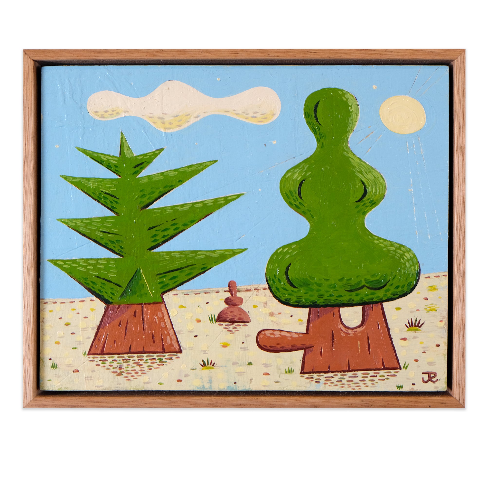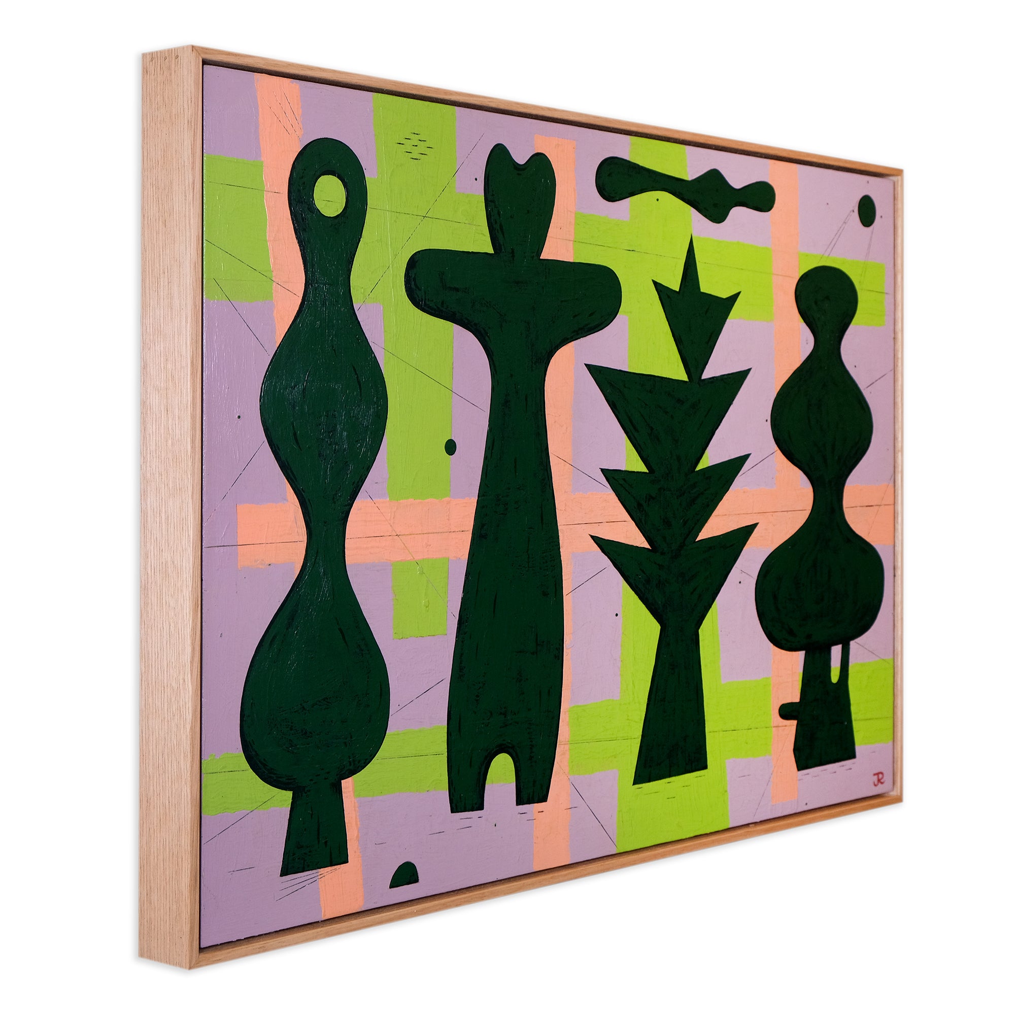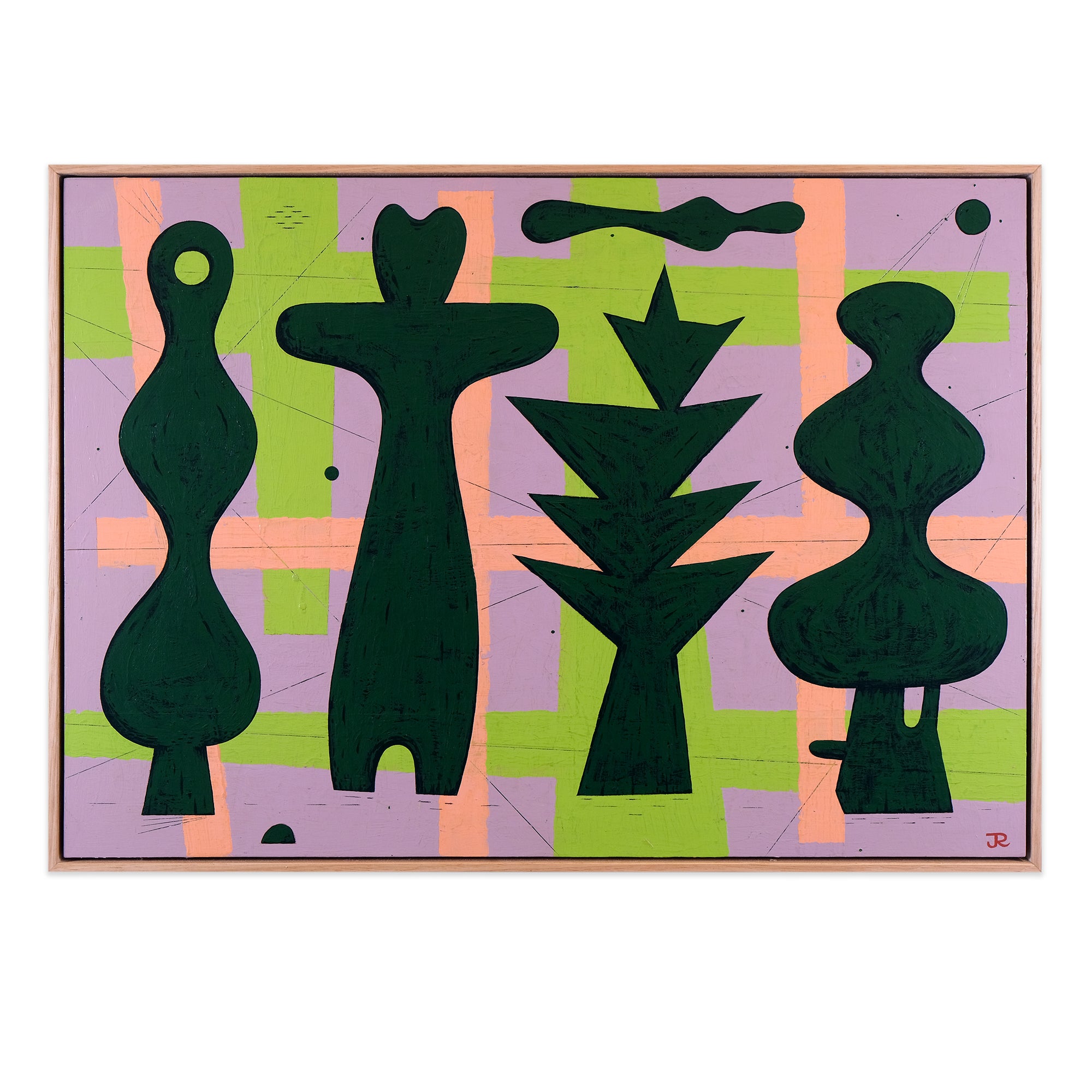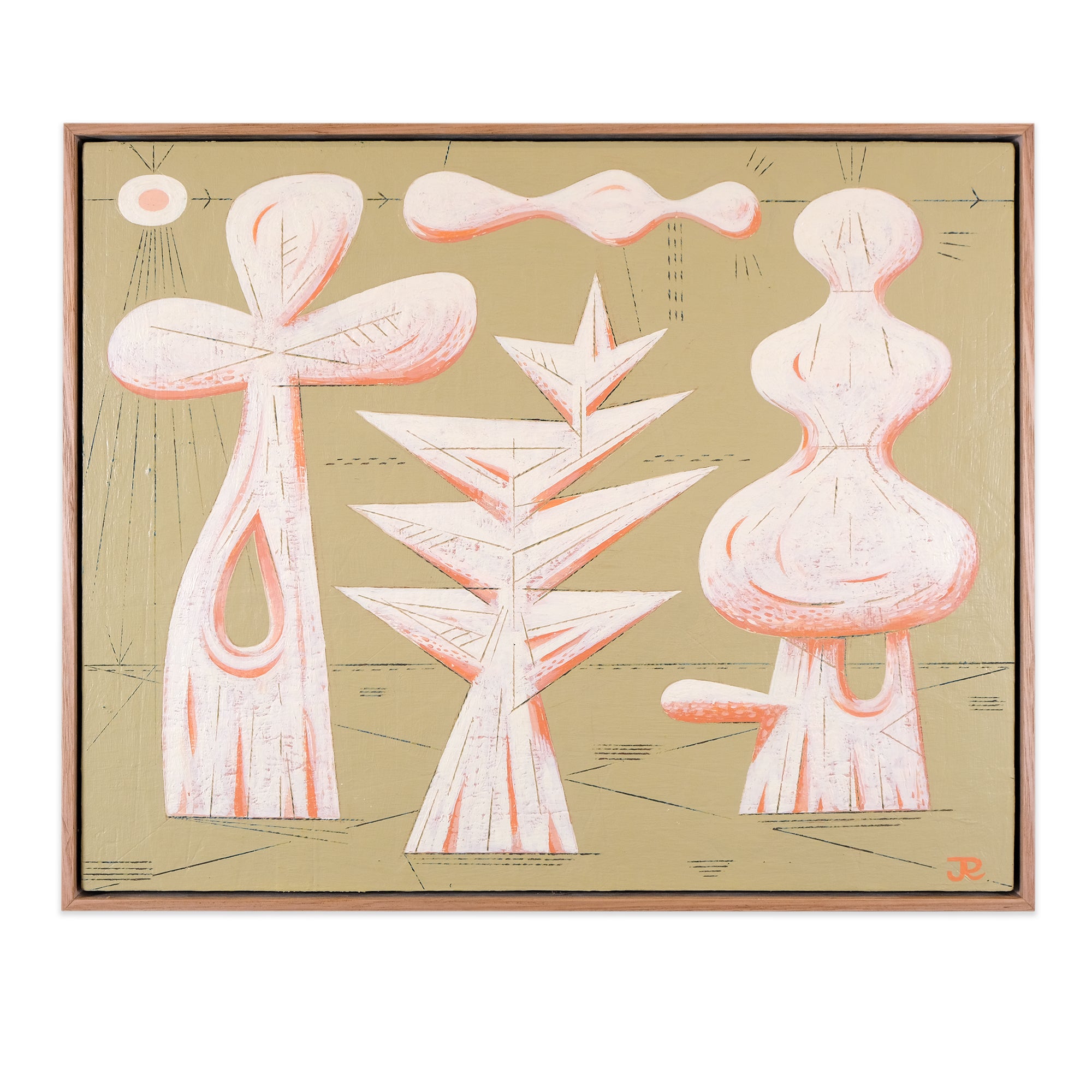 Drawing inspiration from Mid-century aesthetics and blurring the boundaries between fine and graphic art, Raglus defines his art as 'surf/folk/pop' and plays with shape and form to imbue his works with his signature bold style.