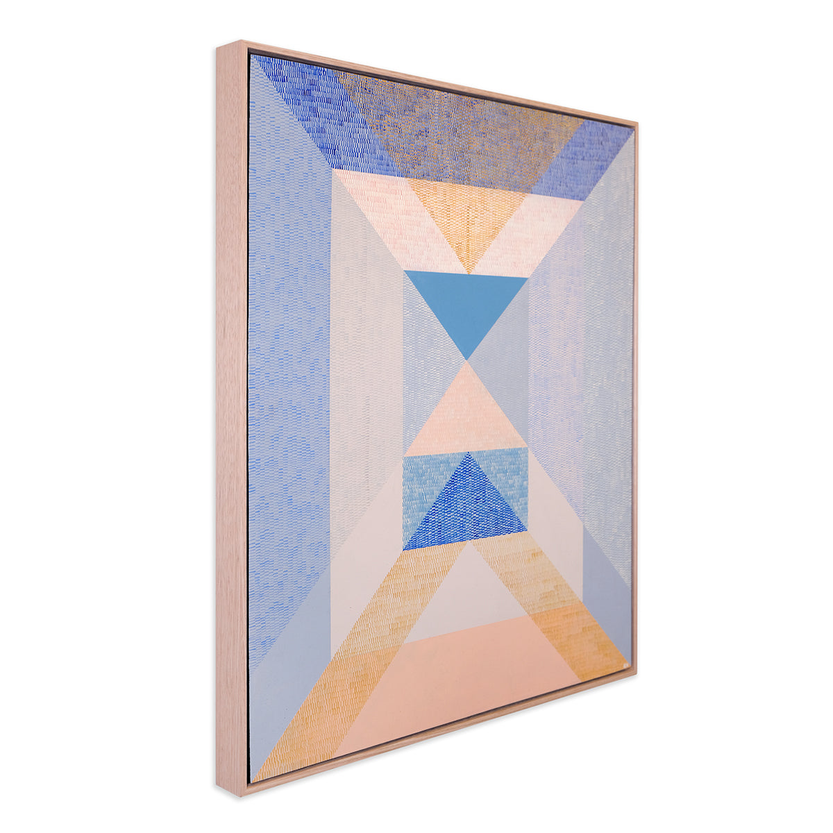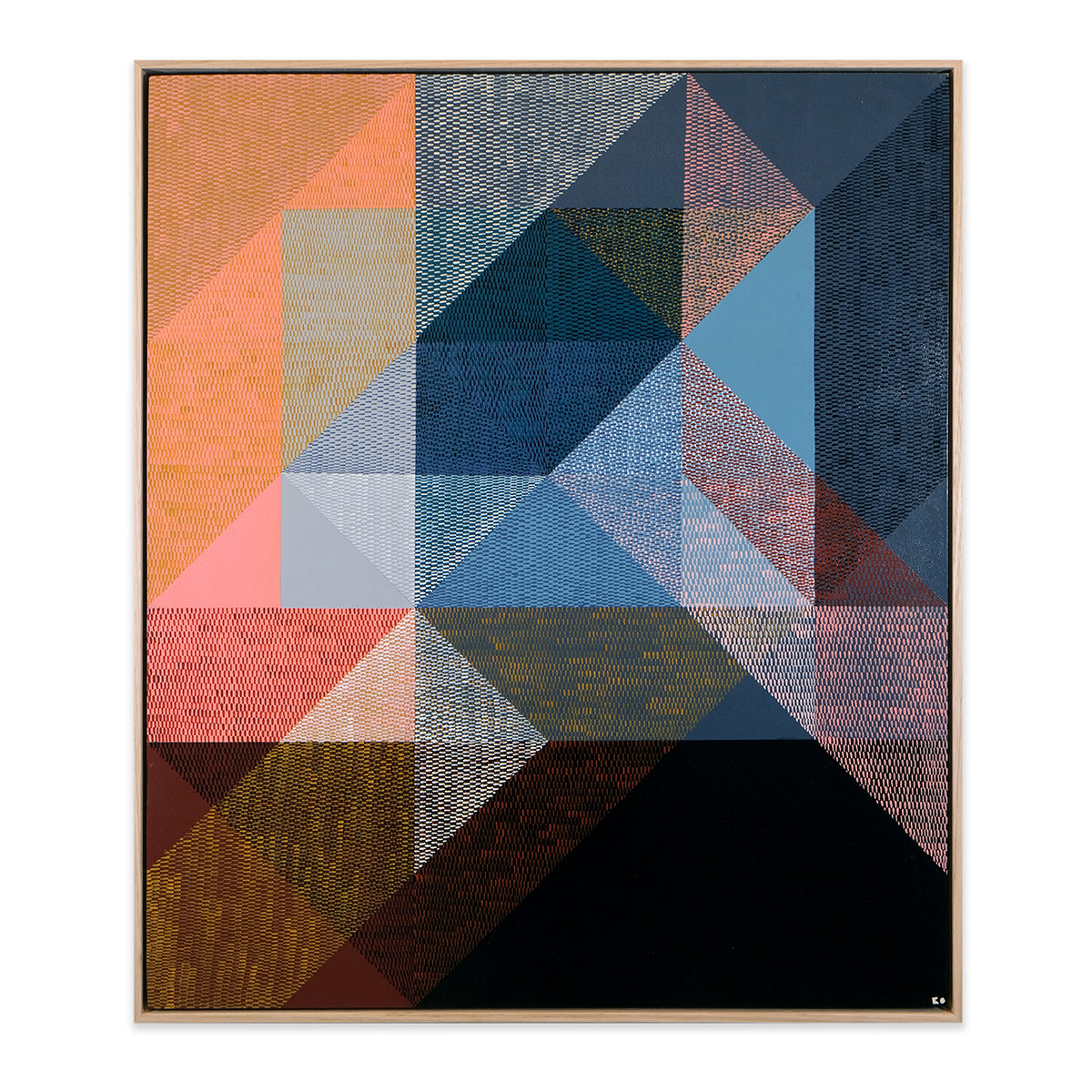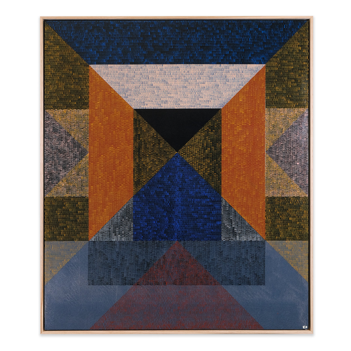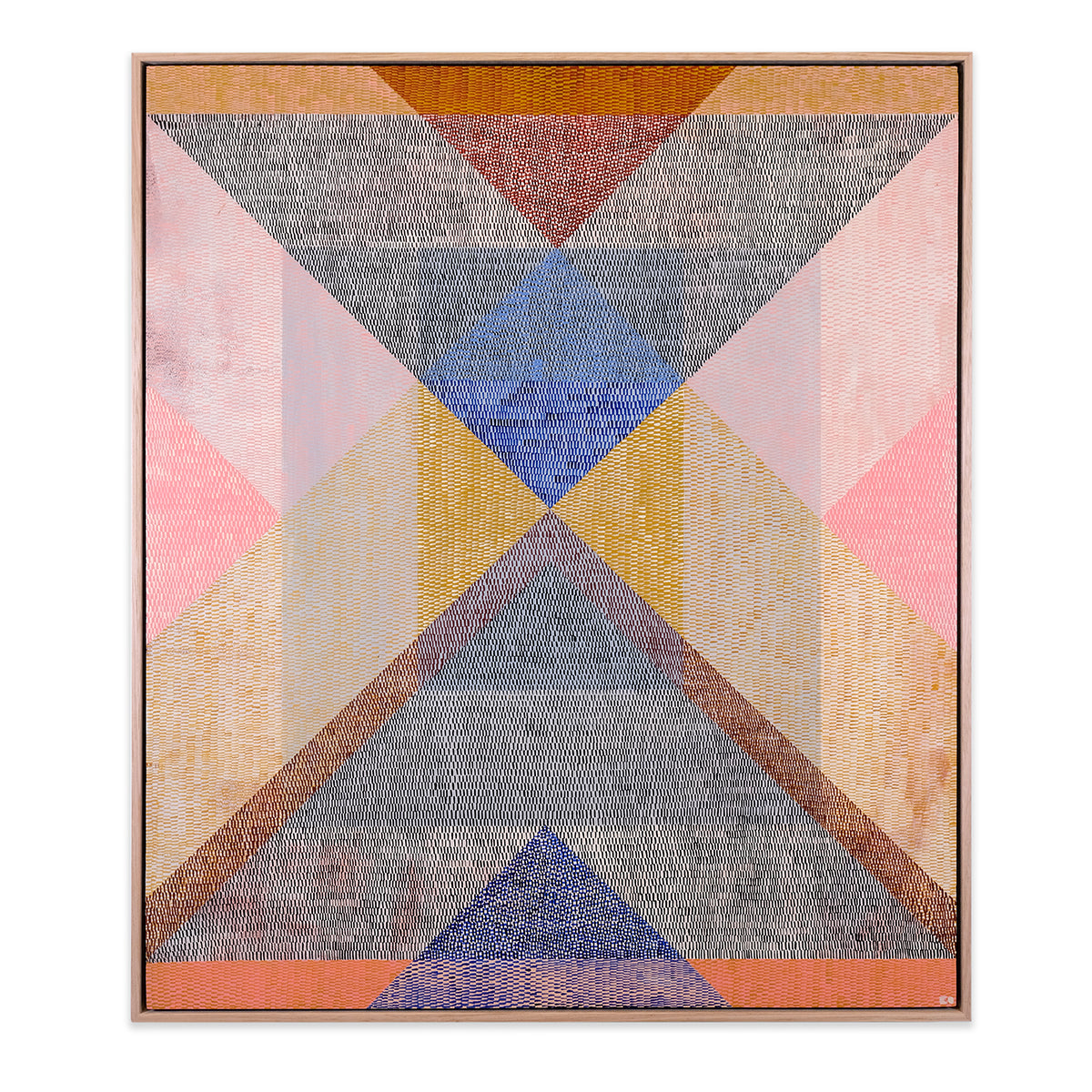 Heavily inspired by shape, whether natural or indesign, Kels' work is intentionally abstract with repetitive patterning of imperfect and unique brushstrokes that work together to create a uniform whole. For Interweave Kels is exploring shadow, reflection and repetition, particularly layering brushstroke textures to explore and interpret colour. Aesthetically it is about the power of form, line, colour, composition, to create rhythm, balance, harmony and strength. Its subject matter is ambiguous, with minimal titles that hint at context and encourage individual interpretation and meaning.